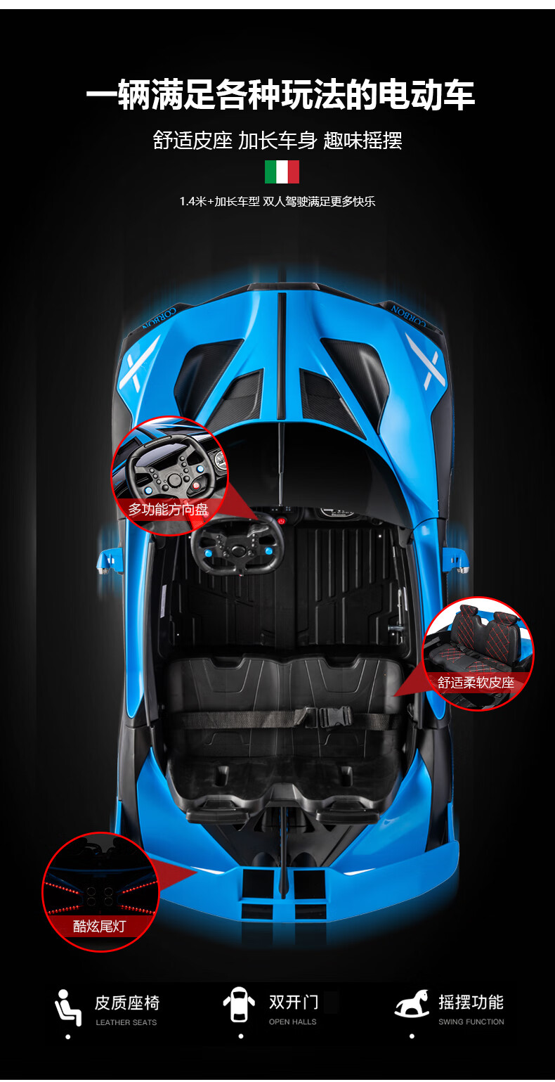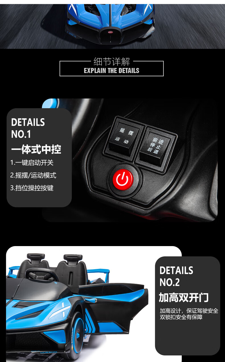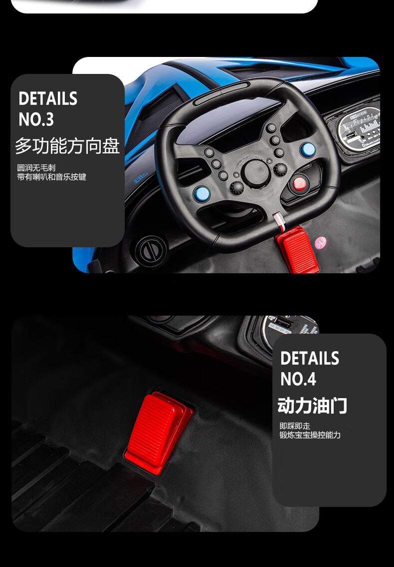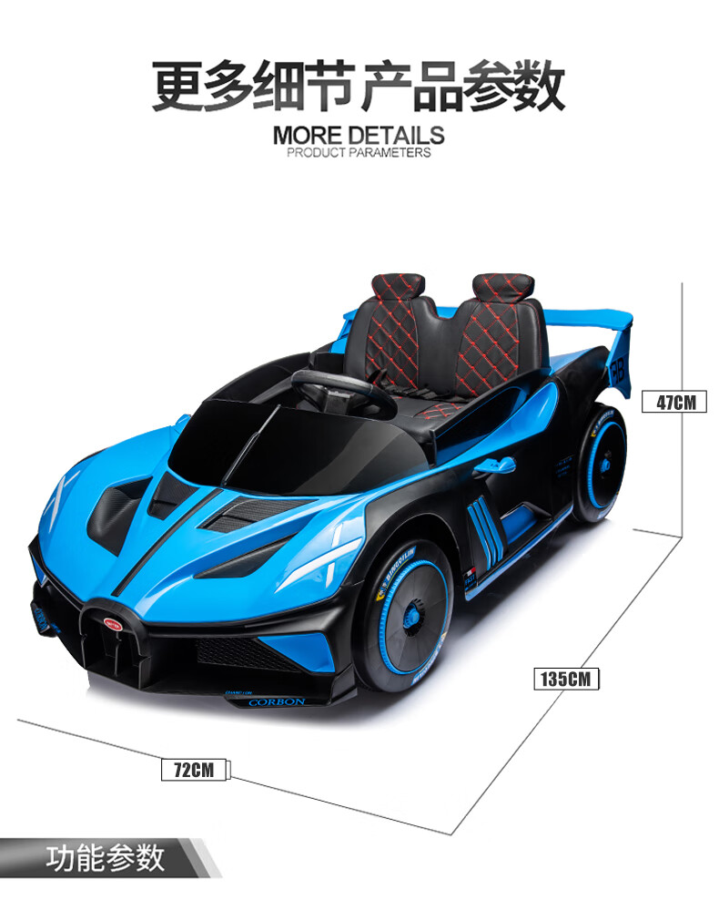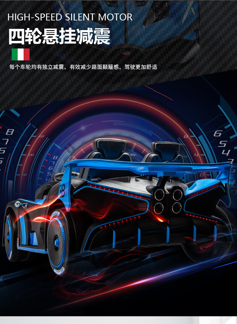 Bugatti children's electric car for boys and girls drift electric car can sit double four-wheel baby stroller remote control car red + four-wheel drive + hard seat + hard wheel + 12V7A battery