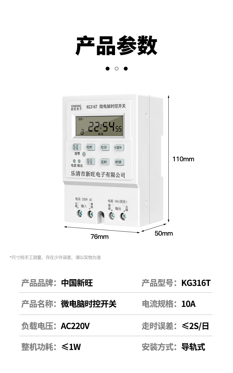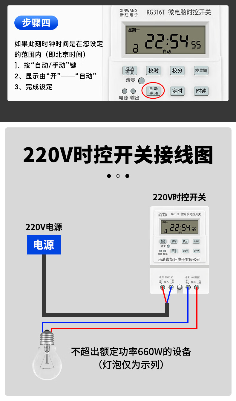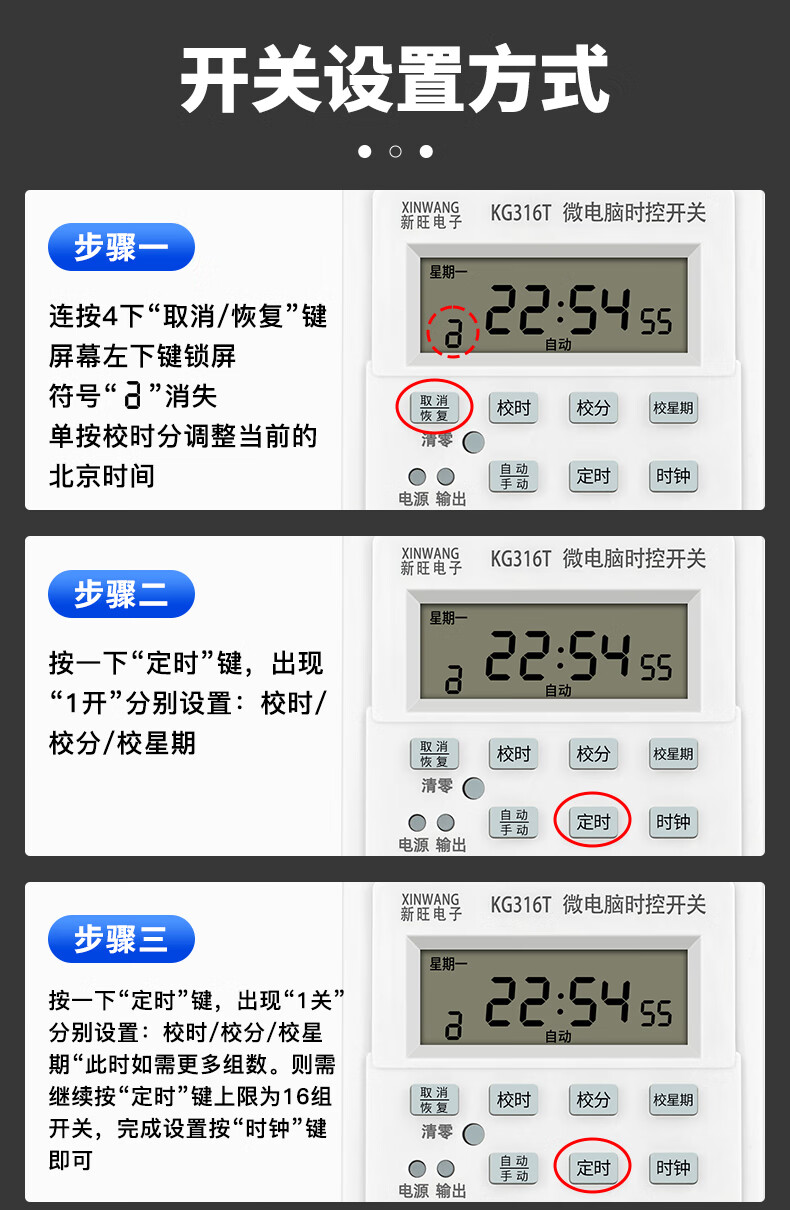 Xinwang 220V/380V time control switch timer kg316t automatic off circuit light plaque time controller time control + contactor suitable for 6500W