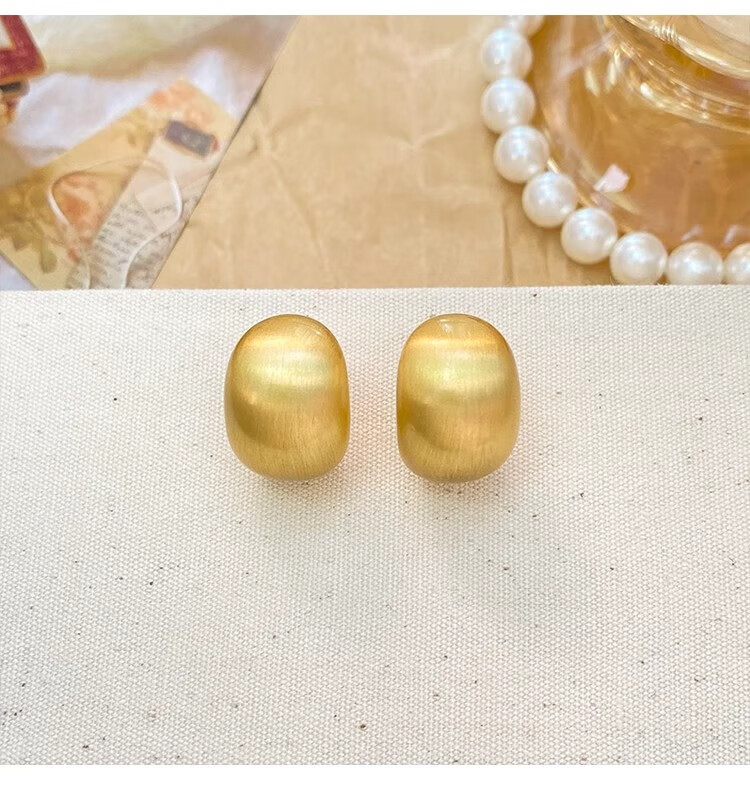 First encounter with gold earrings, retro earrings, jewelry, simple frosted earrings for women, sterling silver needle round, matte brushed, high-end sense, matte brushed earrings + display gift box