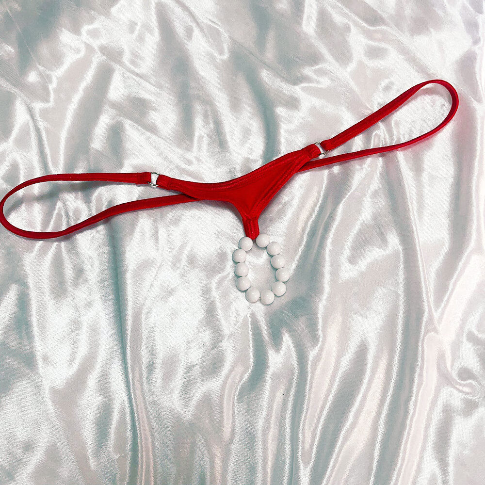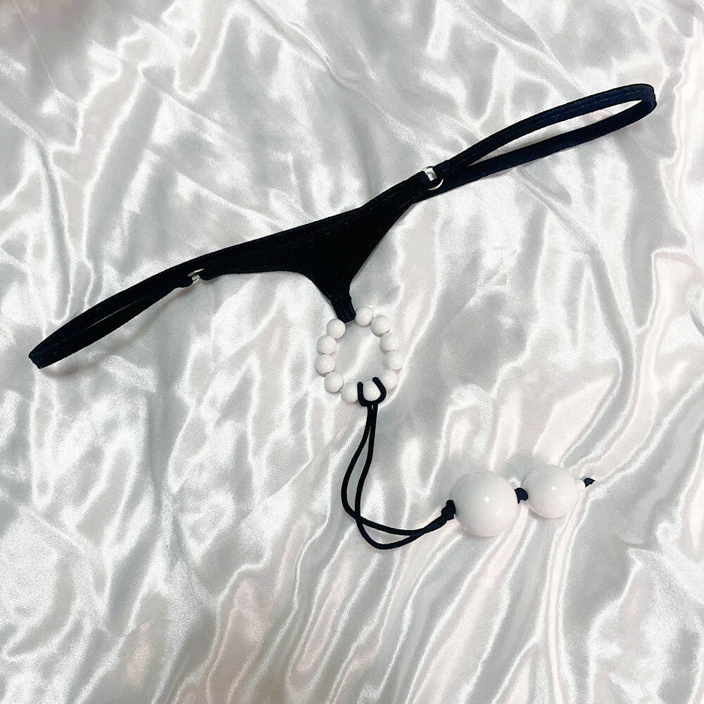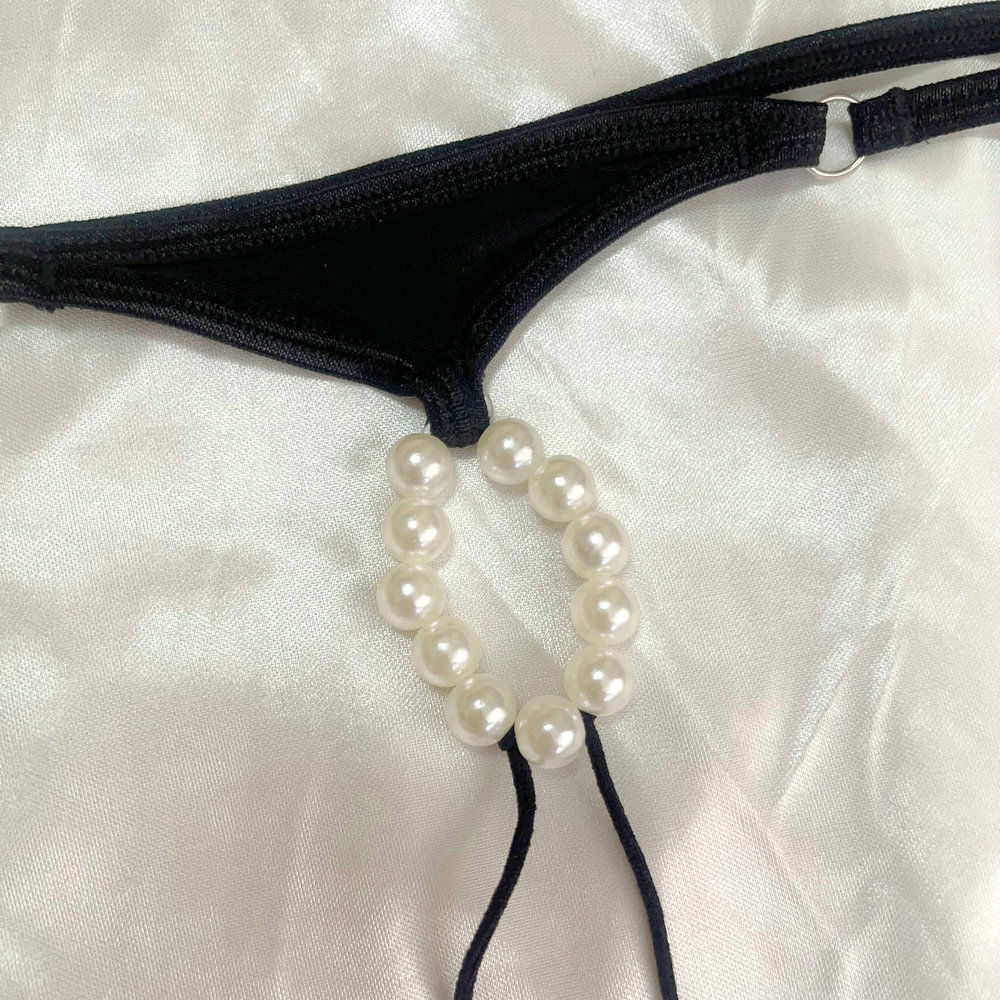 Exclusive men's pearl JJ set thong back yard style men's T pants hollow massage underwear two wear leaking PP pants black without back yard beads one size fits all 2528 feet waist