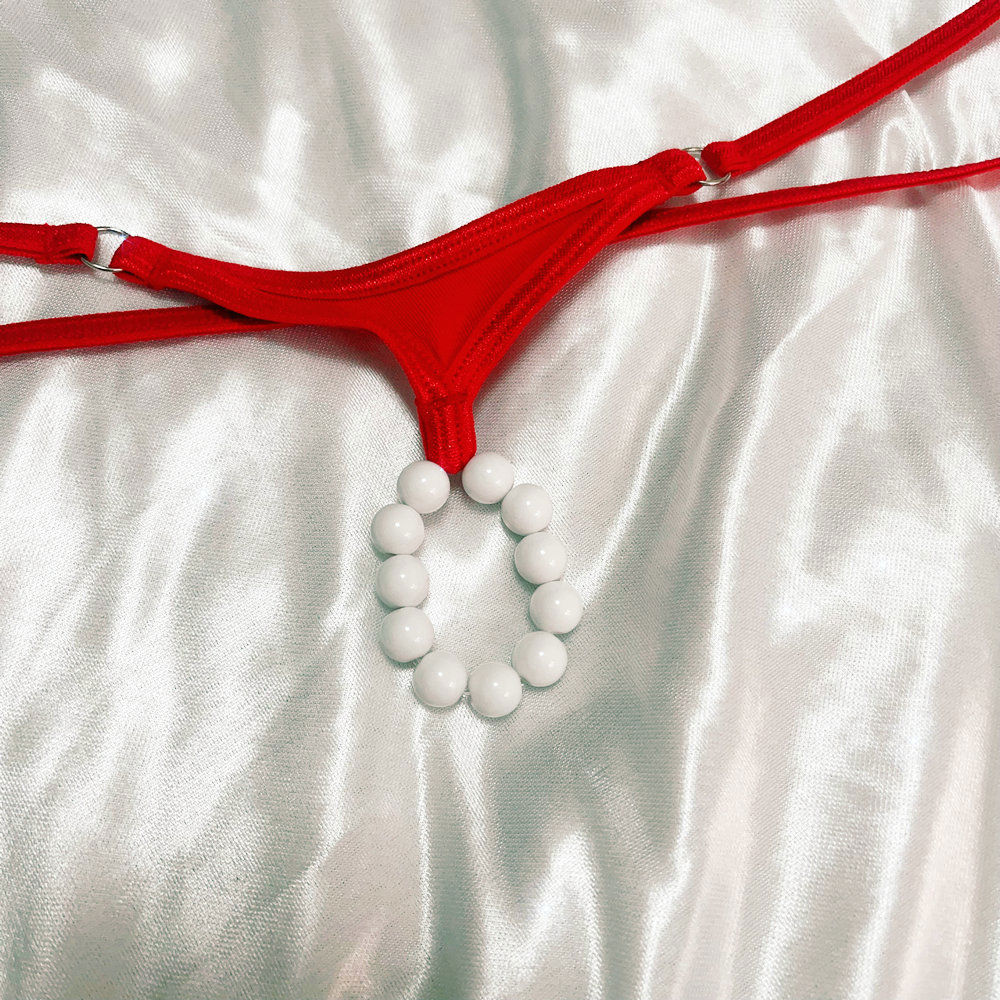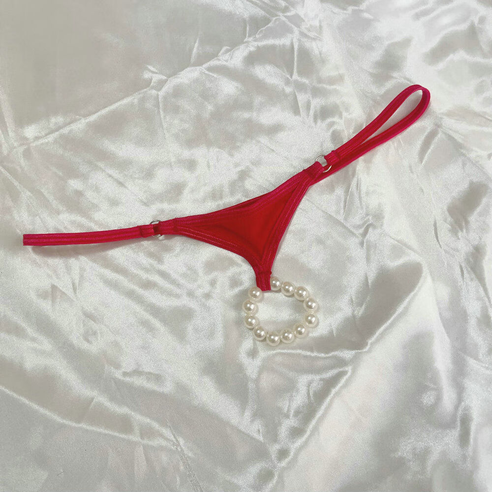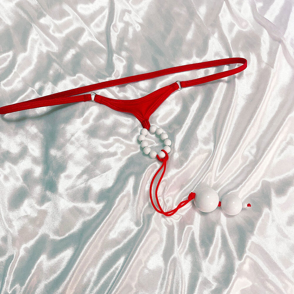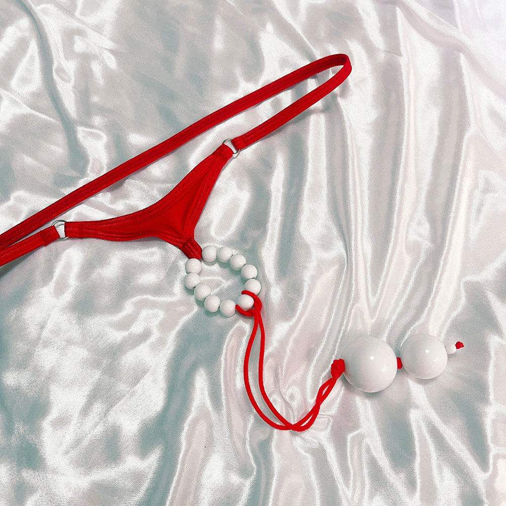 Exclusive men's pearl JJ set thong back yard style men's T pants hollow massage underwear two wear leaking PP pants black without back yard beads one size fits all 2528 feet waist