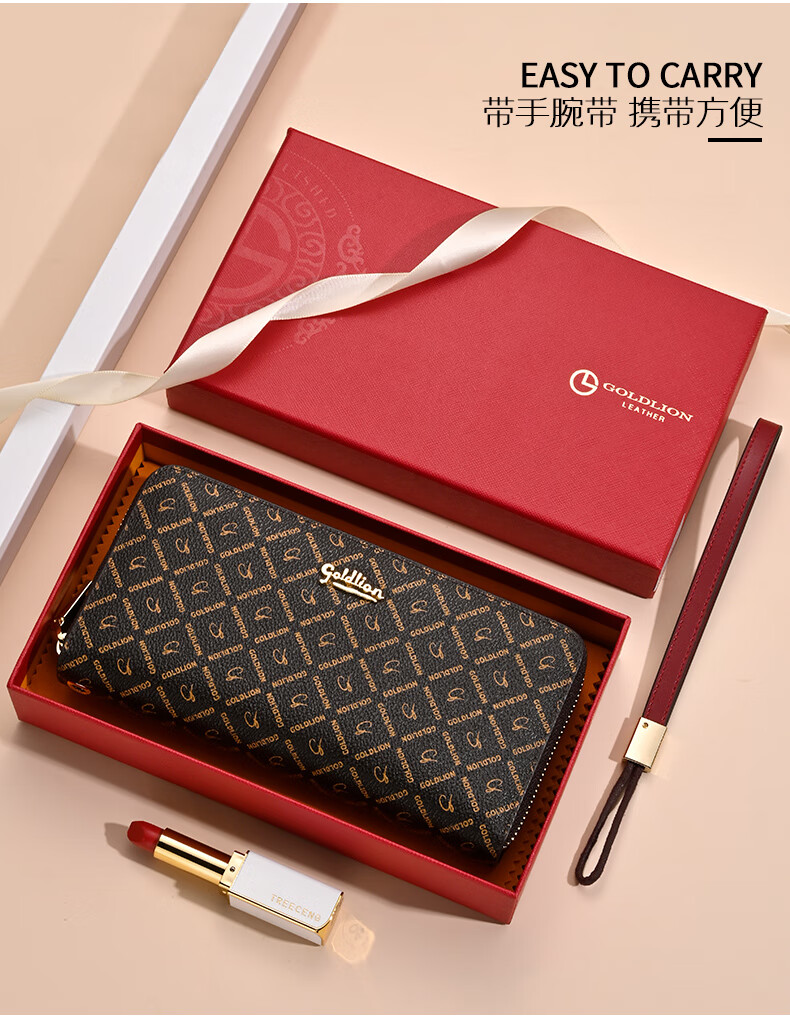 Goldlion Card Holder Wallet Two-in-One Women's Bank Card Holder ID Bag Women's Light Luxury 2025 New Card Holder Wallet One-In-One Burgundy Official Genuine One Counterfeit Penalty Ten