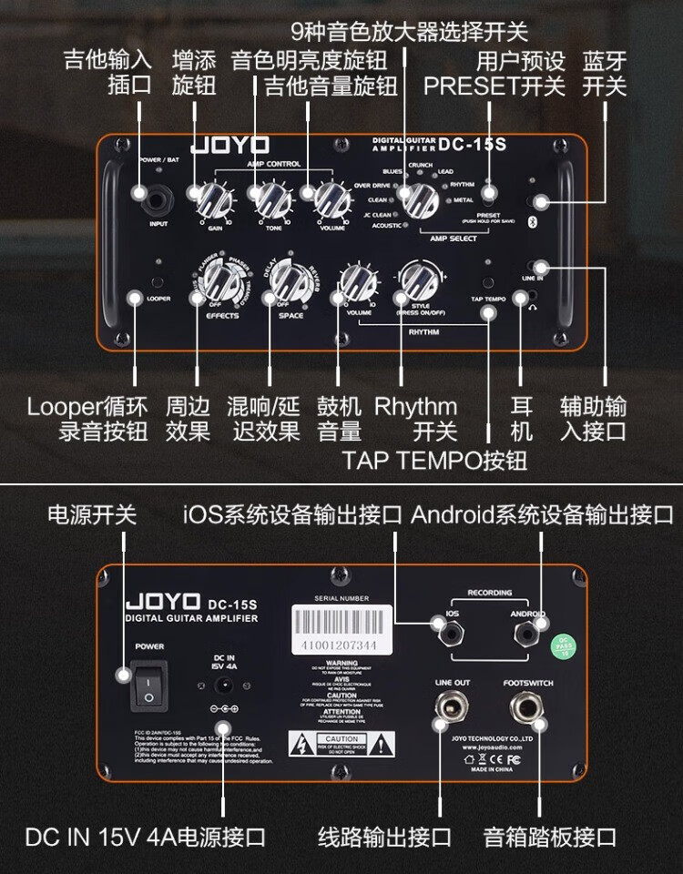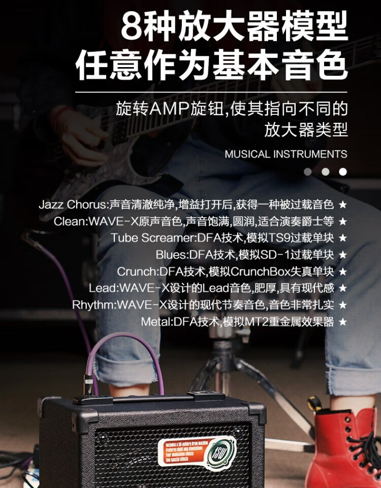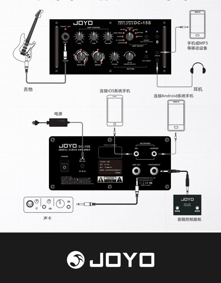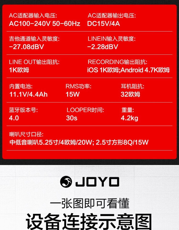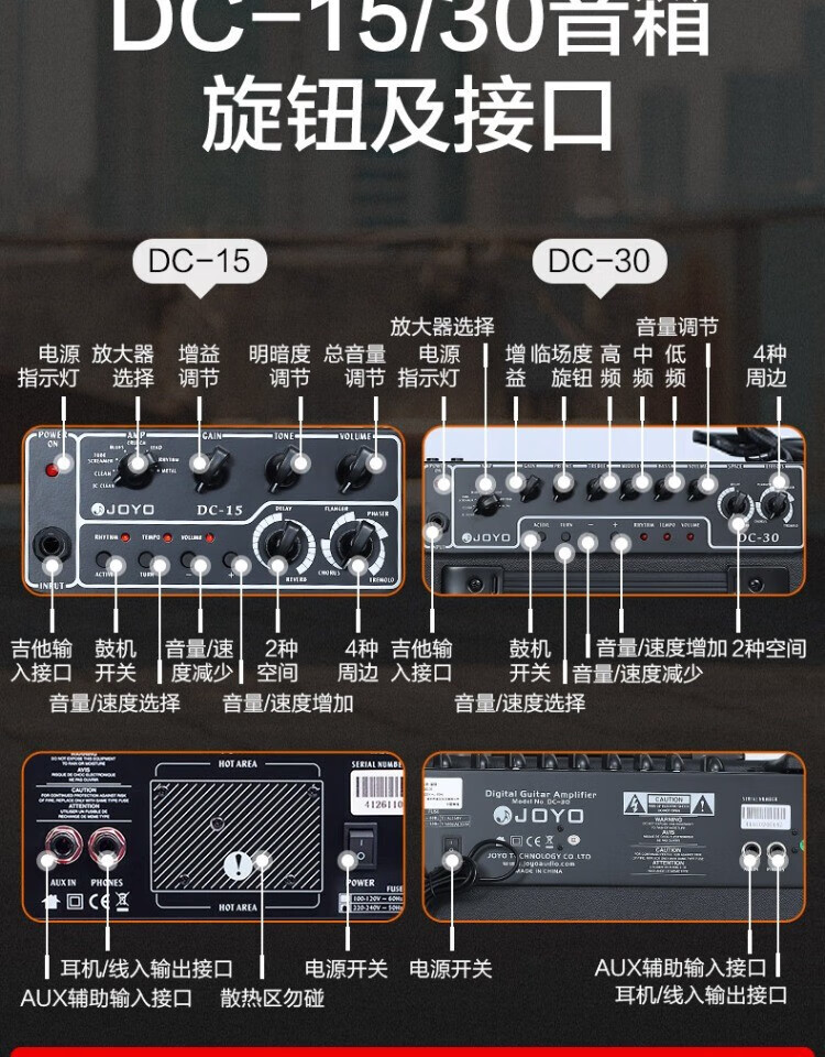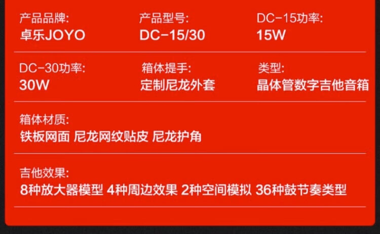 JOYO JOYO Electric Acoustic Guitar Speaker Electric Box Portable With Drum Machine Effects Practice Performance Folk Singing Audio DC-15 15W Electric Guitar Fully Digital Speaker Red