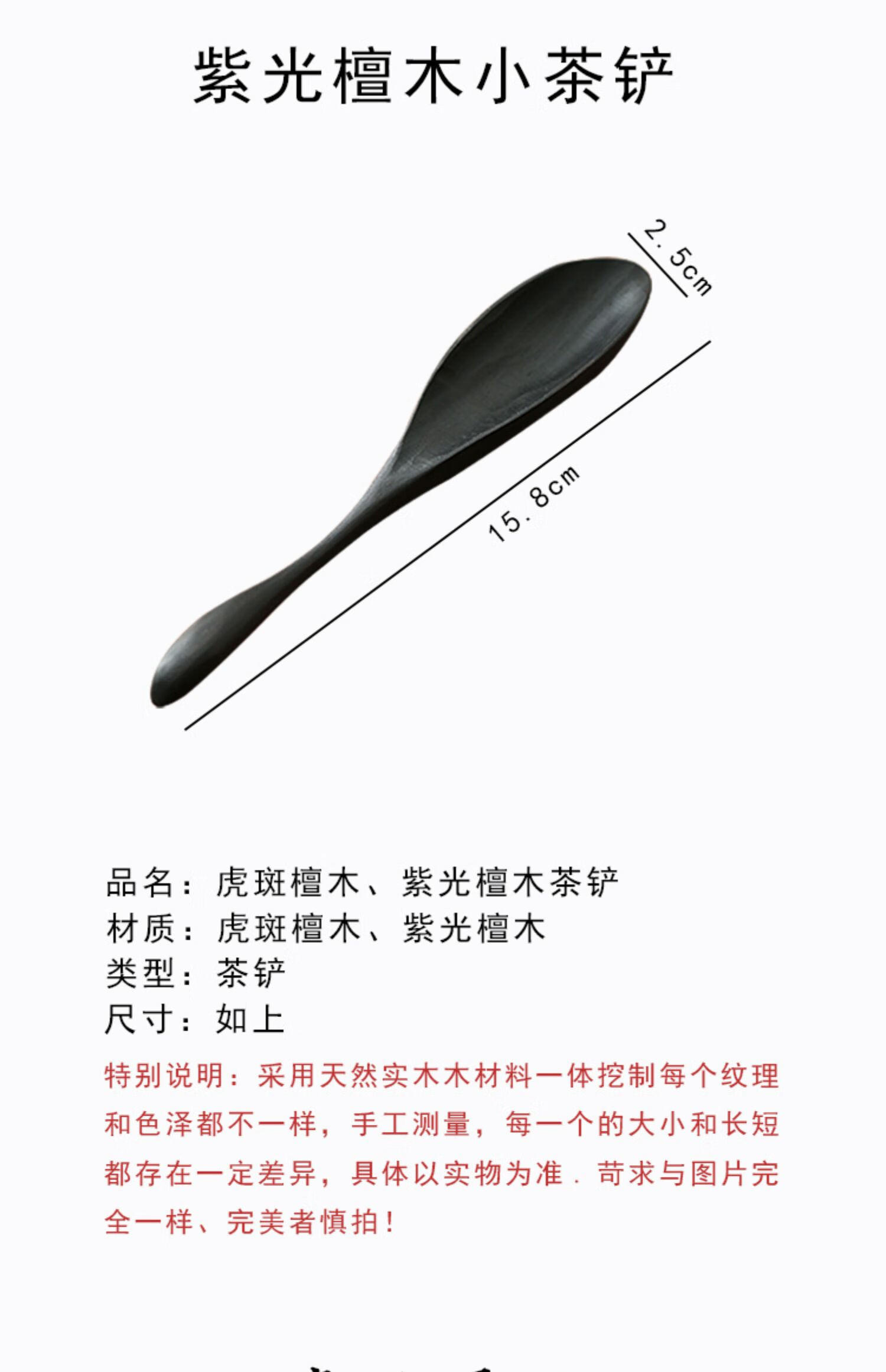 Wen Yijia tiger spot sandalwood small tea shovel solid wood purple sandalwood tea spoon household tea Zeliujunzi accessories measuring spoon single spoon tiger spot sandalwood small tea shovel