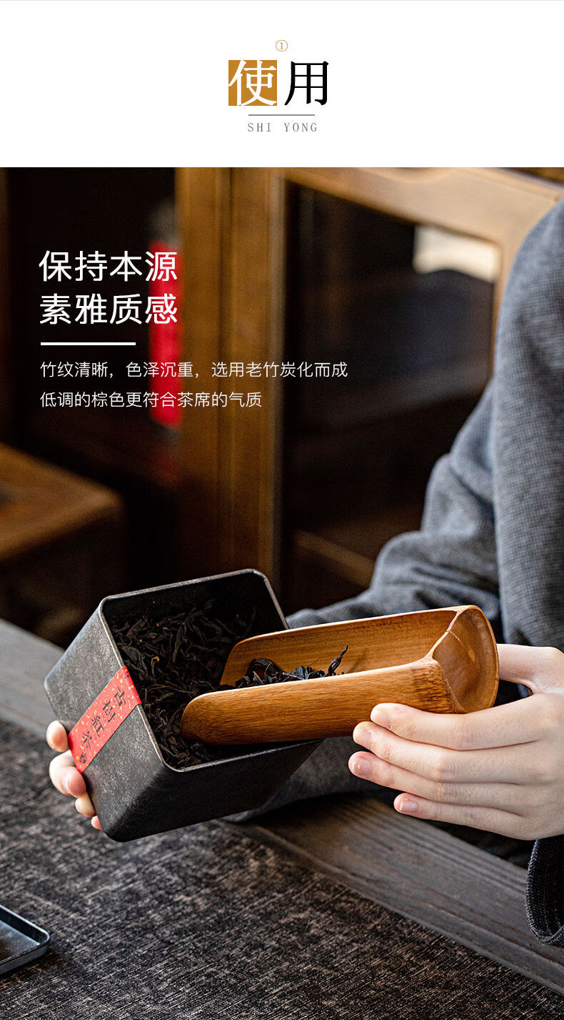 Wen Yijia carbonized semi-circular bamboo tube tea cup bamboo tea spoon teaspoon tea shovel appreciation tea lotus tea tea ceremony accessories wake-up tea tea set large carbonized semi-circular bamboo tube tea cup