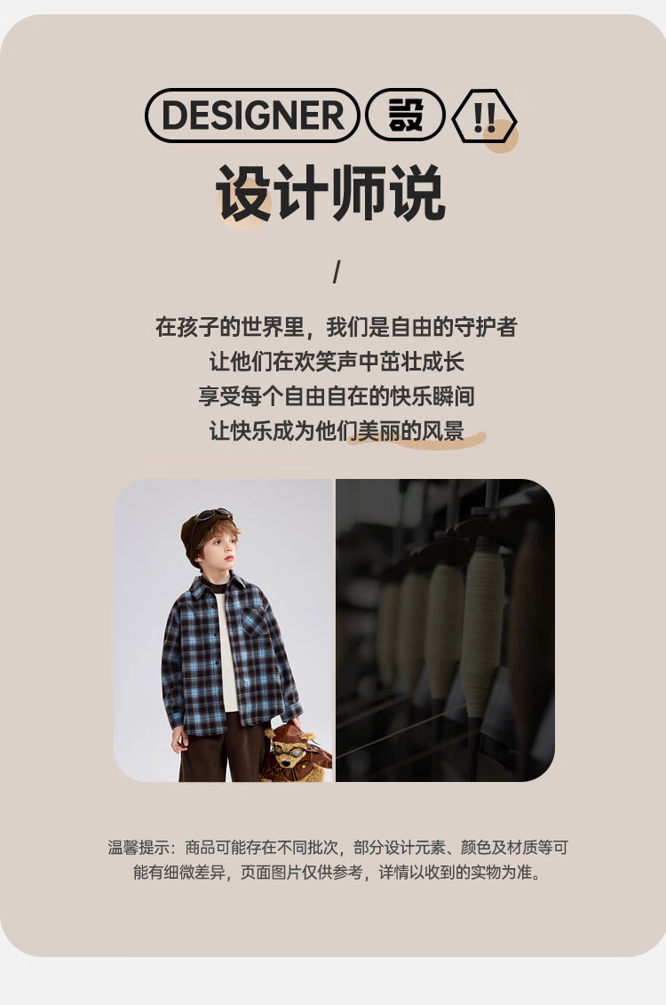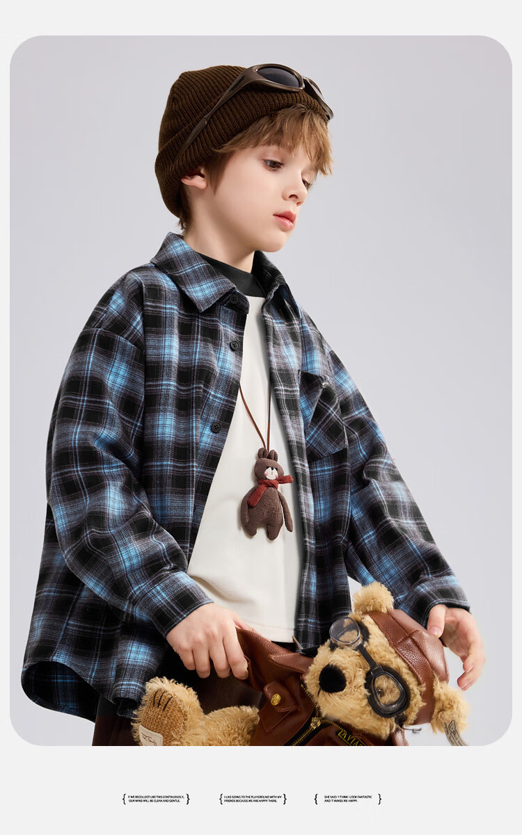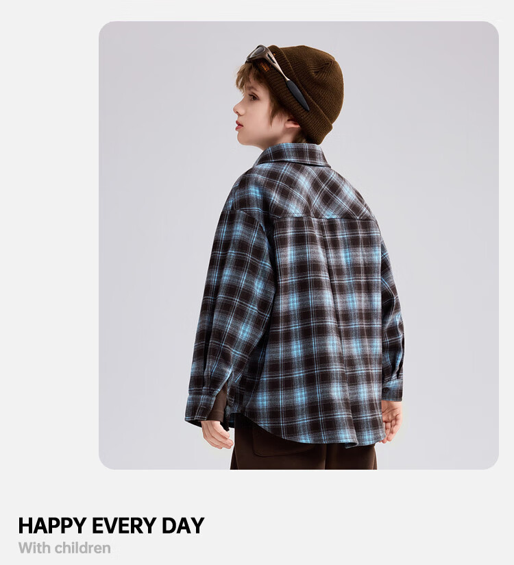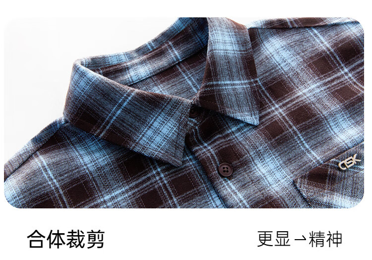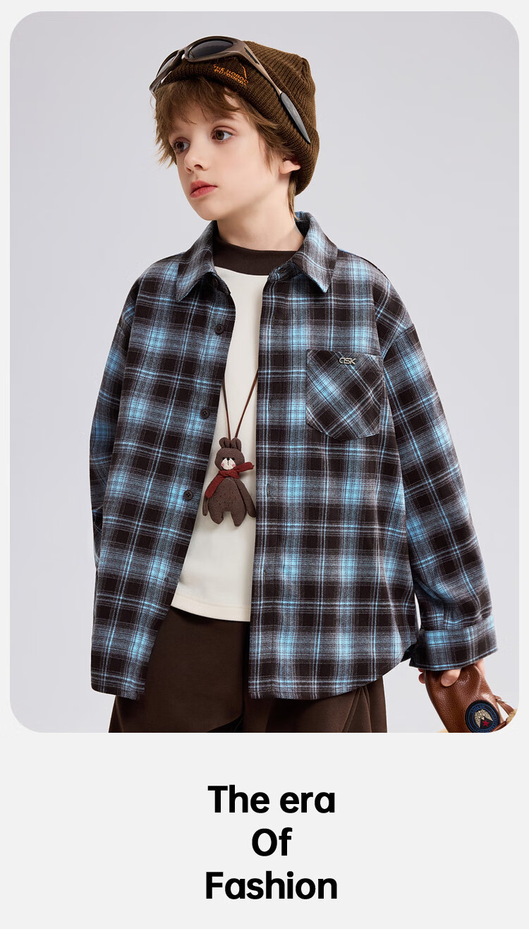 ASK JUNIOR brushed children's shirt 2026 autumn medium and large children's lapel plaid contrast shirt boys jacket brown 130