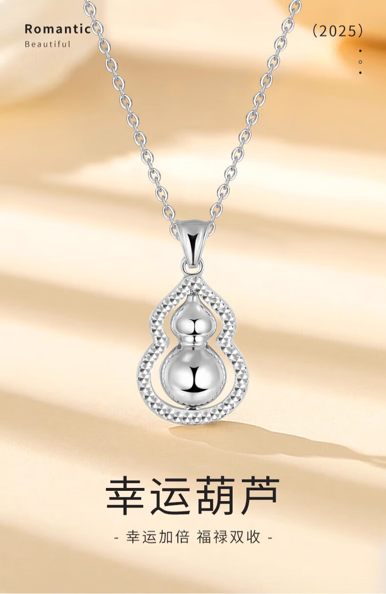 Lao Fengxiang PT950 platinum gourd pendant necklace for women, simple necklace pendant, Valentine's Day birthday gift for girlfriend, rotatable* platinum Fulu pendant, about 3g, free silver chain