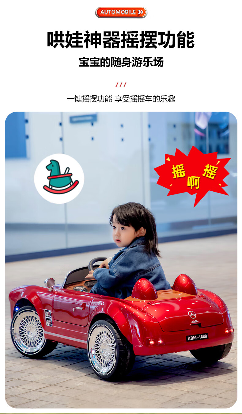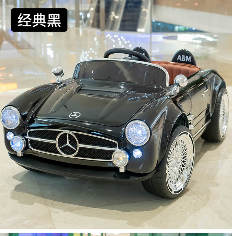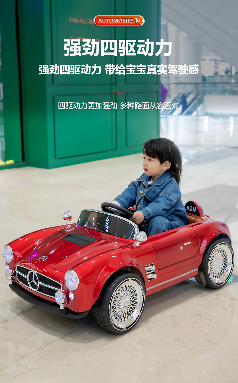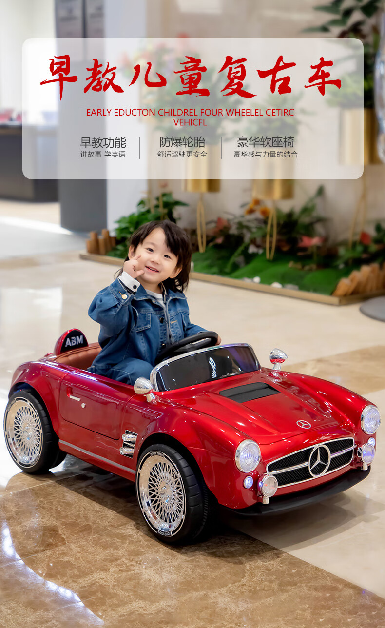 Kangshuai Aibeimei children's electric car for boys and girls four-wheeled car imitation Mercedes-Benz retro classic electric car remote control baby stroller toy beige + four-wheel drive + leather seat + hard wheels + 12V7A battery