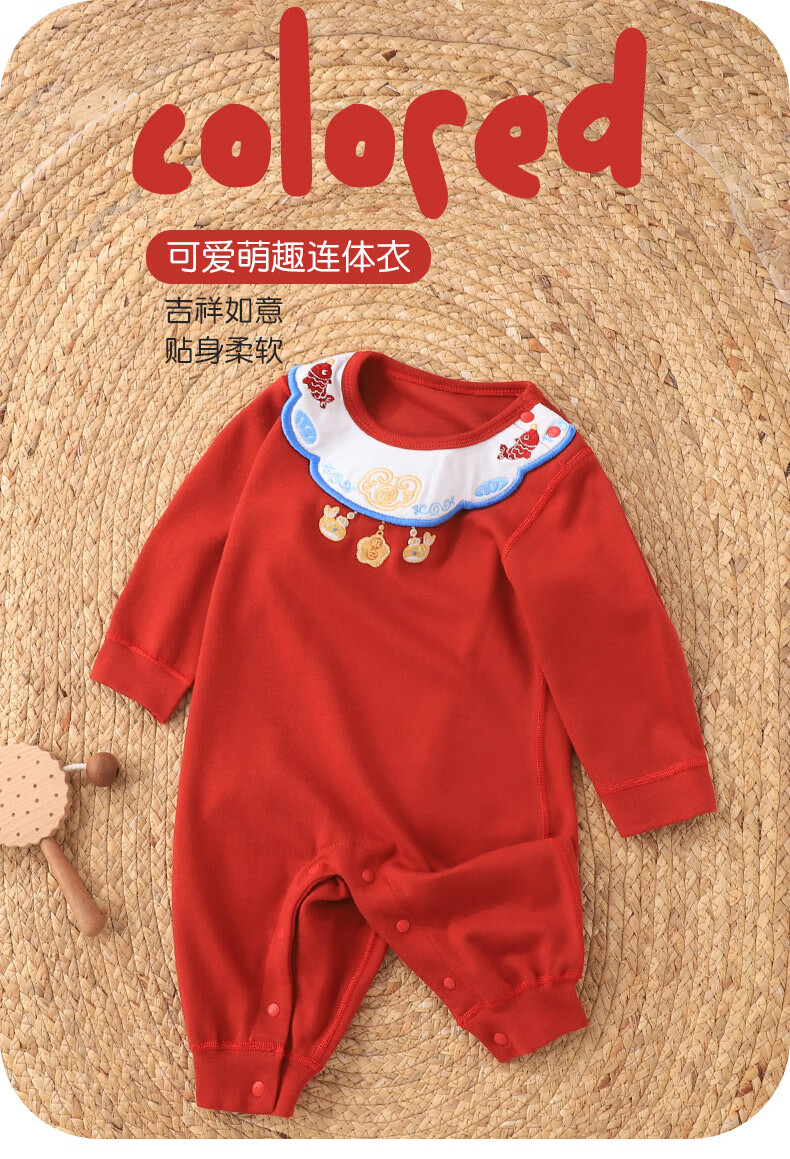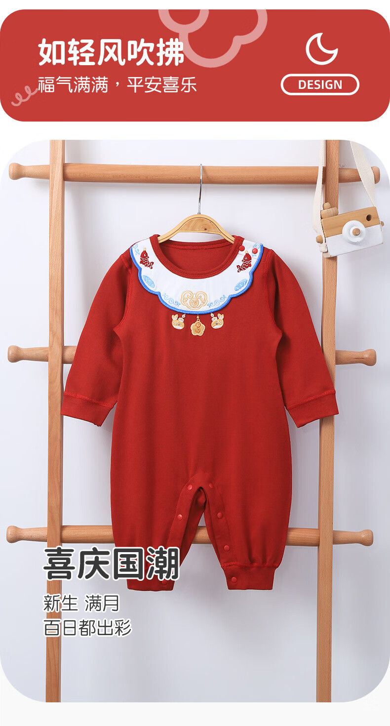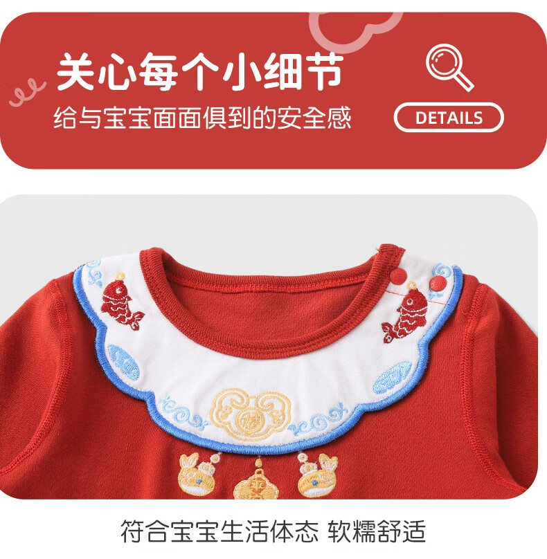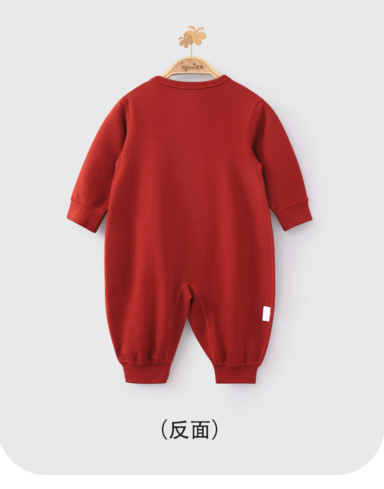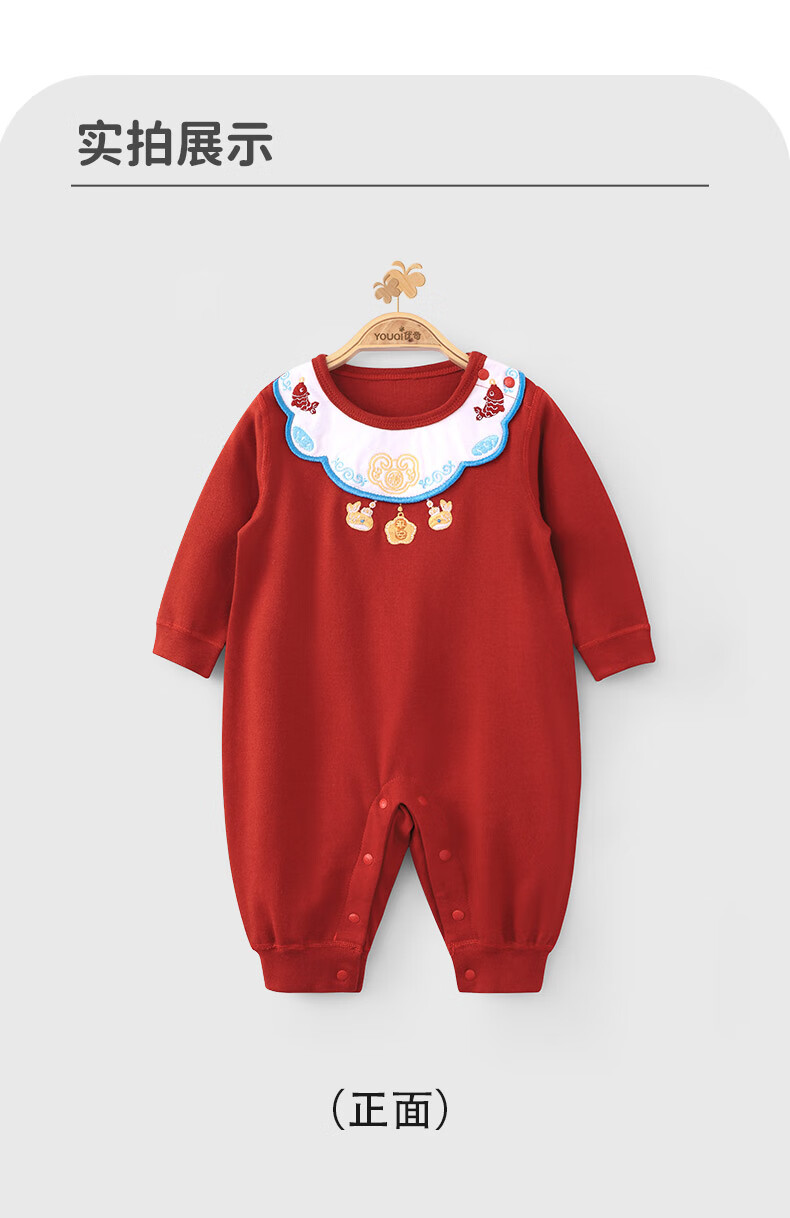 Youqi newborn one-piece spring and autumn pure cotton one-month-old baby clothes red one-year-old clothes newborn baby robe red 66cm