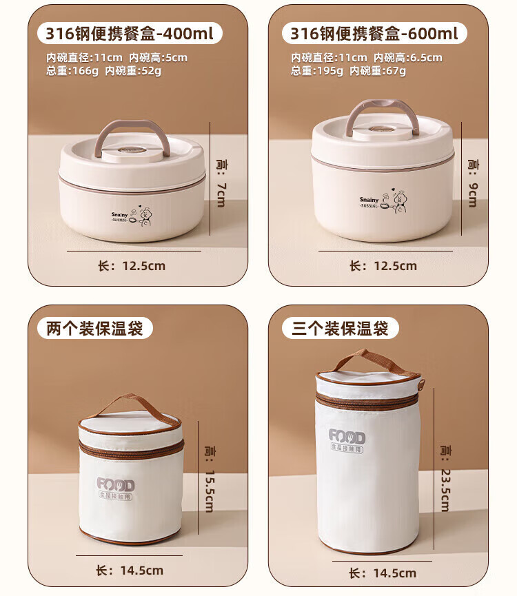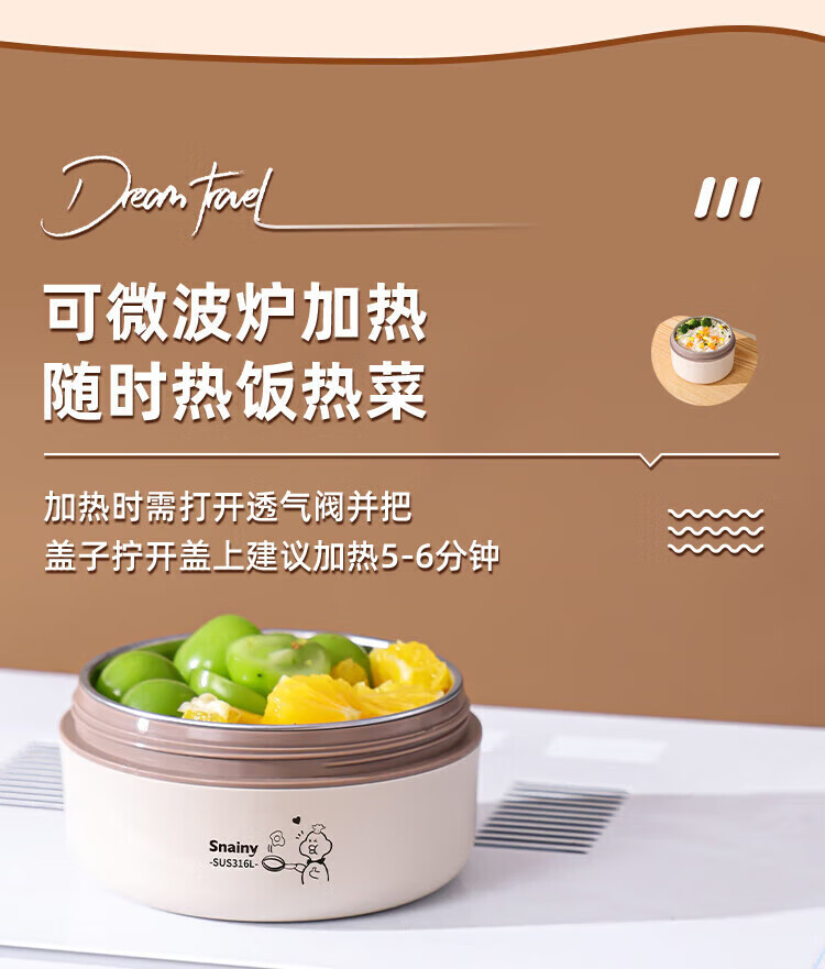 316 stainless steel insulated lunch box mini trumpet lunch box for students and office workers microwave oven