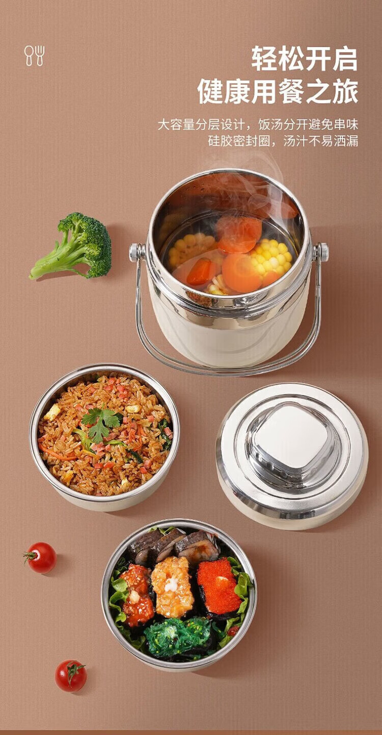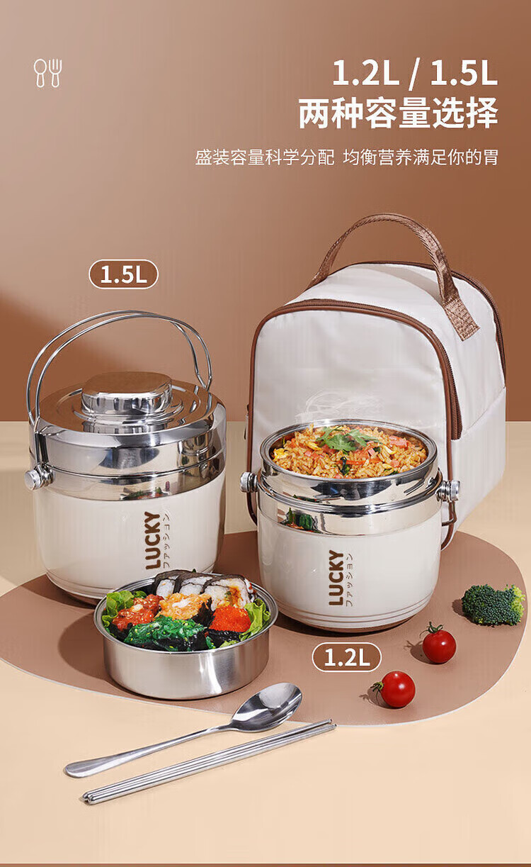 304 stainless steel insulated lunch box for office workers, portable lunch box for home use, 24-hour lunch box, efficient heat preservation for 12 hours, 1.2l + heat preservation bag