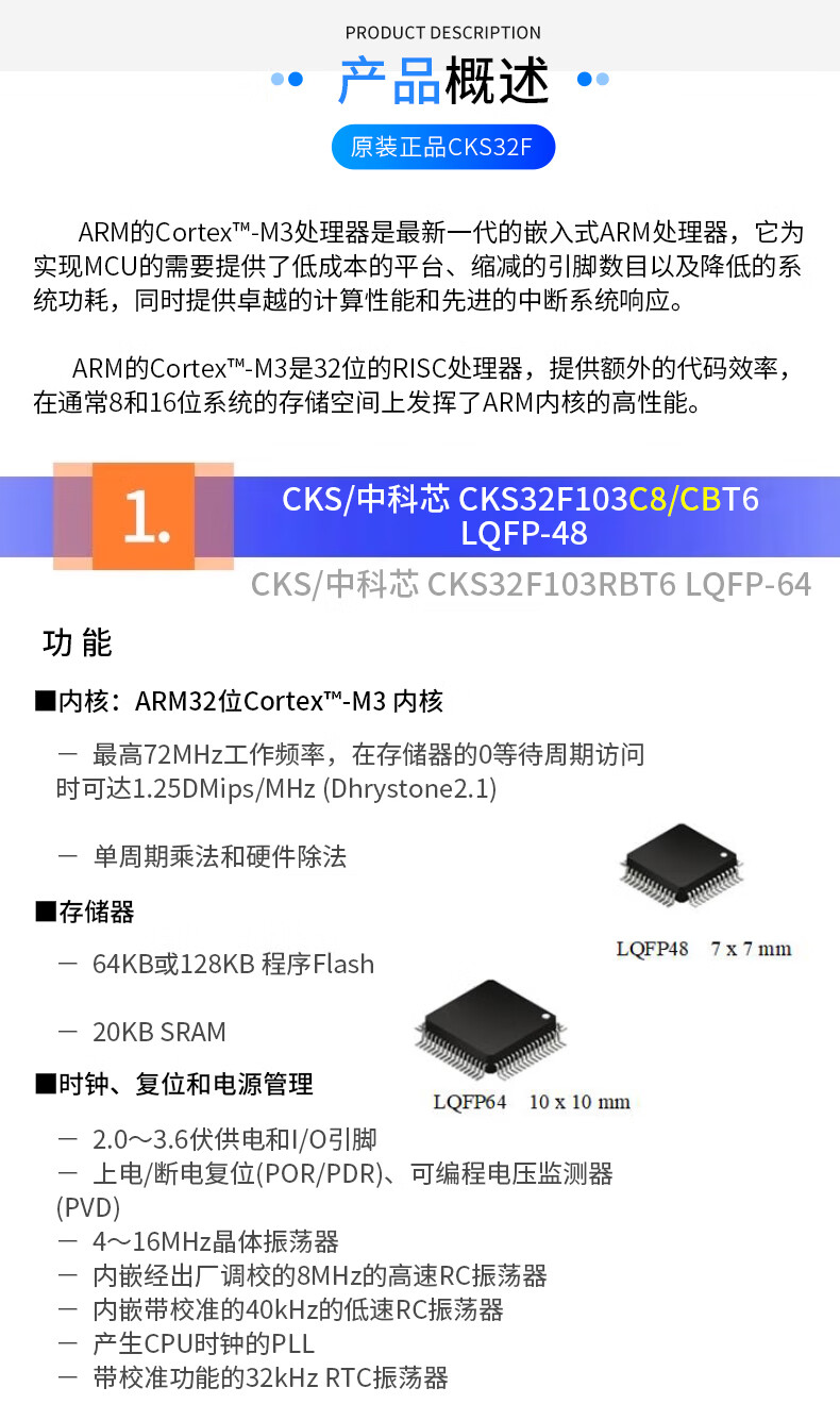 Original CKS32F103RCT6 CKS32F103RET6 CKS32F030F4P6 reemplaza STM32F103 Zhongkexin CKS32F103CBT6LQFP-48 Sin especificaciones