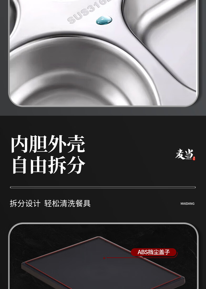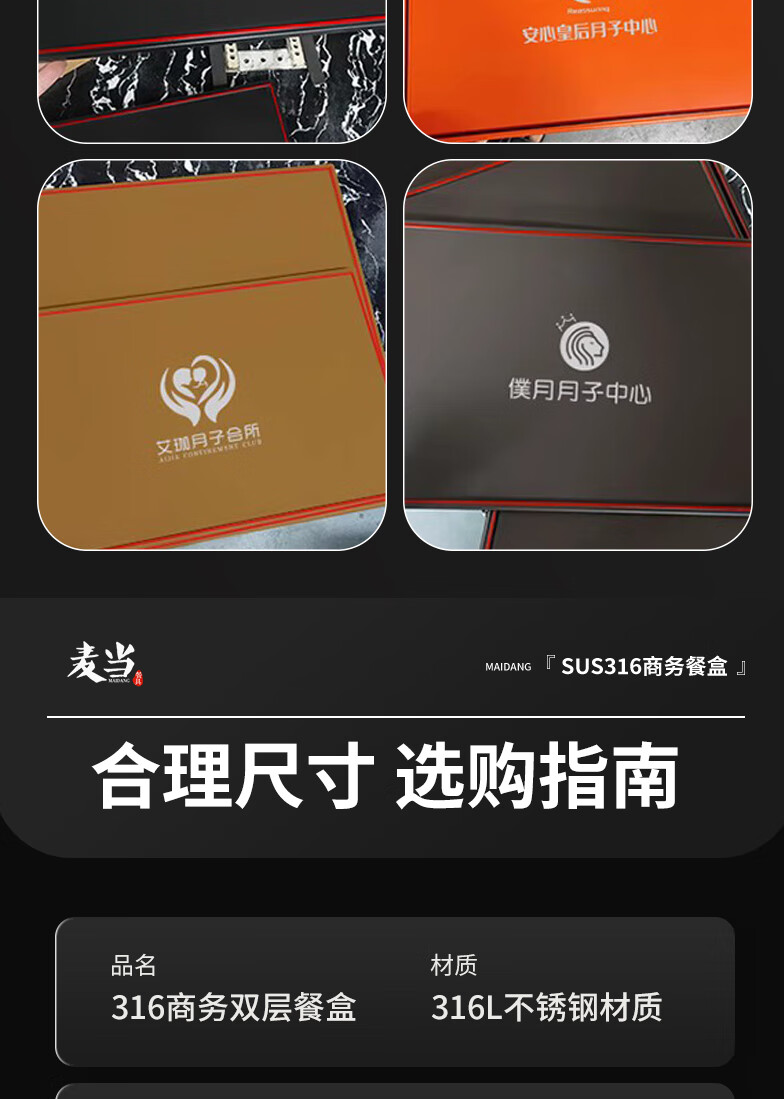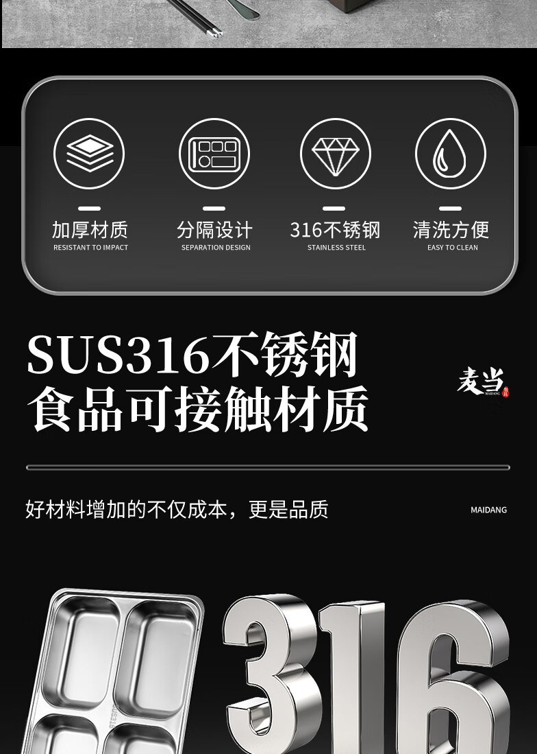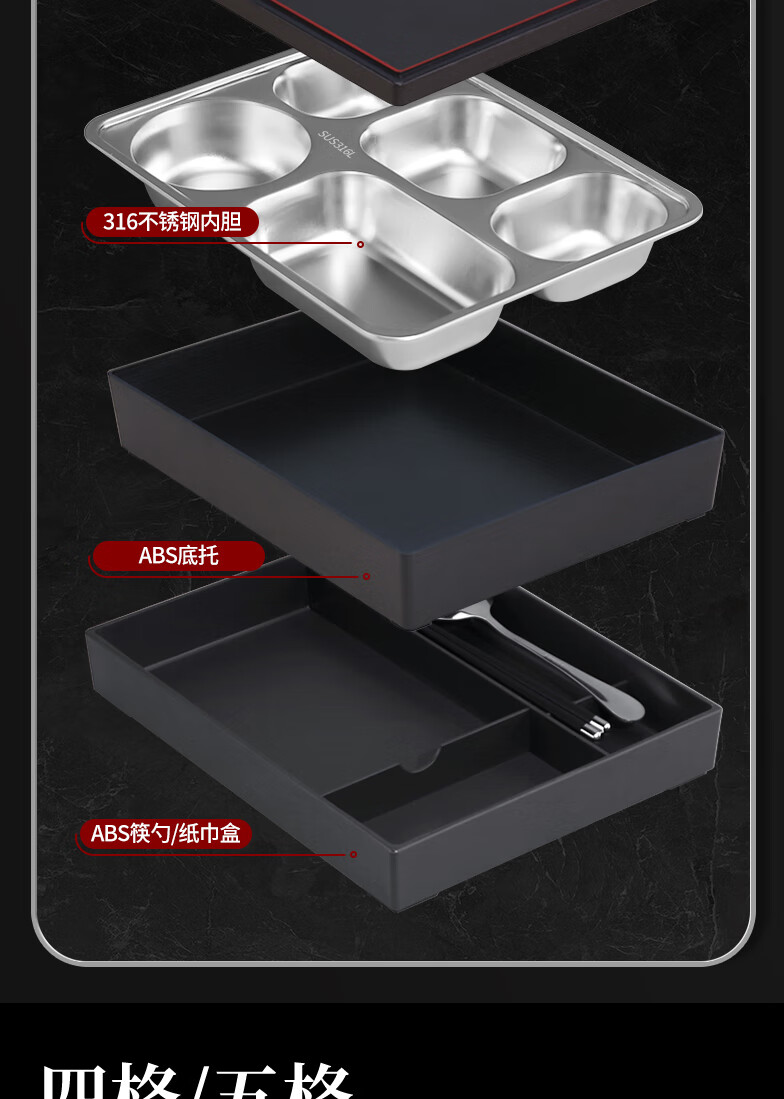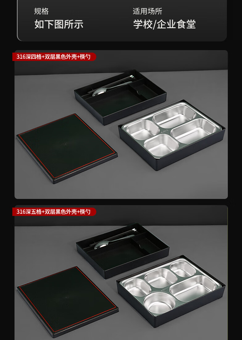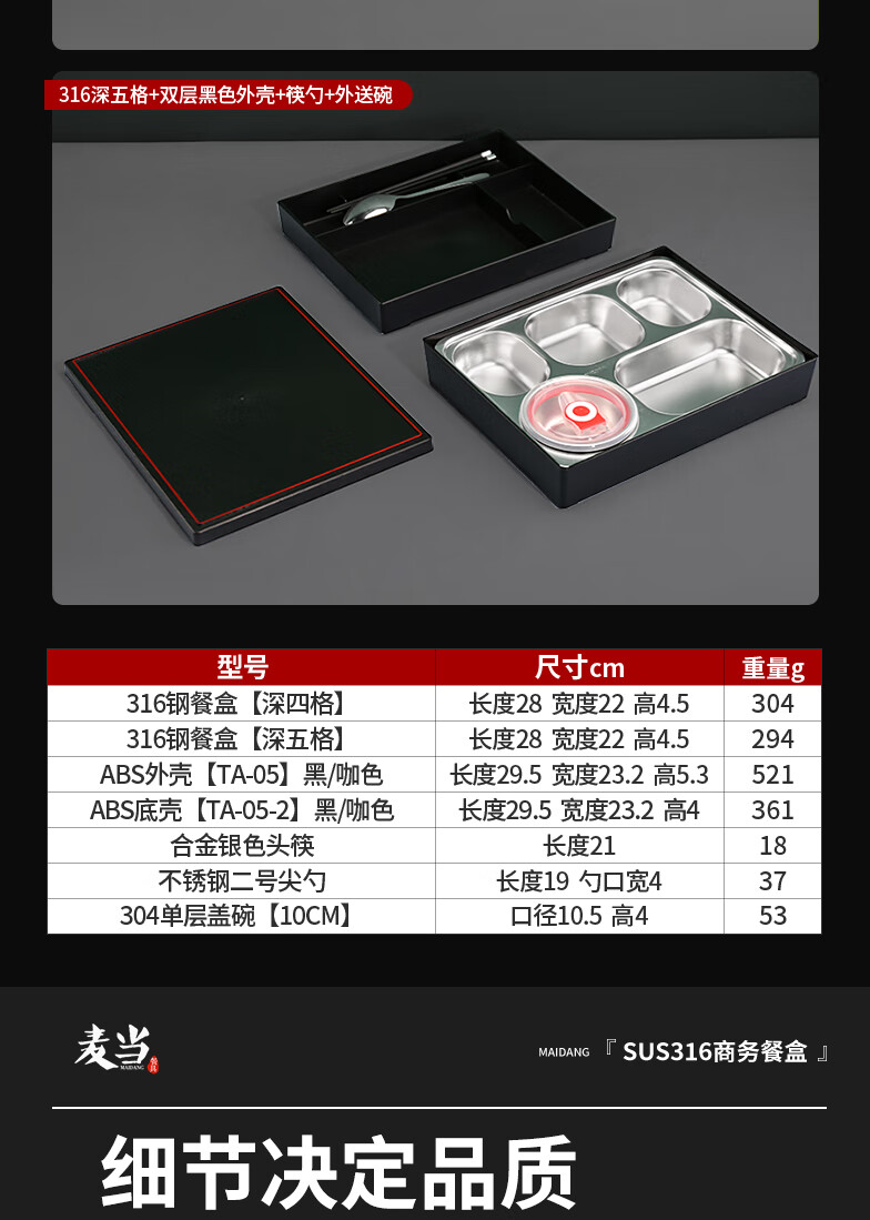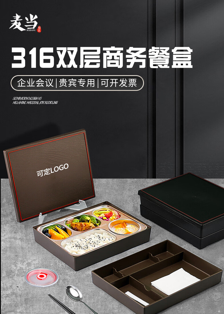Xuanrun double-layered Japanese-style 316 stainless steel business lunch box high-end 4S store reception leader special partitioned dinner plate 316 deep five-compartment + double-layer black shell + chopsticks and spoons