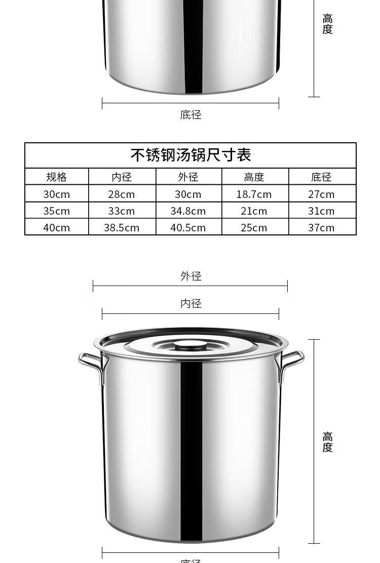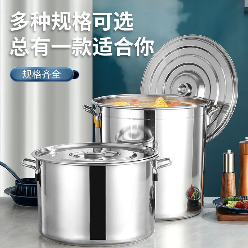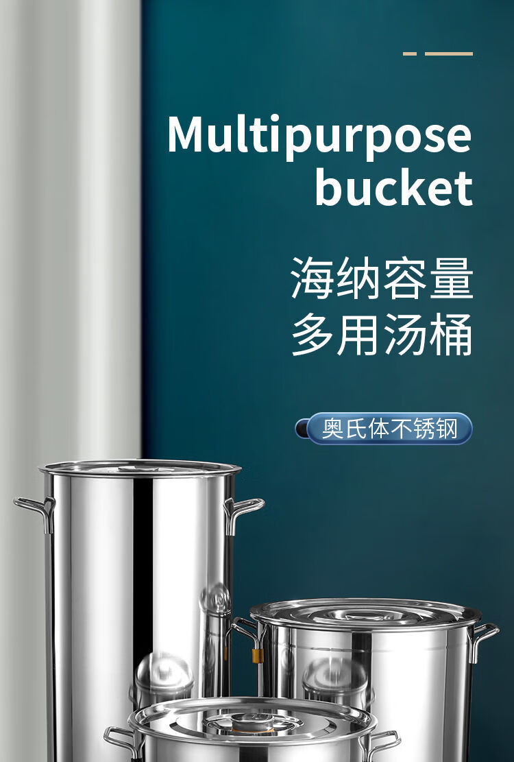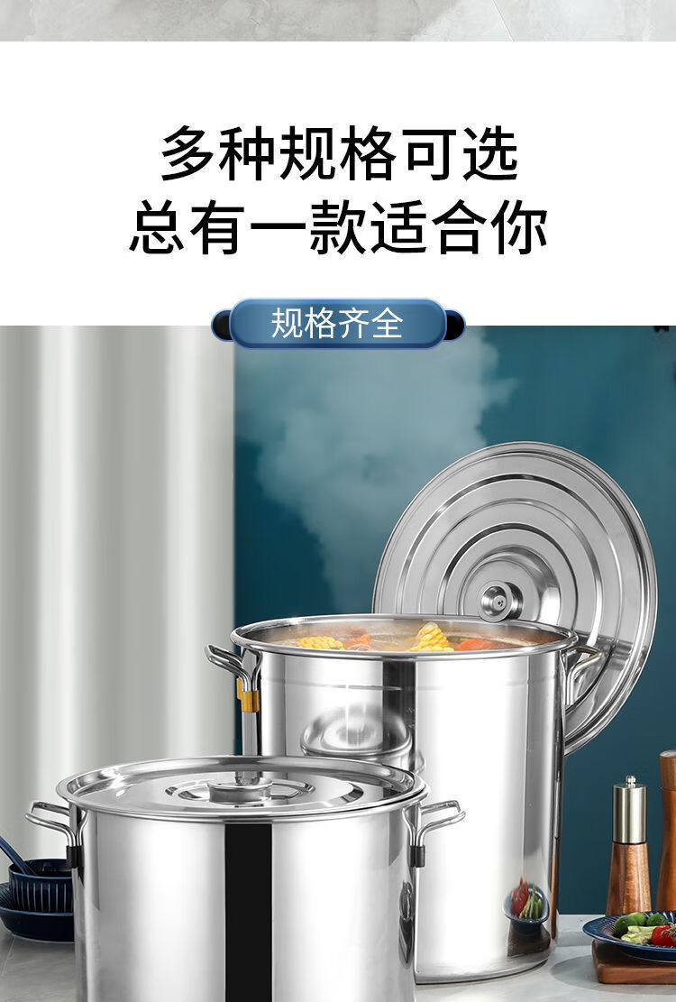 Meikejie stainless steel pot, commercial soup bucket with lid, thickened bottom, large capacity stew pot, household water storage bucket, stainless steel bucket, extra thick body, diameter 12, height 7, no lid, no ears