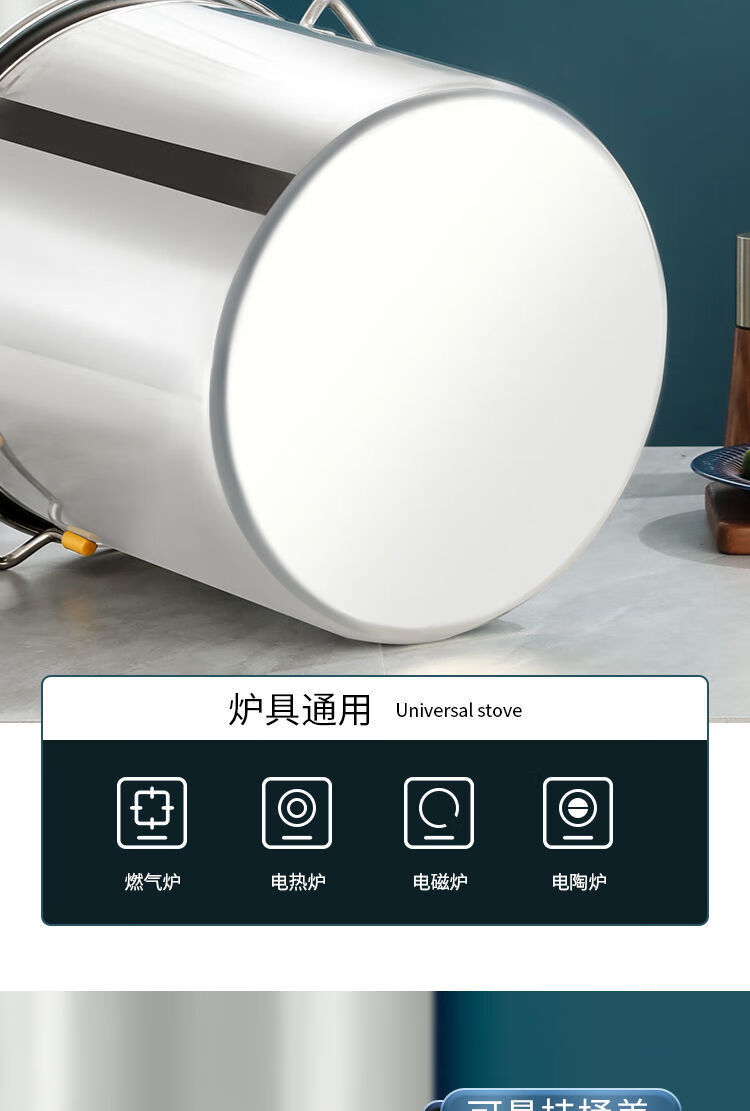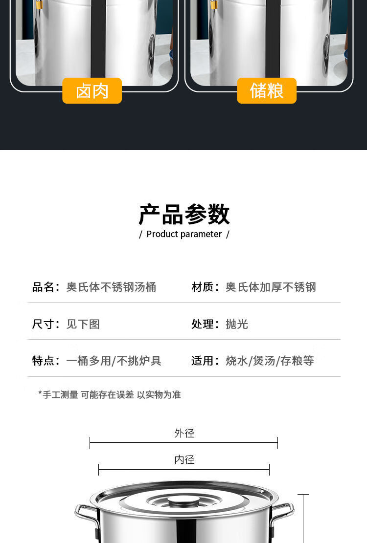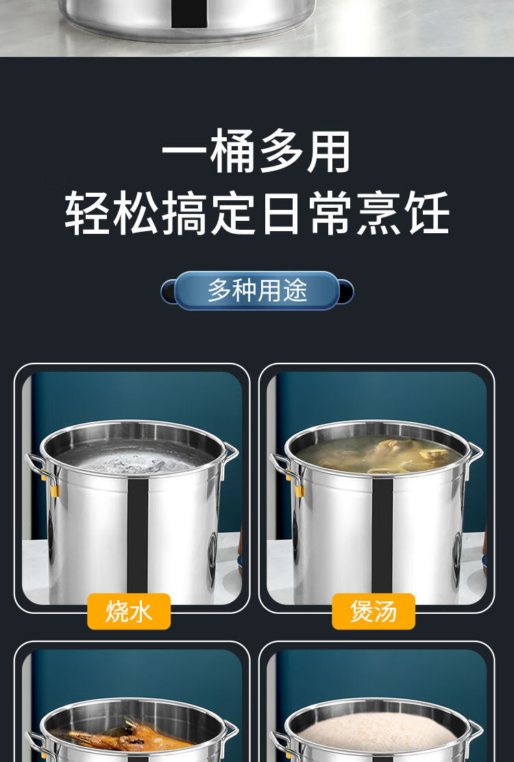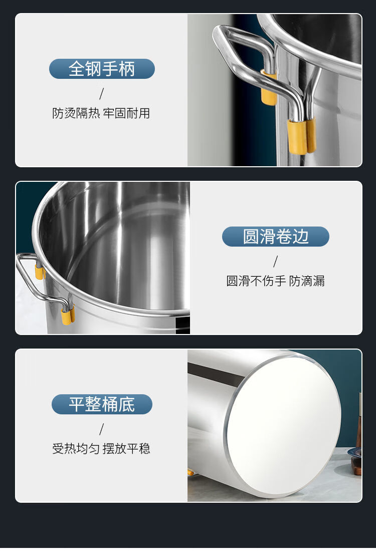 Meikejie stainless steel pot, commercial soup bucket with lid, thickened bottom, large capacity stew pot, household water storage bucket, stainless steel bucket, extra thick body, diameter 12, height 7, no lid, no ears