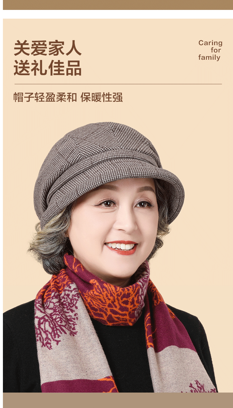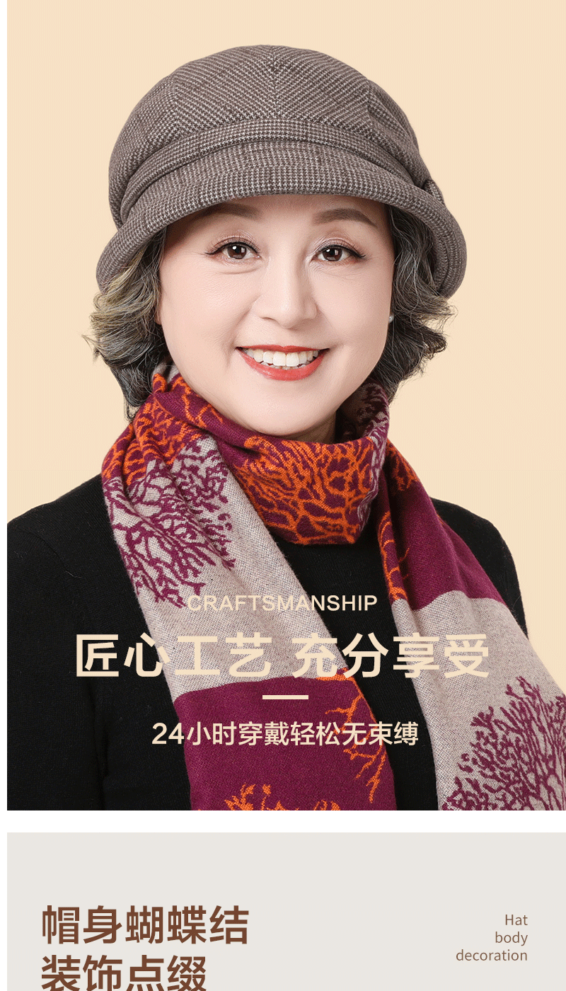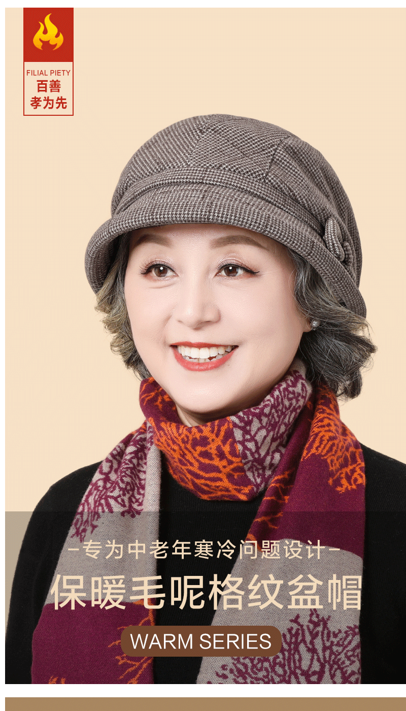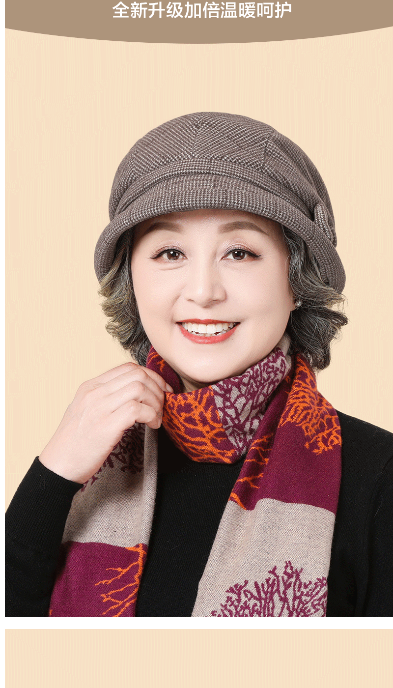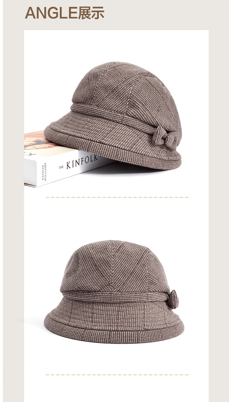 Changyin middle-aged and elderly mothers and ladies autumn and winter style woolen basin hat cotton hat grandma old lady warm winter hat fisherman hat khaki plaid bird style