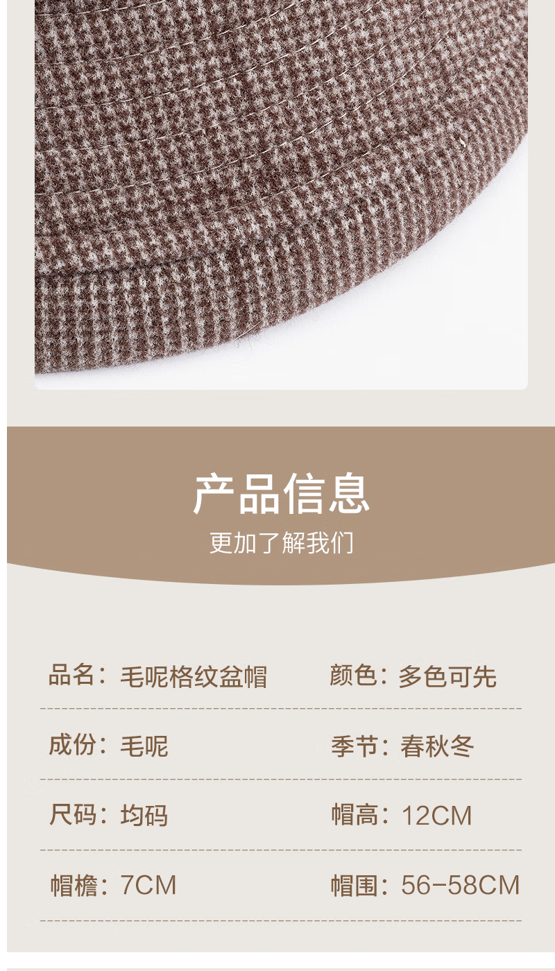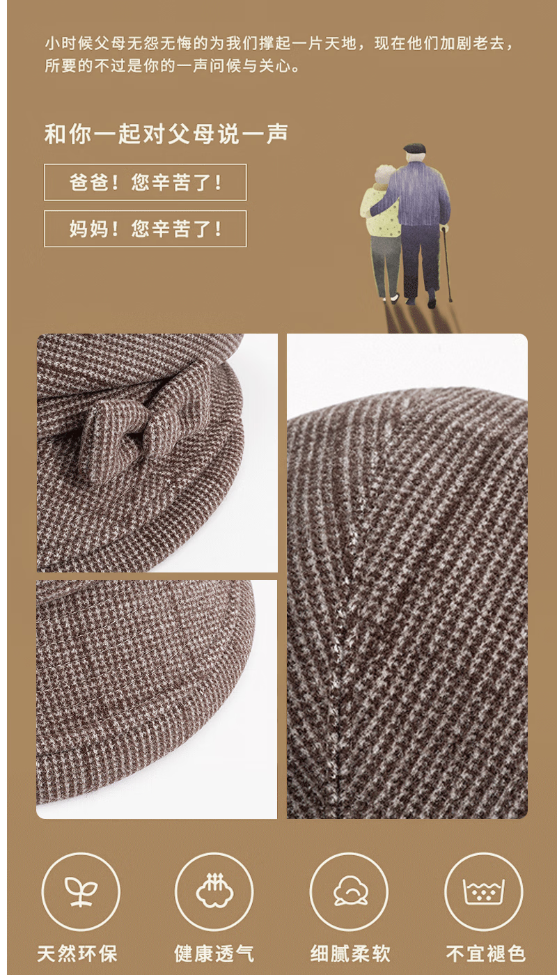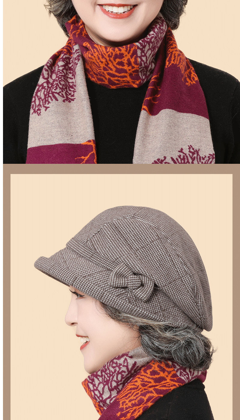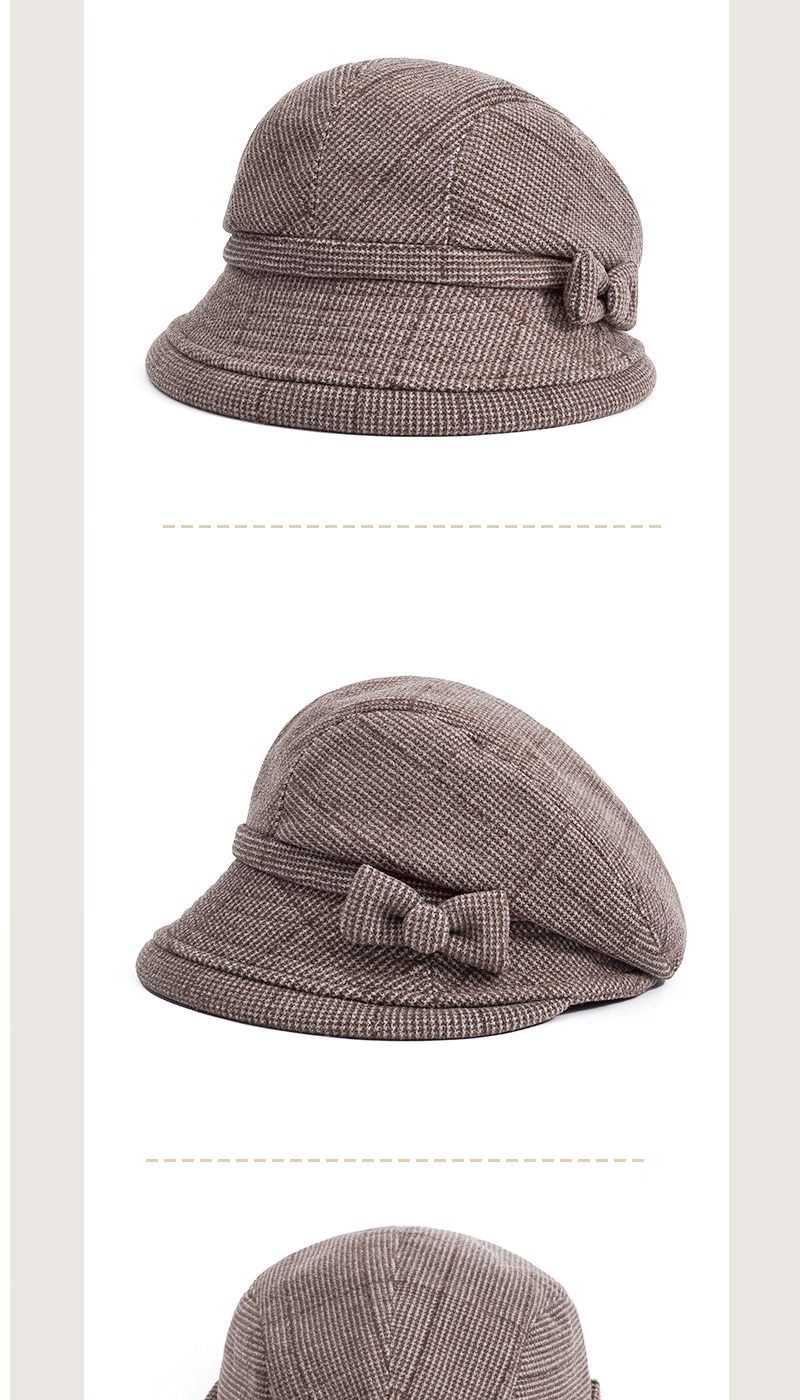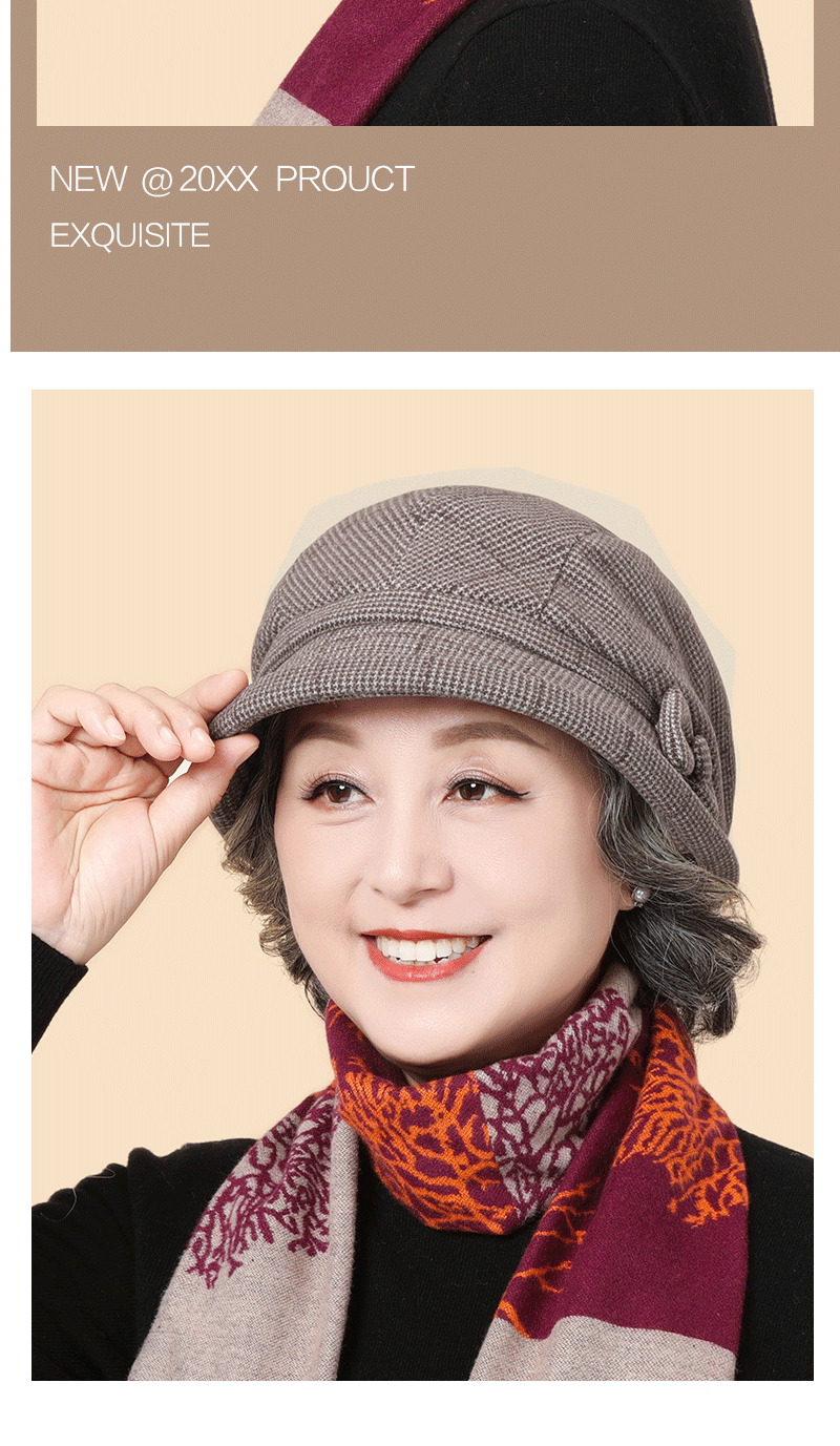 Changyin middle-aged and elderly mothers and ladies autumn and winter style woolen basin hat cotton hat grandma old lady warm winter hat fisherman hat khaki plaid bird style