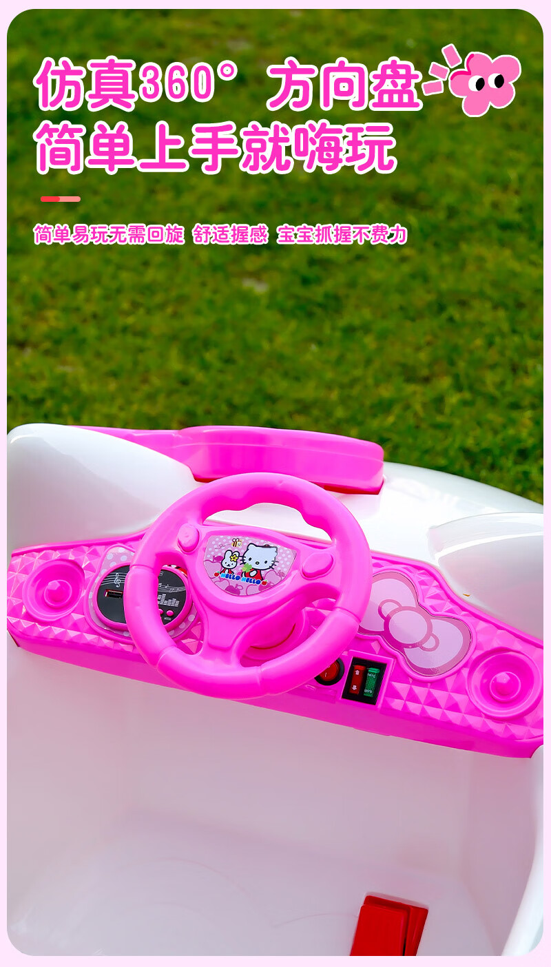 Mickey Bear hellokitty children's electric car four-wheeled baby toy remote control car can sit on little girl's birthday gift pink dual drive 12V7 + Bluetooth music light + remote control