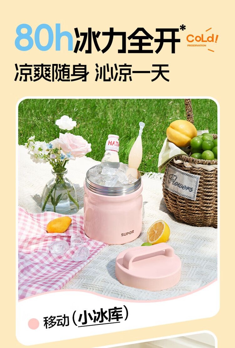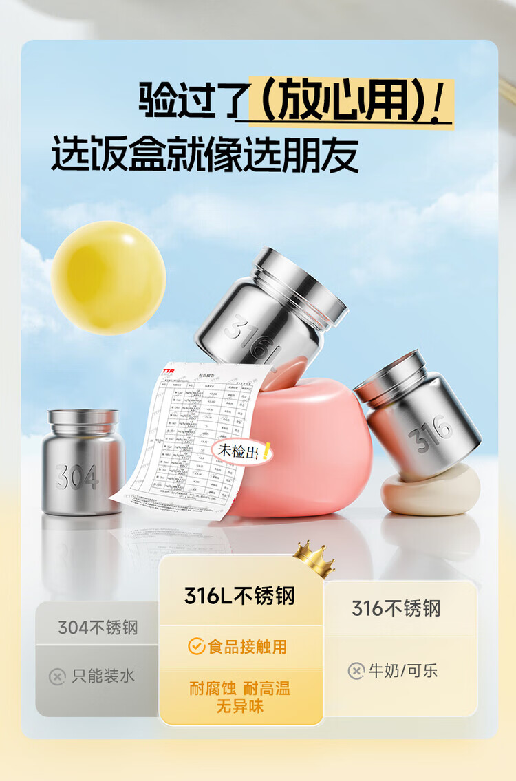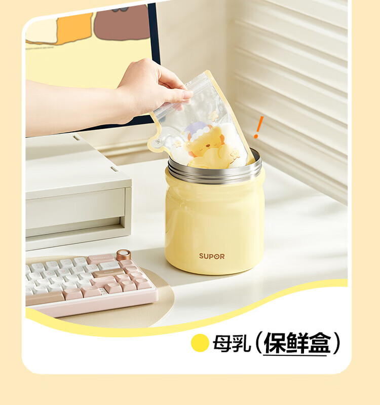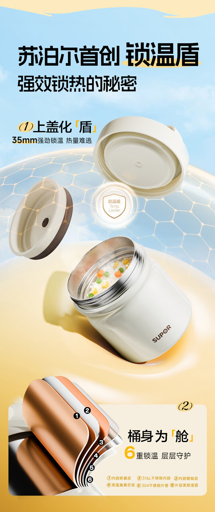 SUPOR insulated lunch box for office workers and female students with meals, large-capacity stainless steel extra-long insulated bucket 2025 new model, divided style 1300mL malt yellow, super thermal insulation, super sealed, guaranteed