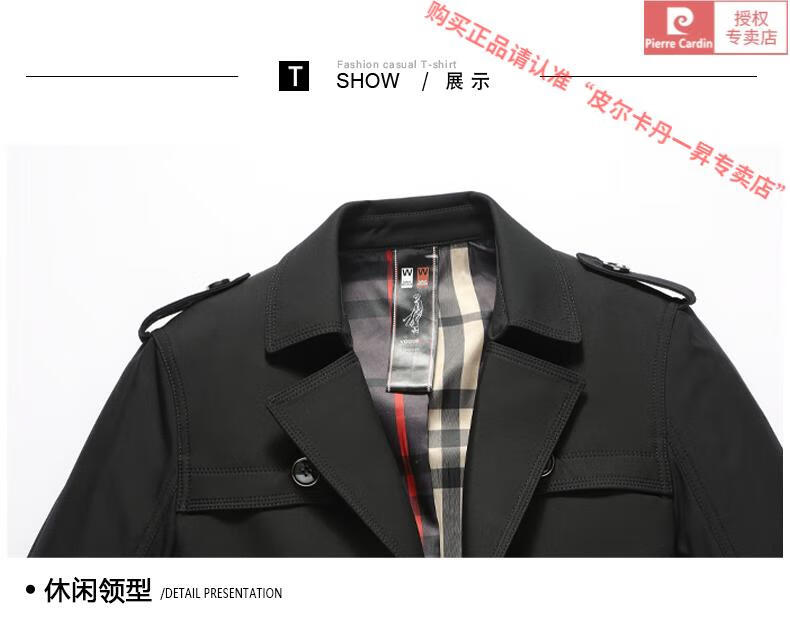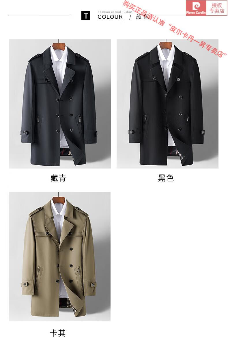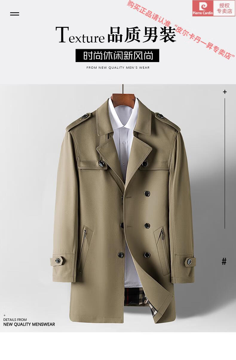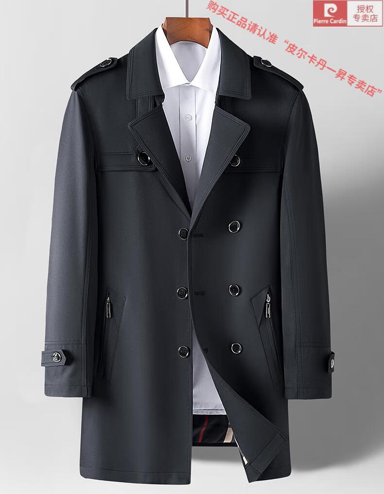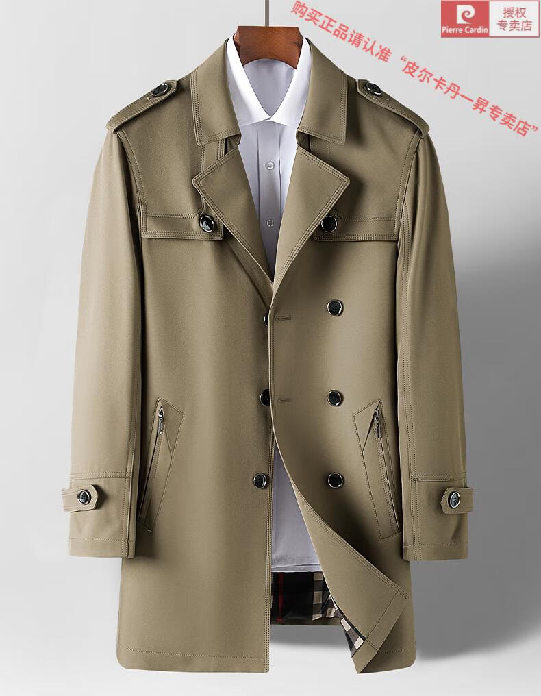 皮尔卡丹高档轻奢风衣外套男士春秋季中长款休闲春秋款商务休闲帅气男装潮 卡其色 2XL 185(适合145-160斤穿)