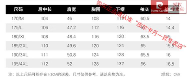 China (cm) 165 / 88-90 170 / 96-98 175 / 108-110 180 / 118-122 185 / 126-130