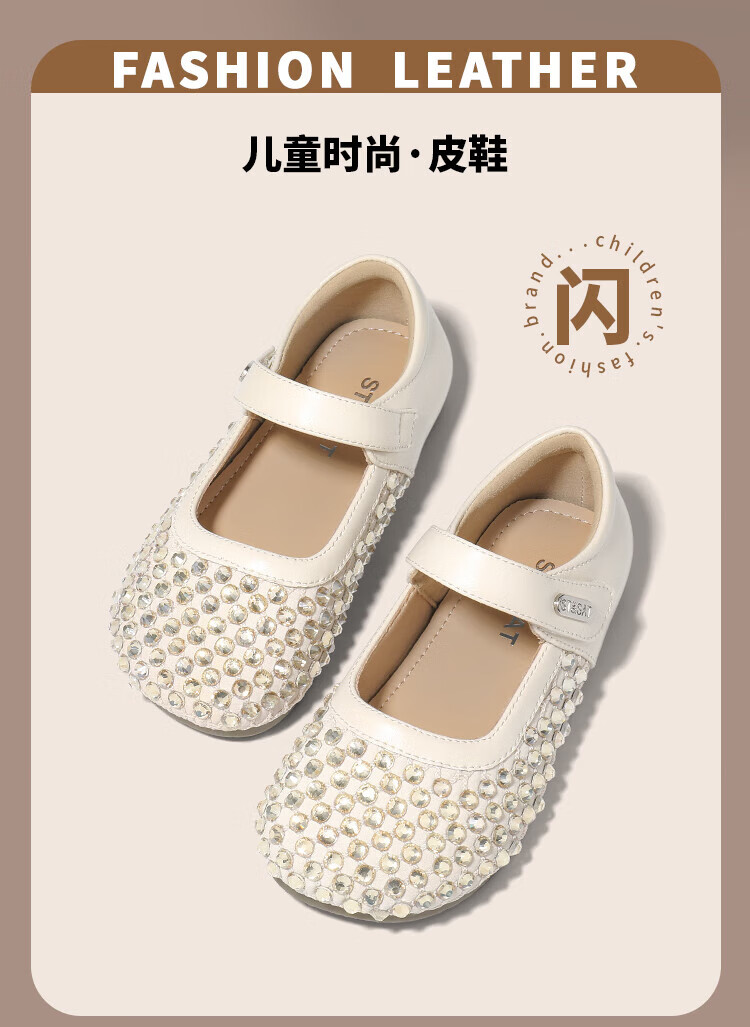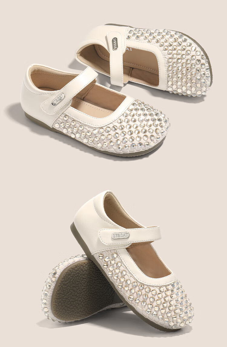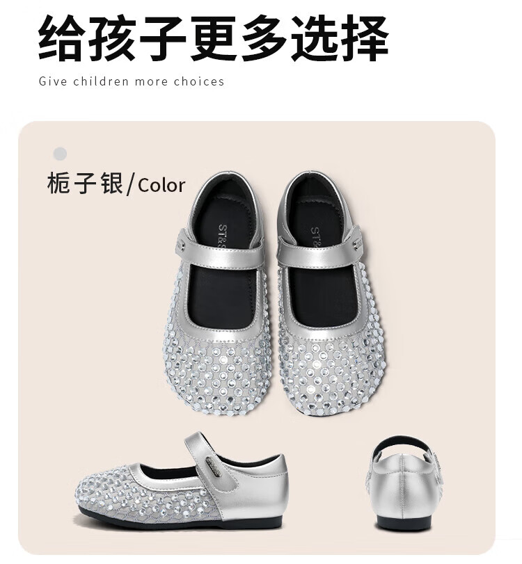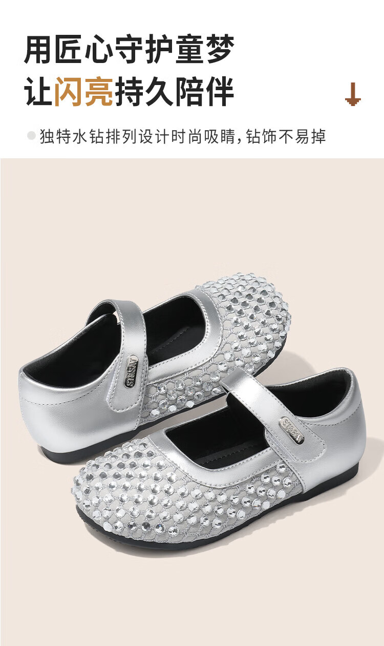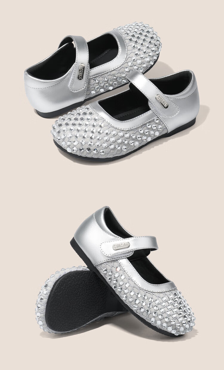 Saturday Children's Shoes Girls Princess Shoes 2025 Autumn New Little Girls Soft Sole Rhinestone Crystal Shoes Small Leather Shoes Gardenia Silver 30 Shoe Inner Length 19.4cm/Suitable for Foot Length 18.6cm
