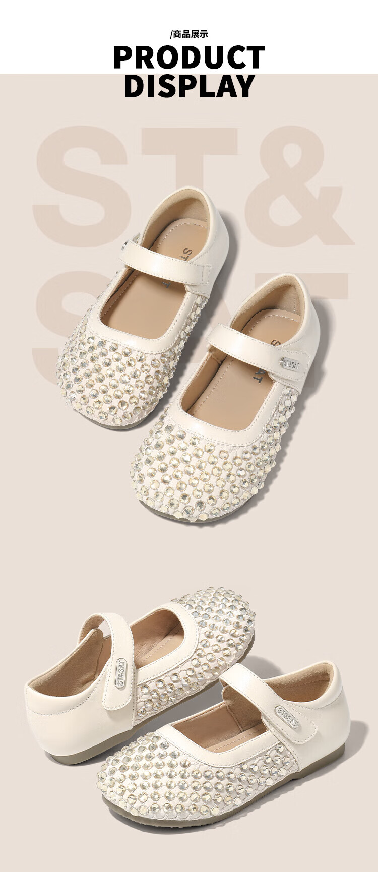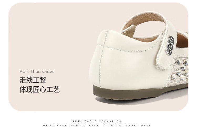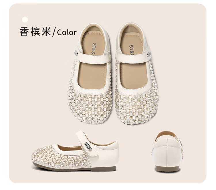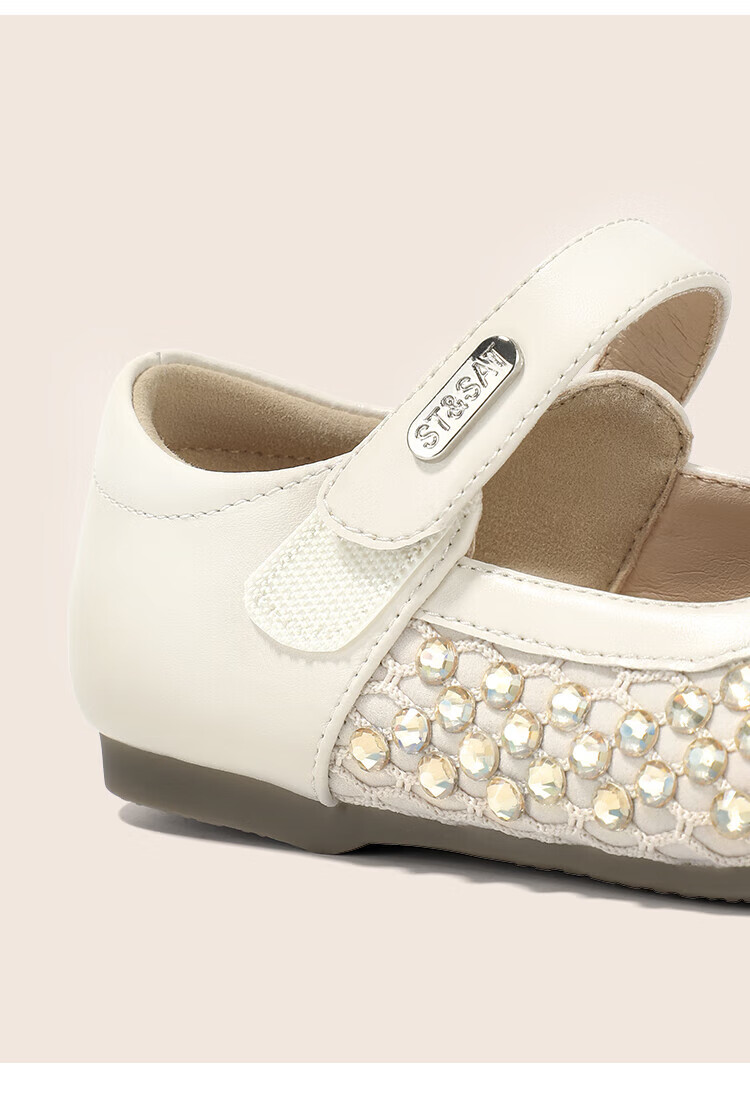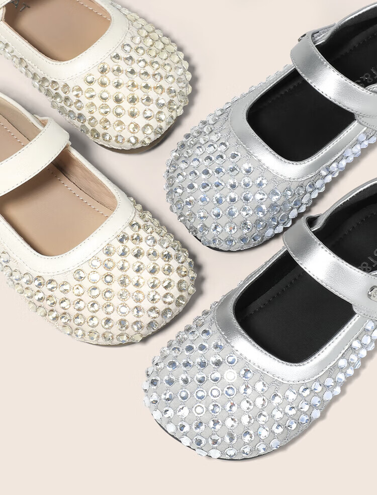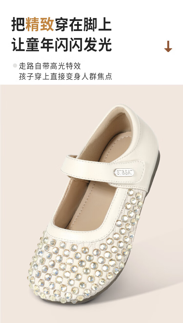 Saturday Children's Shoes Girls Princess Shoes 2025 Autumn New Little Girls Soft Sole Rhinestone Crystal Shoes Small Leather Shoes Gardenia Silver 30 Shoe Inner Length 19.4cm/Suitable for Foot Length 18.6cm