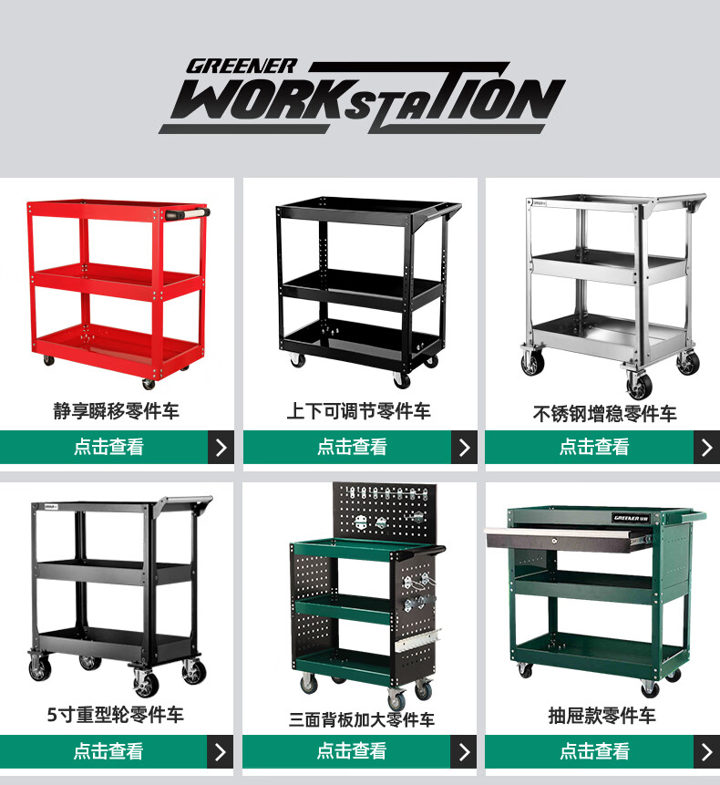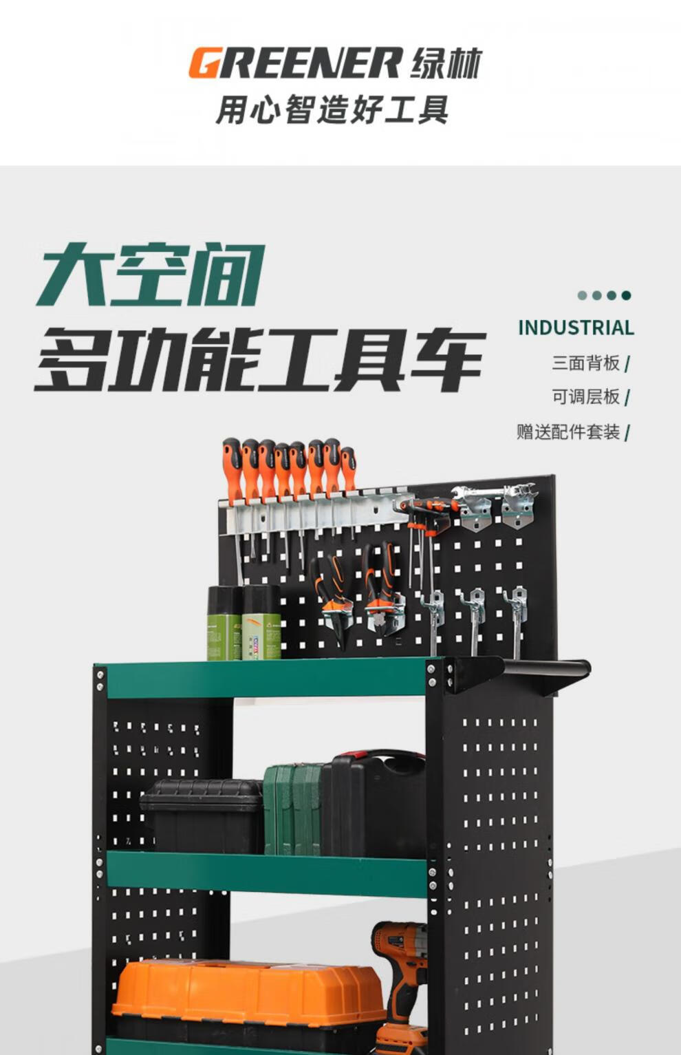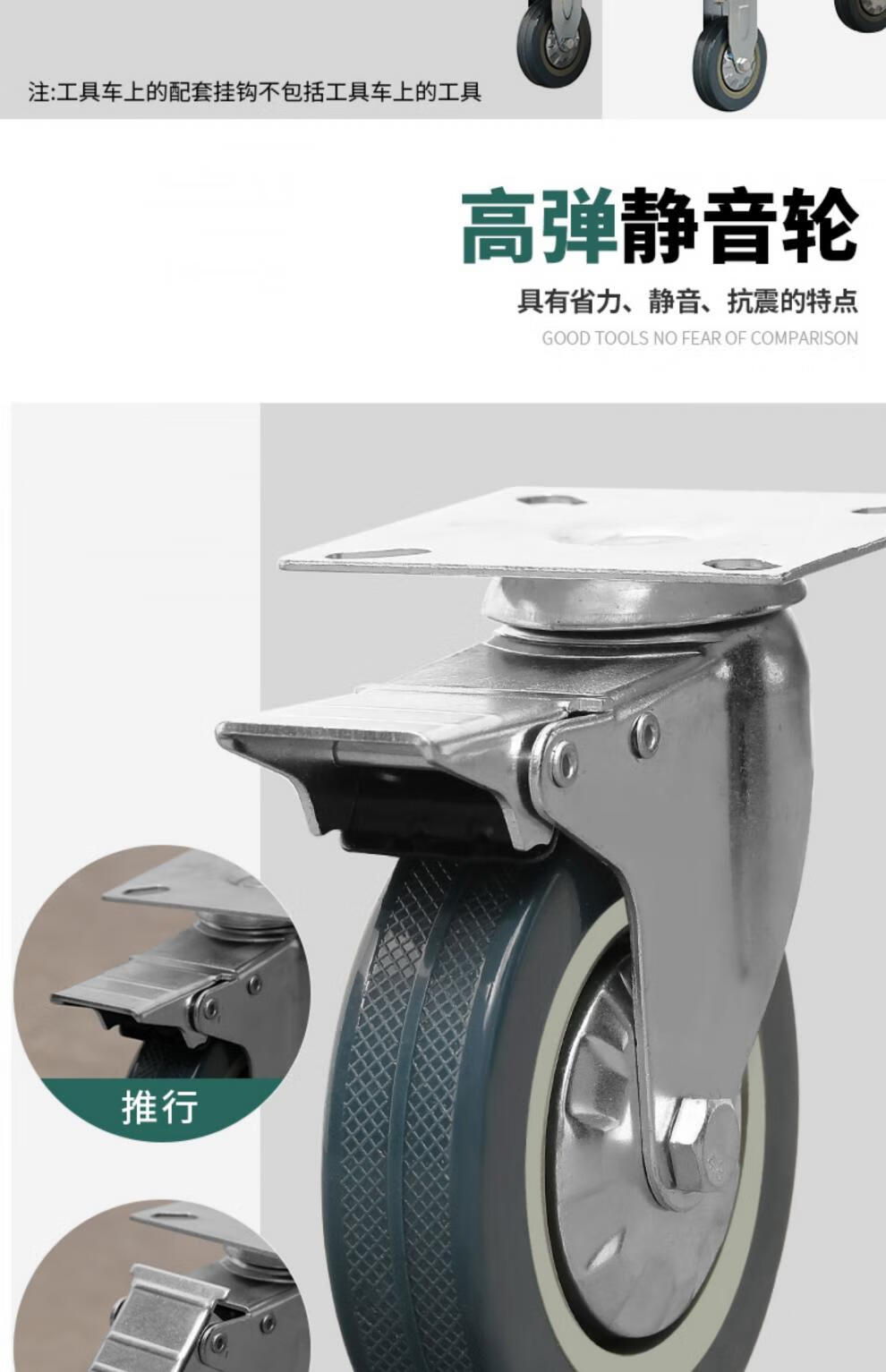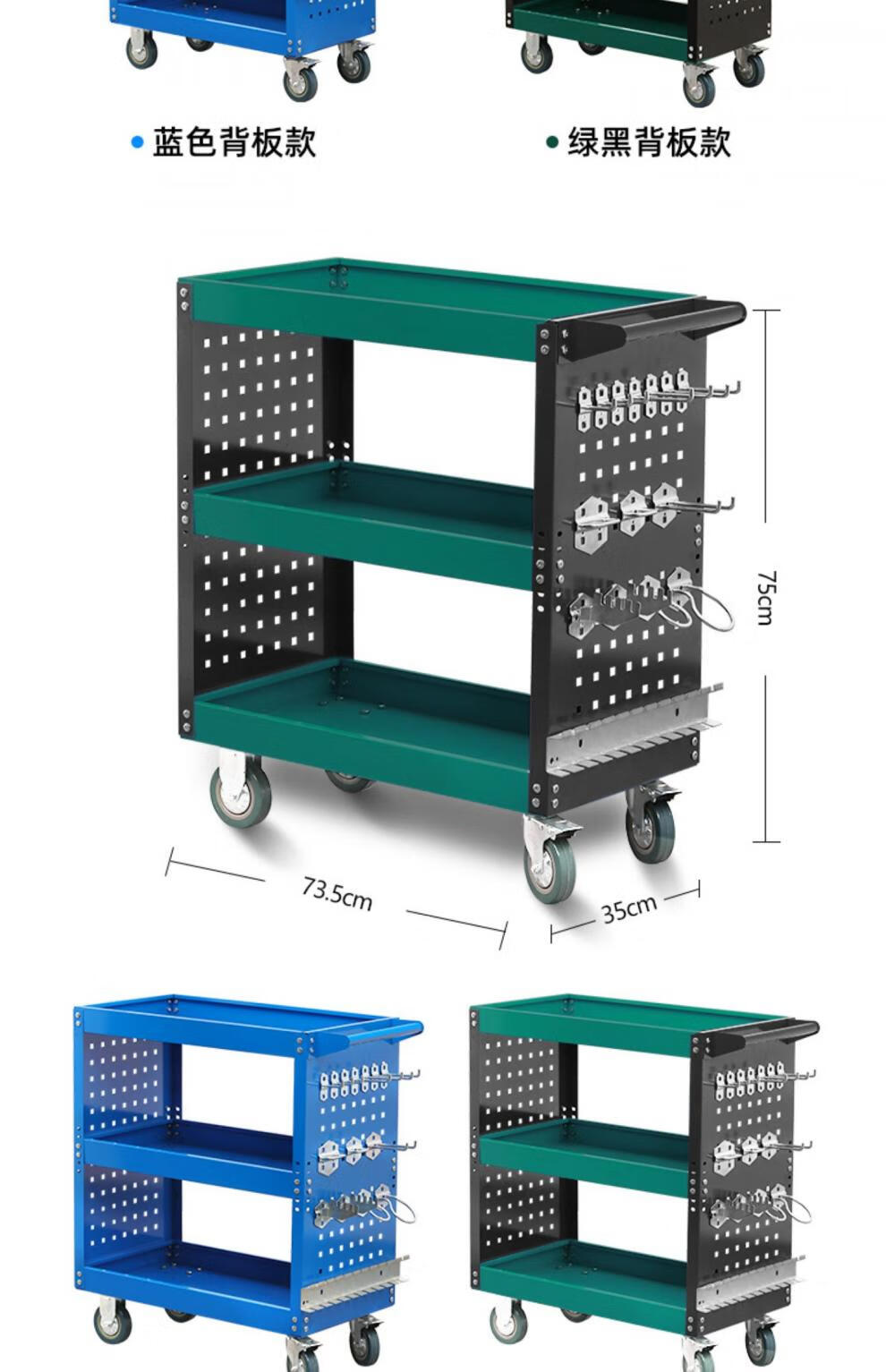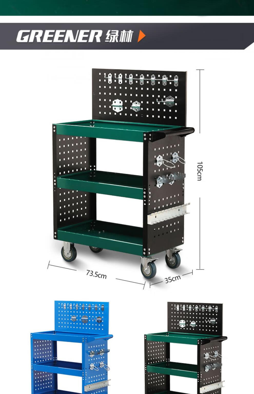 GREENER Tool Cart Auto Repair Mobile Storage Rack Push Shop Hand Push Tool Cabinet Box Drawer Parts Cart High Elastic Silent Wheel Luxury Model Pure Blue (Grid +