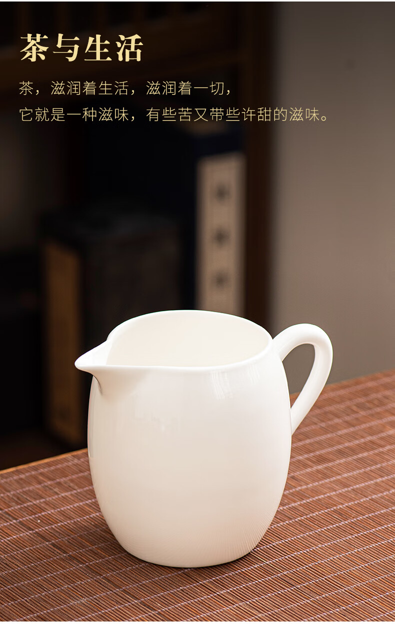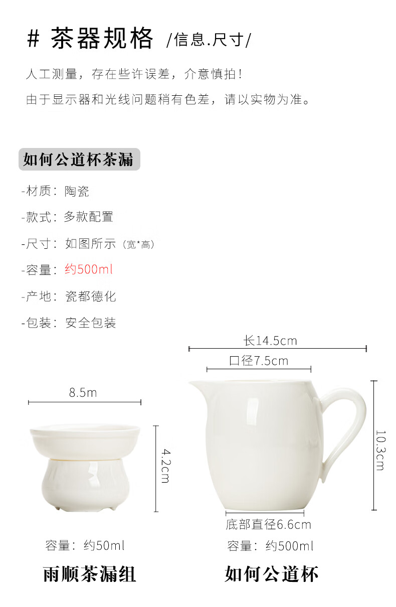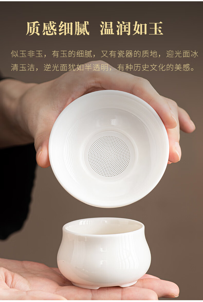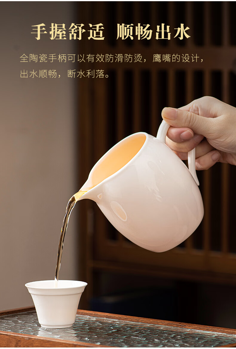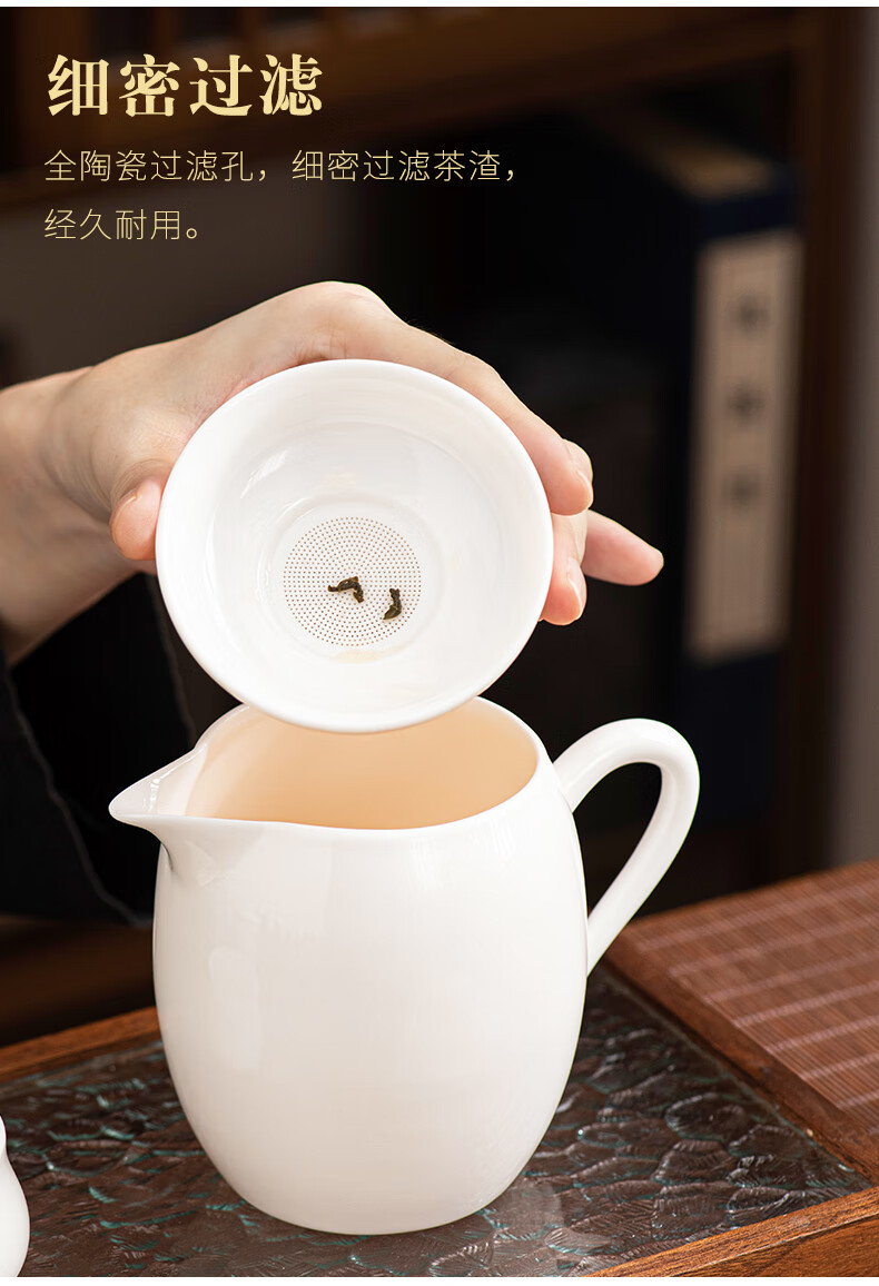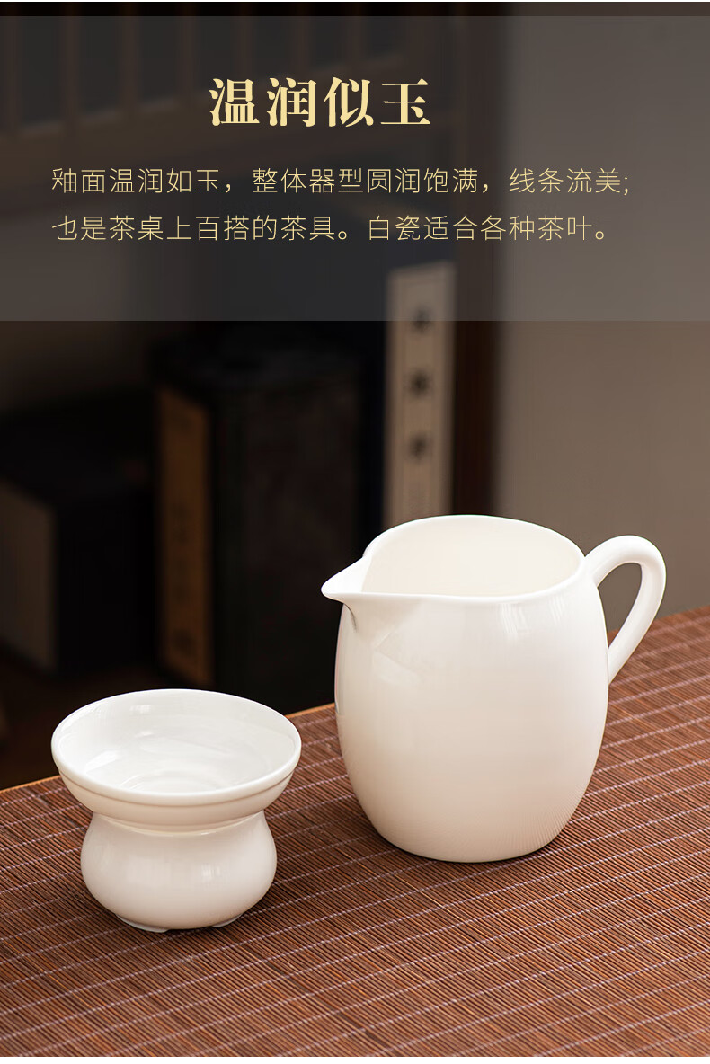 Yuanxi 500ml large mutton-fat jade fair cup tea drain integrated filter ceramic thickened tea divider set high-end mutton-fat jade fair cup + Yushun tea drain set