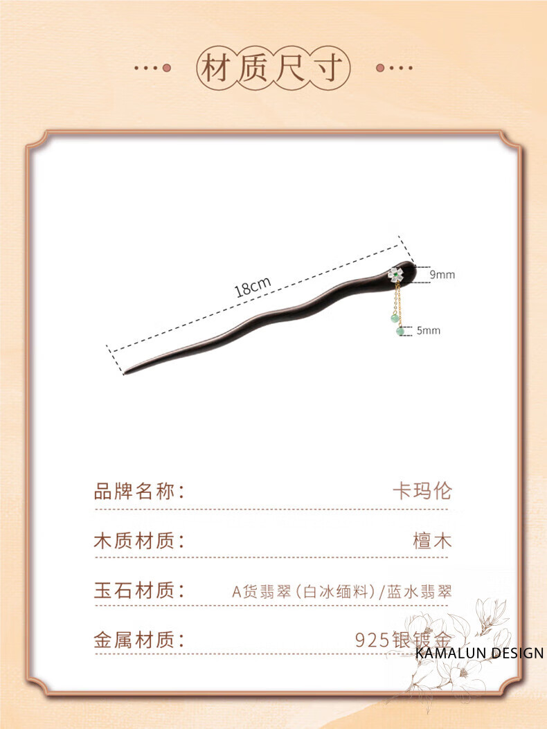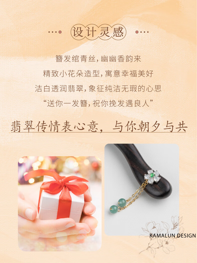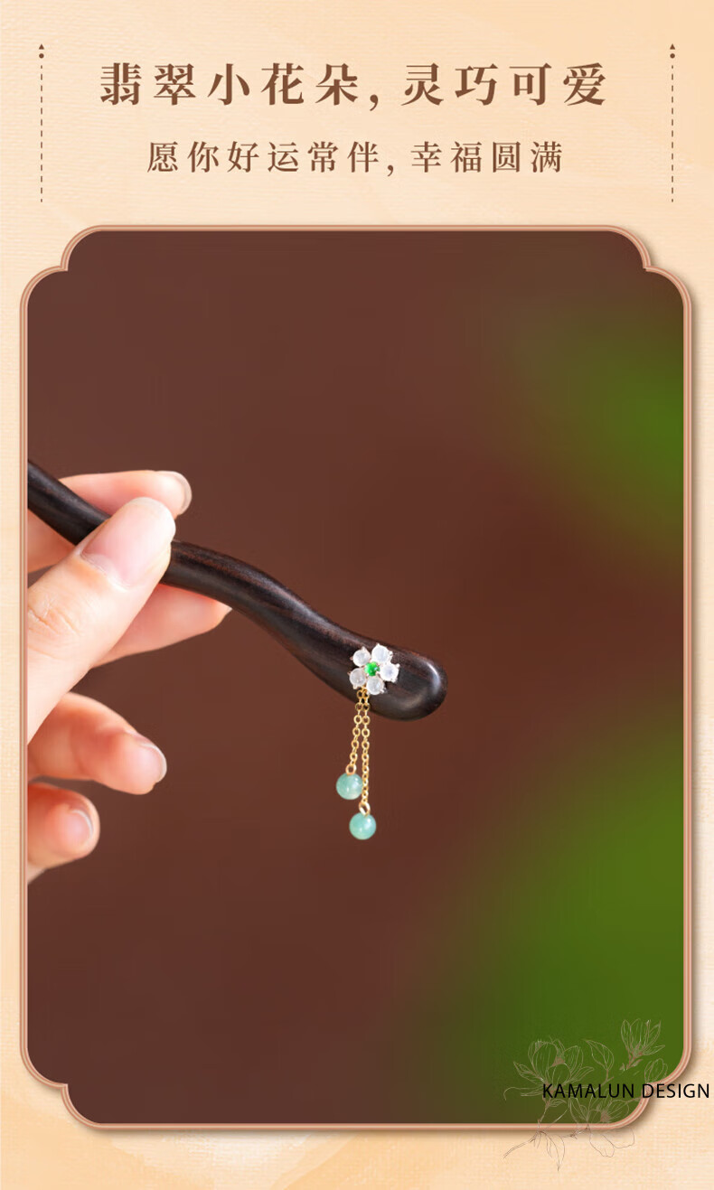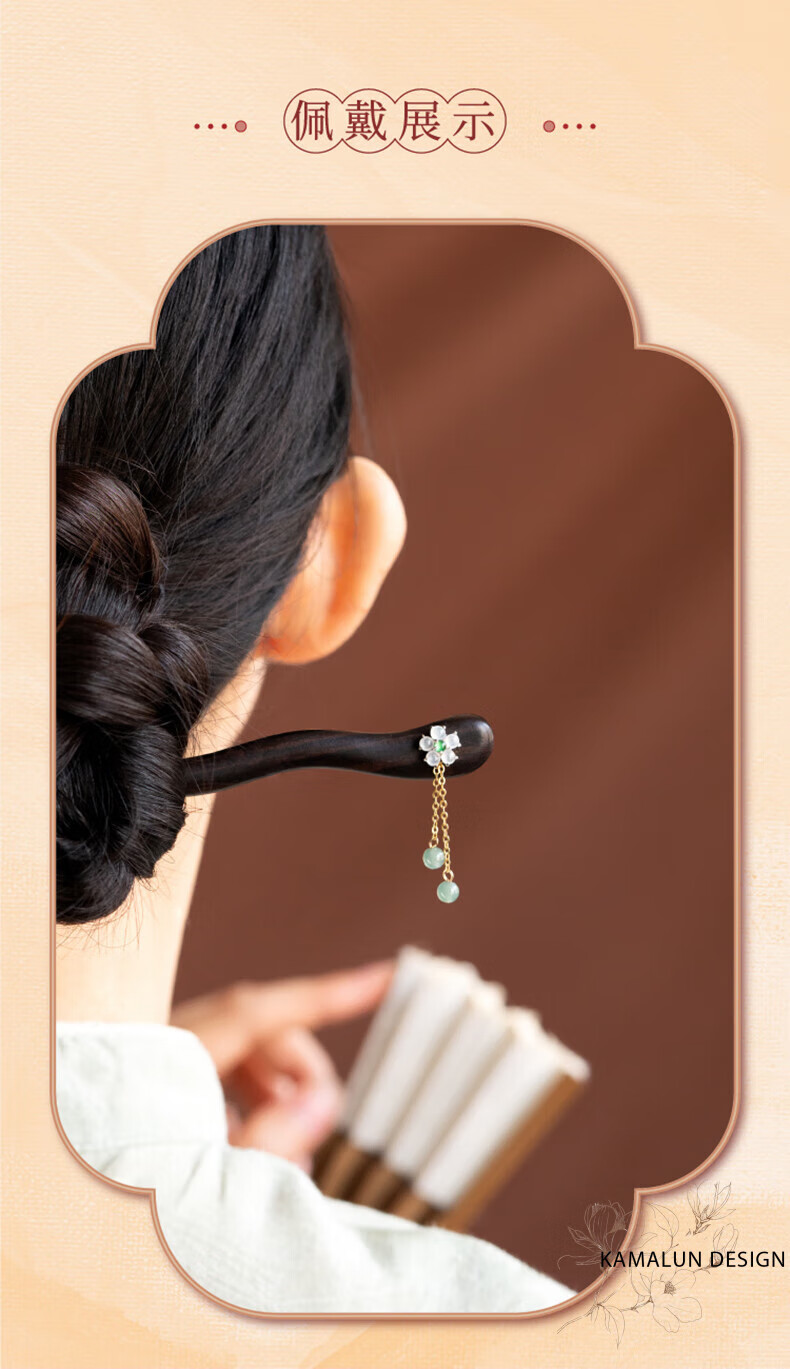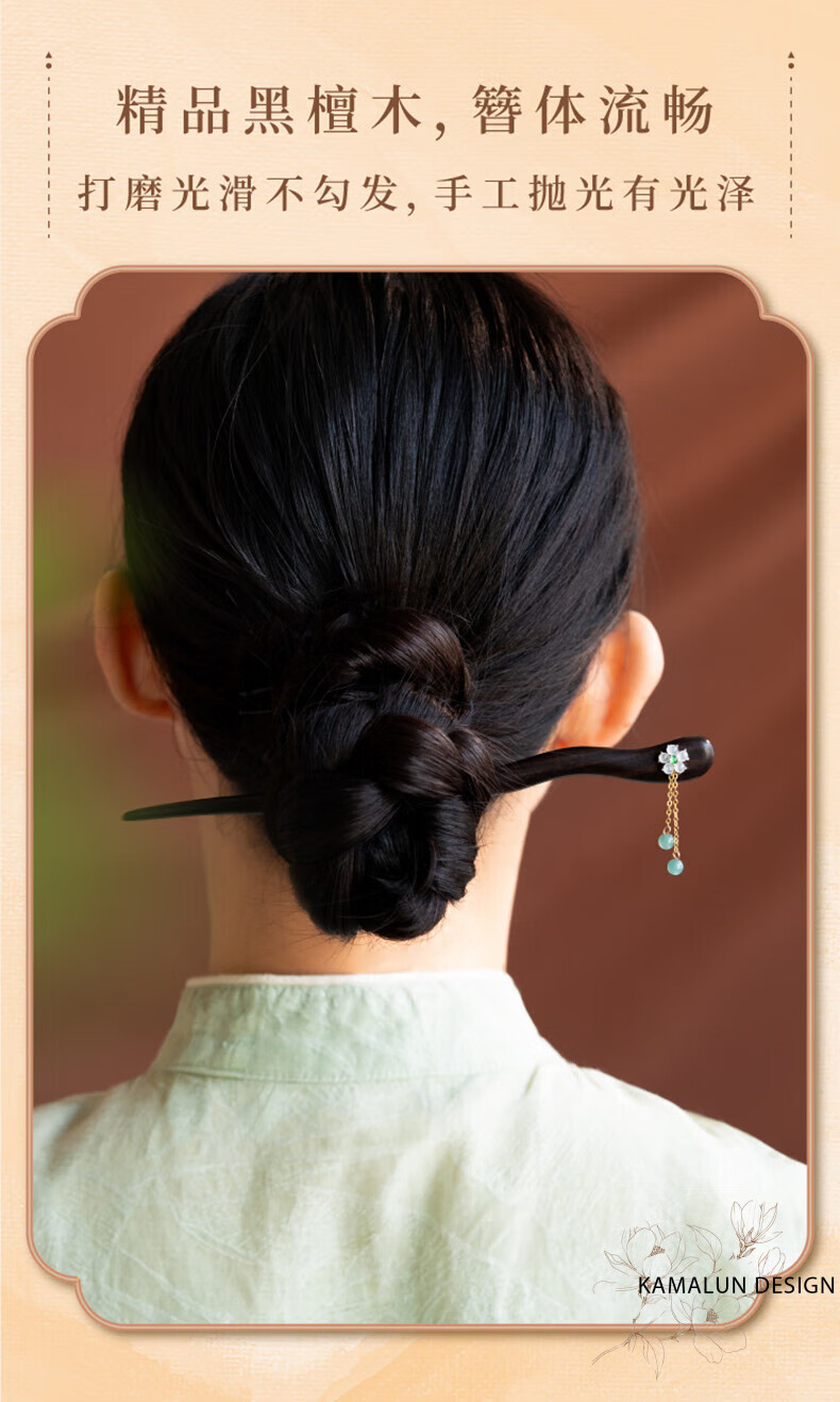Kamalun (KAMALUN) hairpin new Chinese style sandalwood hairpin ancient style coiled jade hairpin high-end daily wear headwear Chinese Valentine's Day gift hairpin + brand gift box without engraving