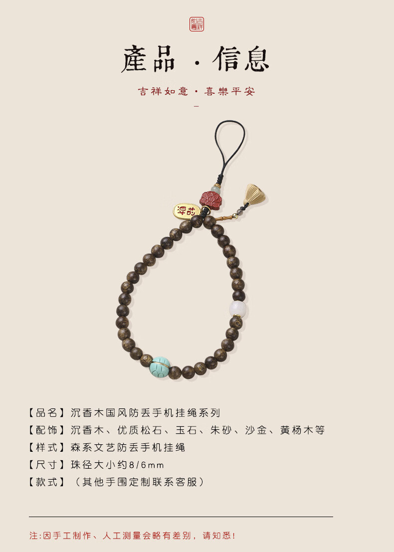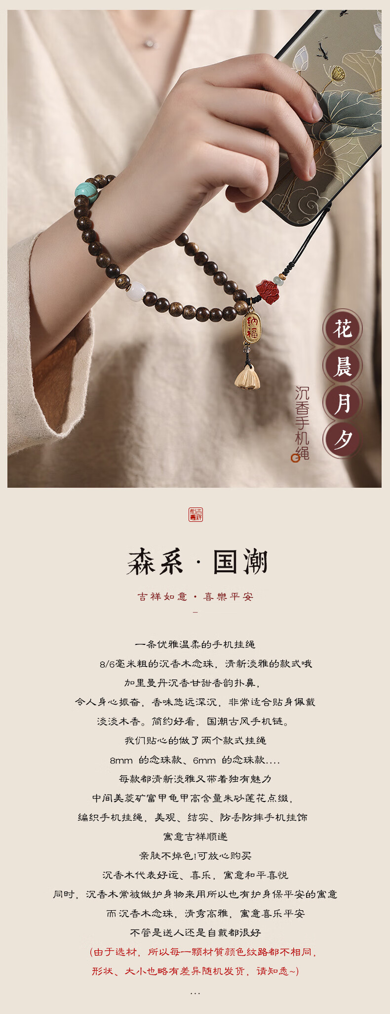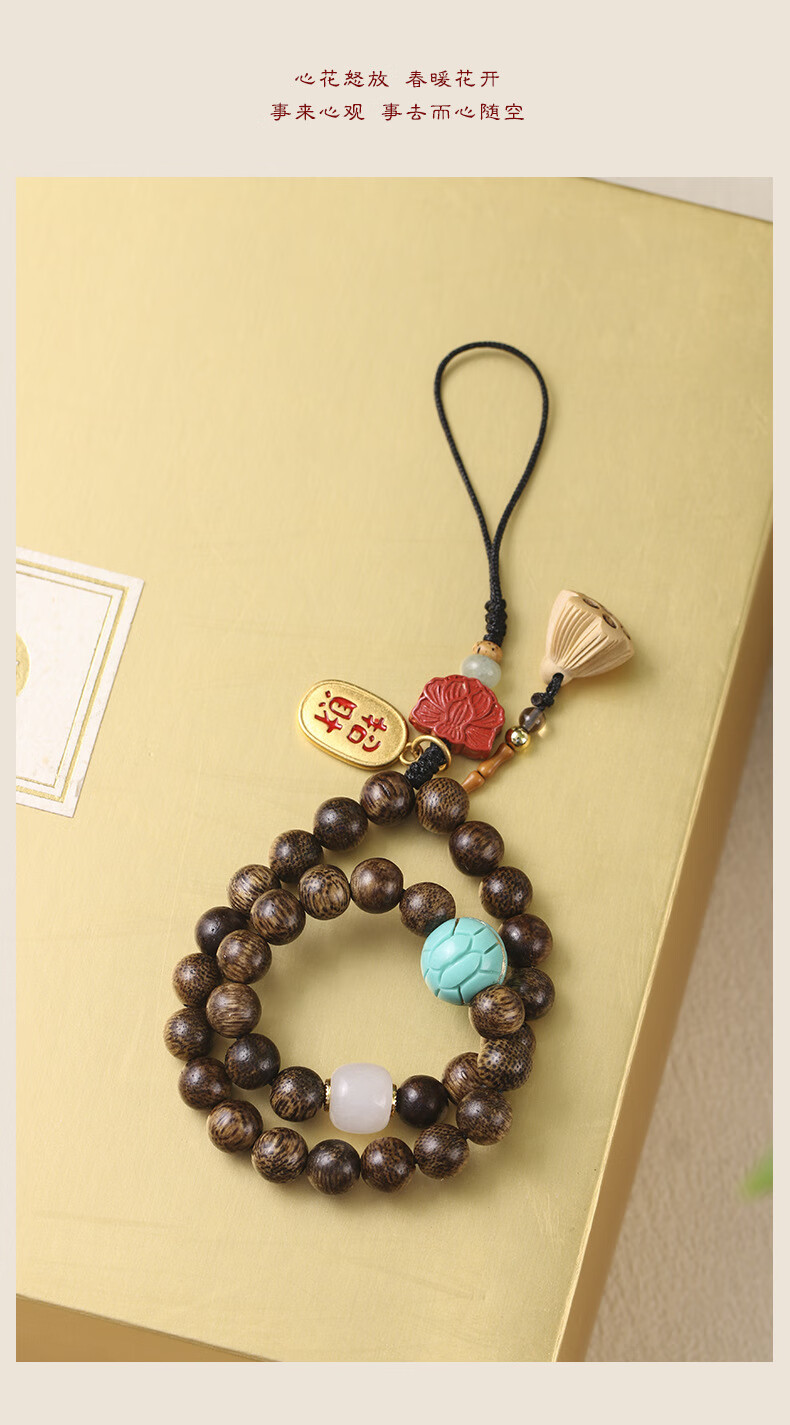 Jiuhuashan agarwood mobile phone chain lanyard short cultural toy wrist pendant pendant birthday gift for girls practical girlfriend Good Luck Lotus Agarwood mobile phone chain lanyard 8mm
