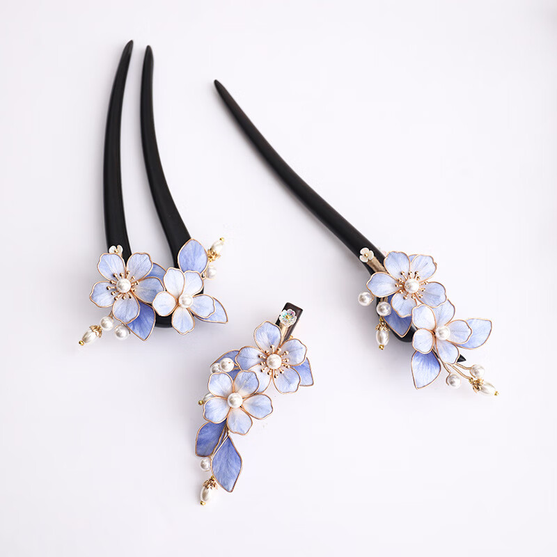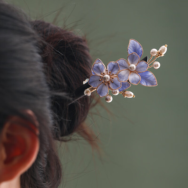 Meng Junchen Intangible Cultural Heritage Silk Velvet Flower Sandalwood Hairpin Hairpin Hanfu with Hairpin Jewelry Cheongsam Hairpin Birthday Gift Sandalwood Single Hairpin Velvet Flower Fenghua