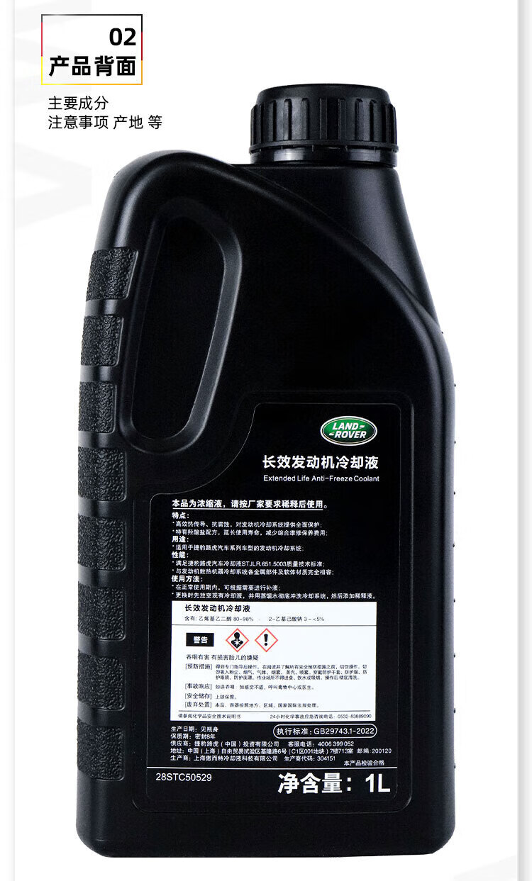 Land Rover (LAND ROVER) original antifreeze coolant Discovery Shenxing Lanyun Xingmai Aurora Land Rover 4S original antifreeze orange red 1L -40 red (single bottle)
