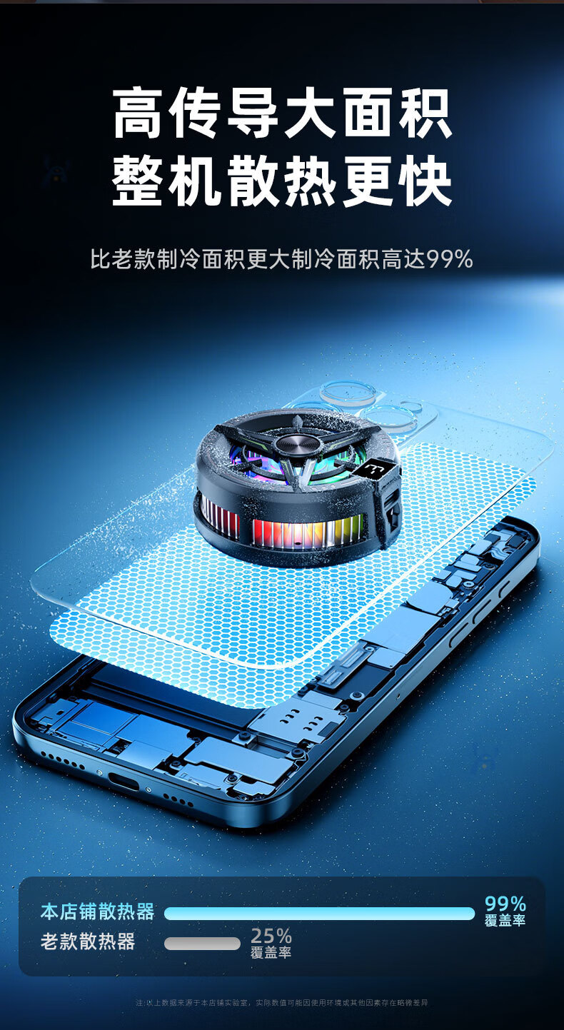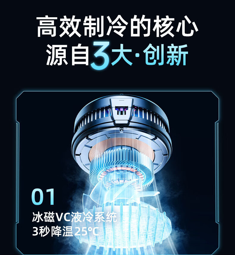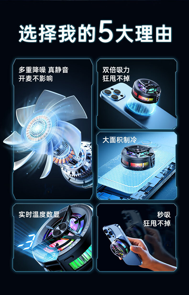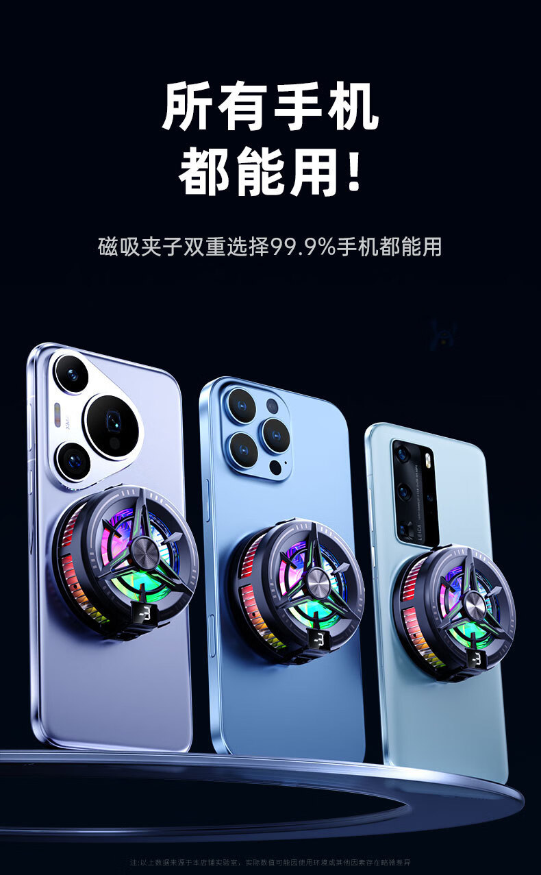 Black Shark Mobile Phone Radiator 2025 New Magnetic Semiconductor Refrigeration Cooling Artifact Suitable for Android, Apple OnePlus, Silent Cooling Back Clip for Freezing Tablets, iPad Live E-Sports Top Model - Magnetic Black, Three Levels for Freezing, Super Silent丨With Back Clip + Finger Cover