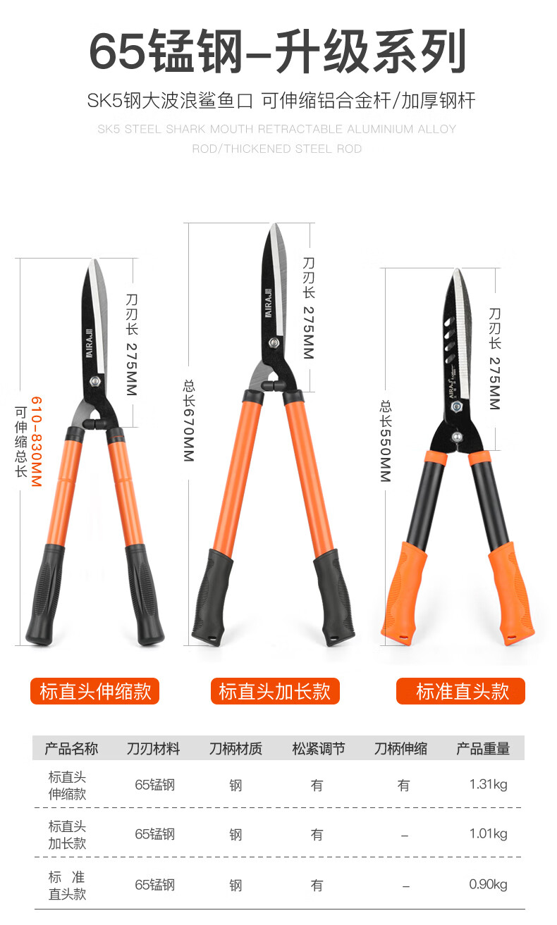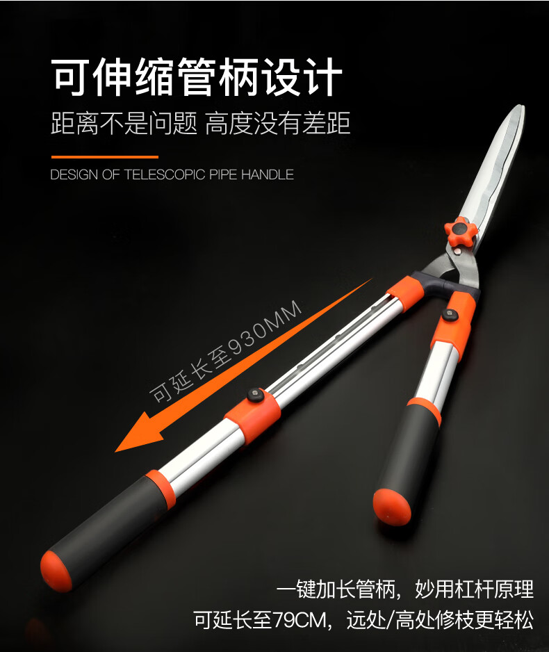 Arrizo gardening scissors, garden flower shears, pruning shears, special hedge shears for trimming lawns, powerful trimming of branches, upgraded series - large straight blade telescopic type