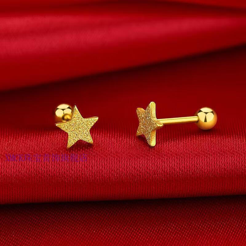 XMCK Old Phoenix Small Fresh Five-Pointed Star Ear Bone Nail Screw Twist Tide Ear Hole Four-leaf Clover Lightning Beixie Allure Golden Frosted Five-Pointed Star Ear Nail