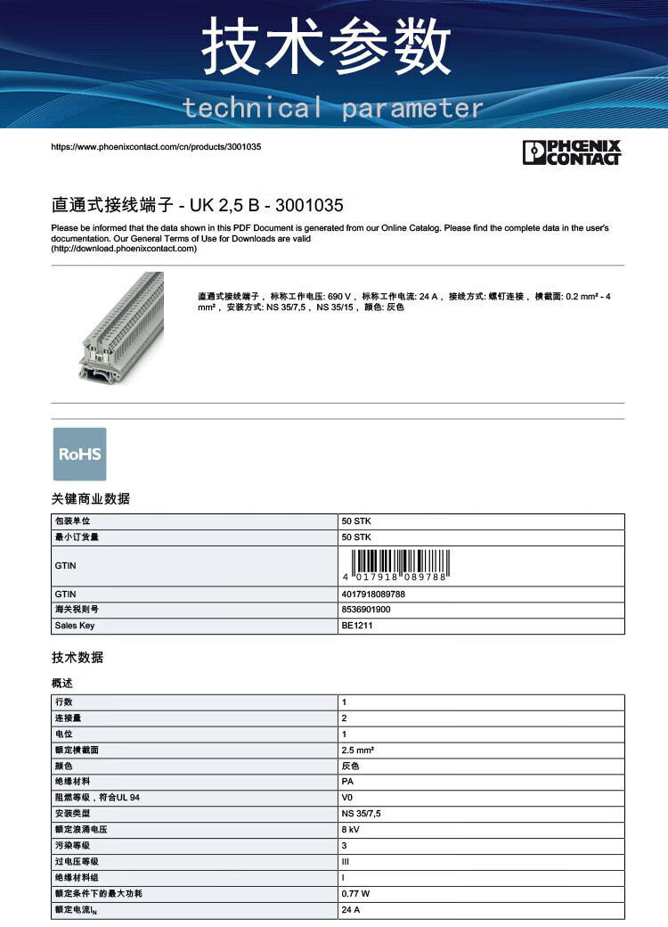 Phoenix Germany UK2.5B UK3N UK5NUK6N terminal block FBI10-6 bridge ZB6E/UK bridge FBRI10-5N (with UK3N)