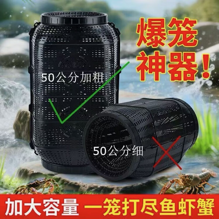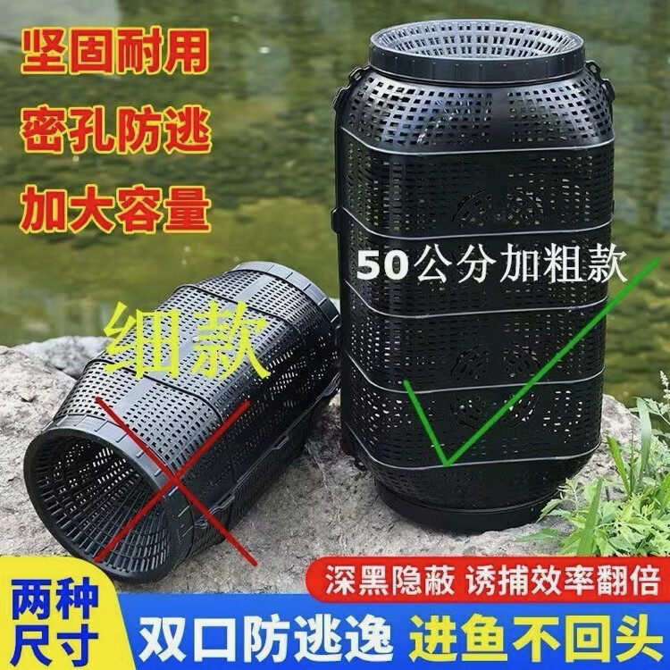 Buy one and get three free. Super large fish cage fishing artifact that can only enter and not get out of the cage to catch crabs, loach and fish. 2 giant fish cages, 50cm long and 20cm wide. Flash sale bonus. Free bait + bait cup + cage rope.