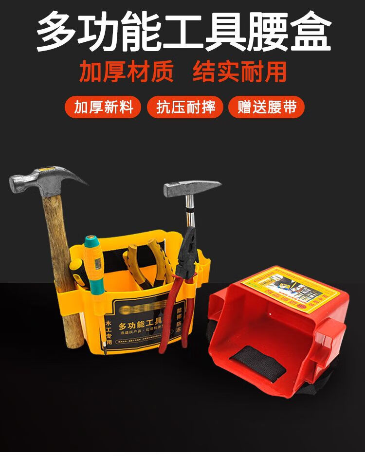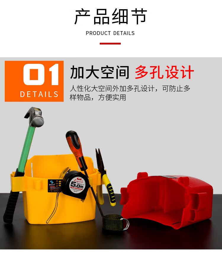 MieLanat multifunctional tool box carpenter outer frame decoration steel tooling parts nails plastic carpentry box nail bucket waist bag box red carpentry box large (with compartments) comes with a belt