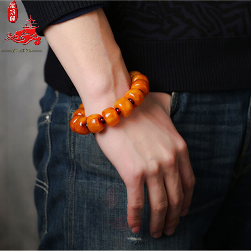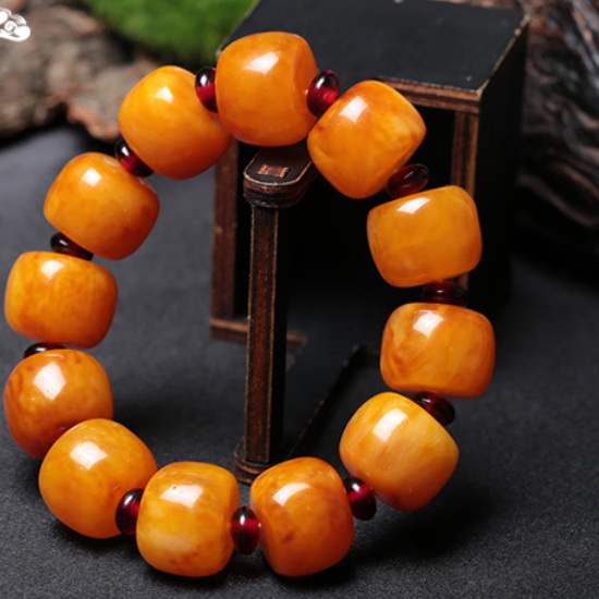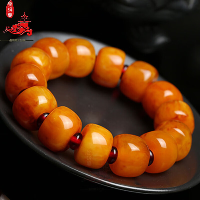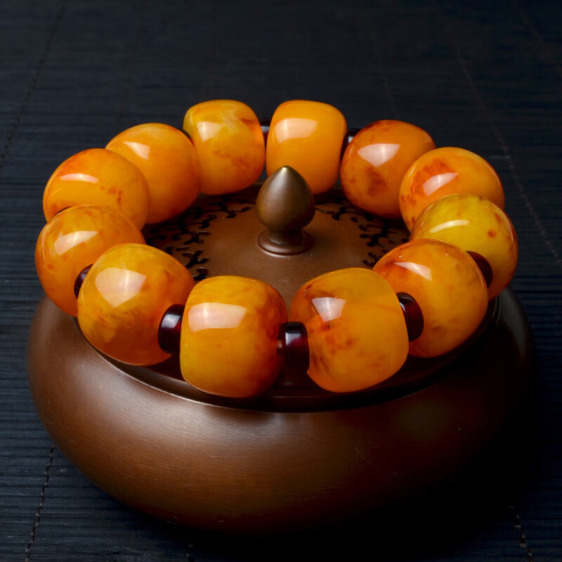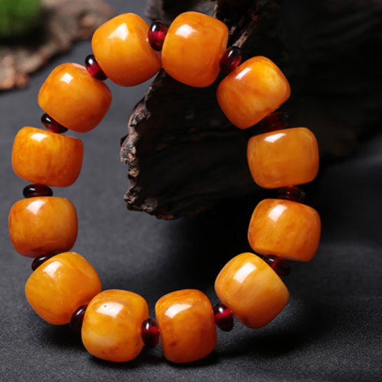 Fall in love with the old Phoenix, Russian material, old yellow beeswax amber barrel bead bracelet, old bead wax amber string, original stone drum bead beeswax bracelet, small shiny model 13*19 old honey barrel bead red separator, bagged