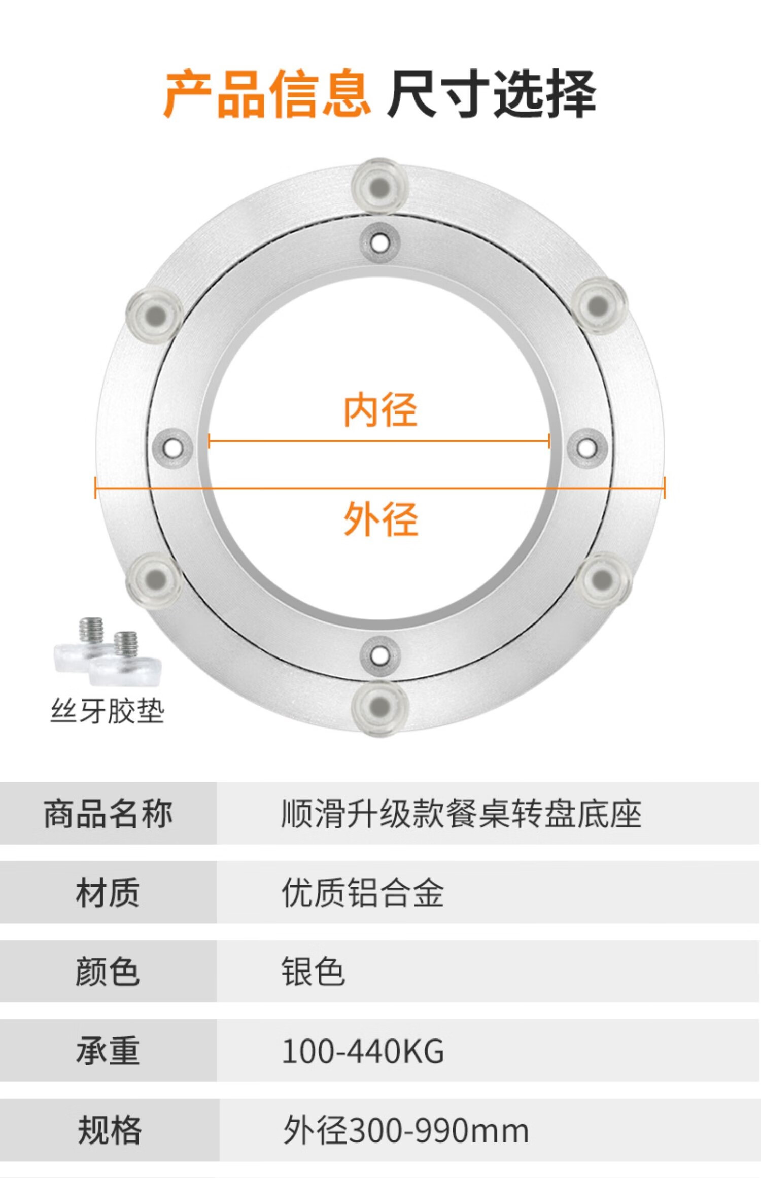 Qiao Bo Lai Esstisch-Plattenspieler, Basis aus Aluminiumlegierung, Haushalt, Marmorplatte, Glas, runder Tisch, rotierender Kern, rotierendes Schienenlager, Plattenspieler, verbesserter rutschfester Schalldämpfer, 800 mm, geeignet für 1500