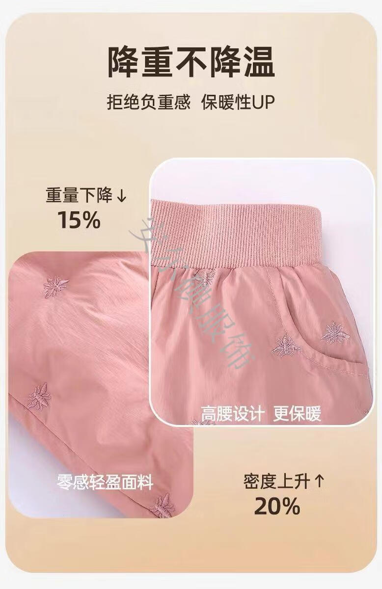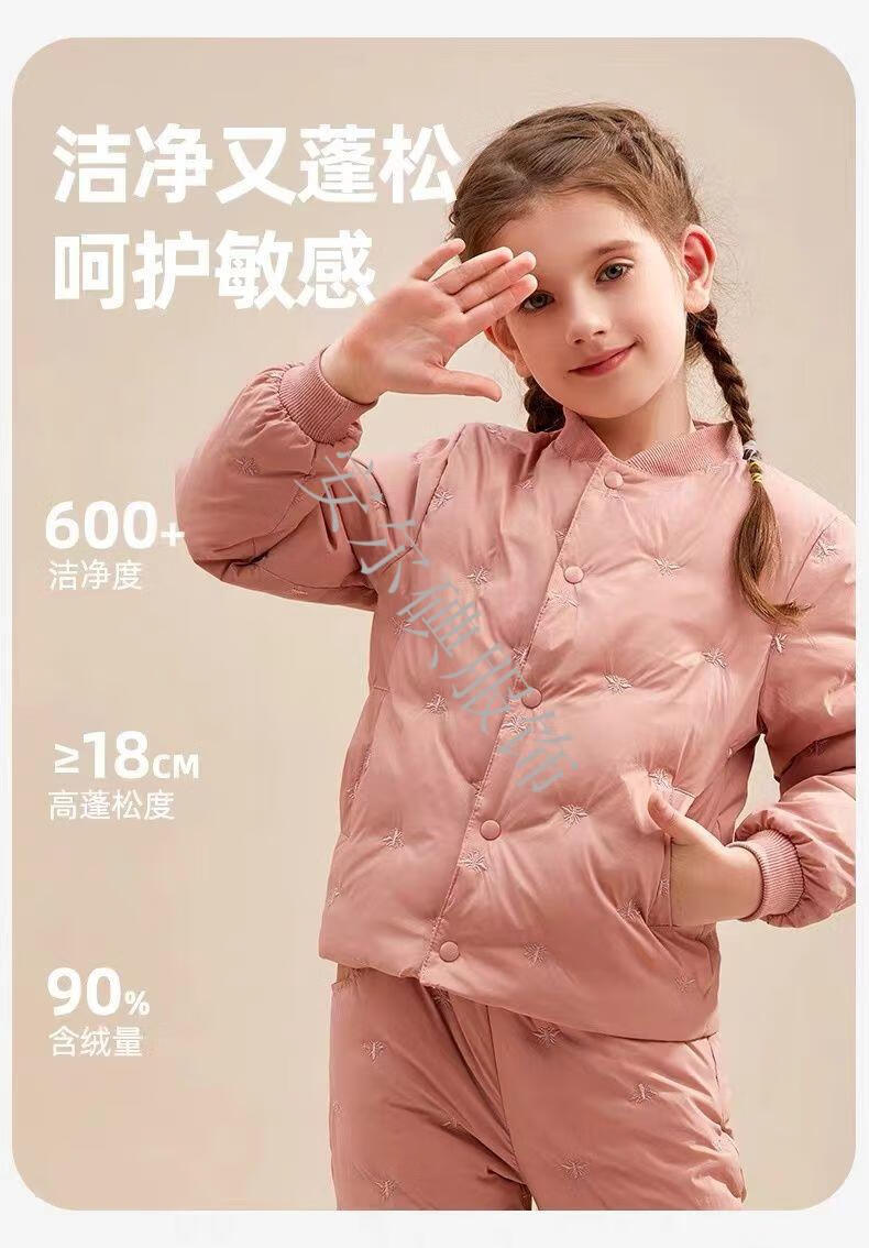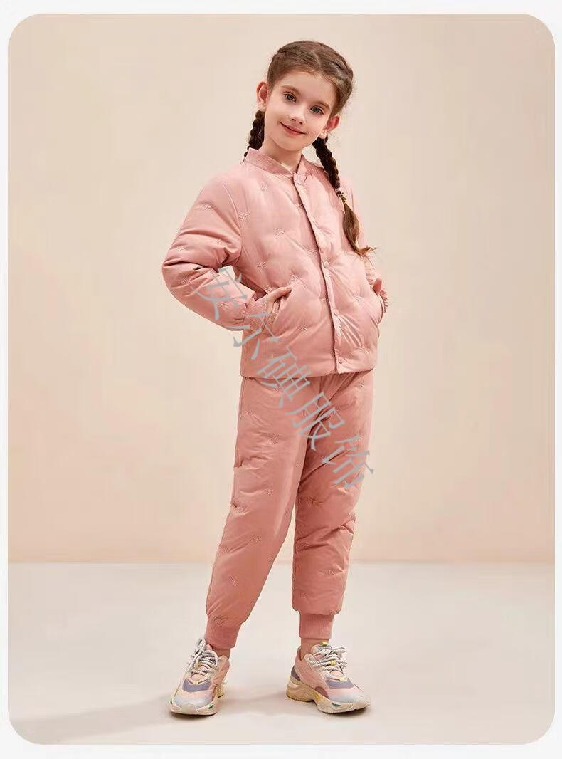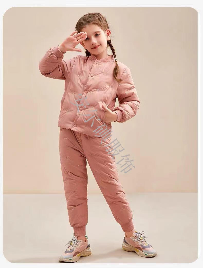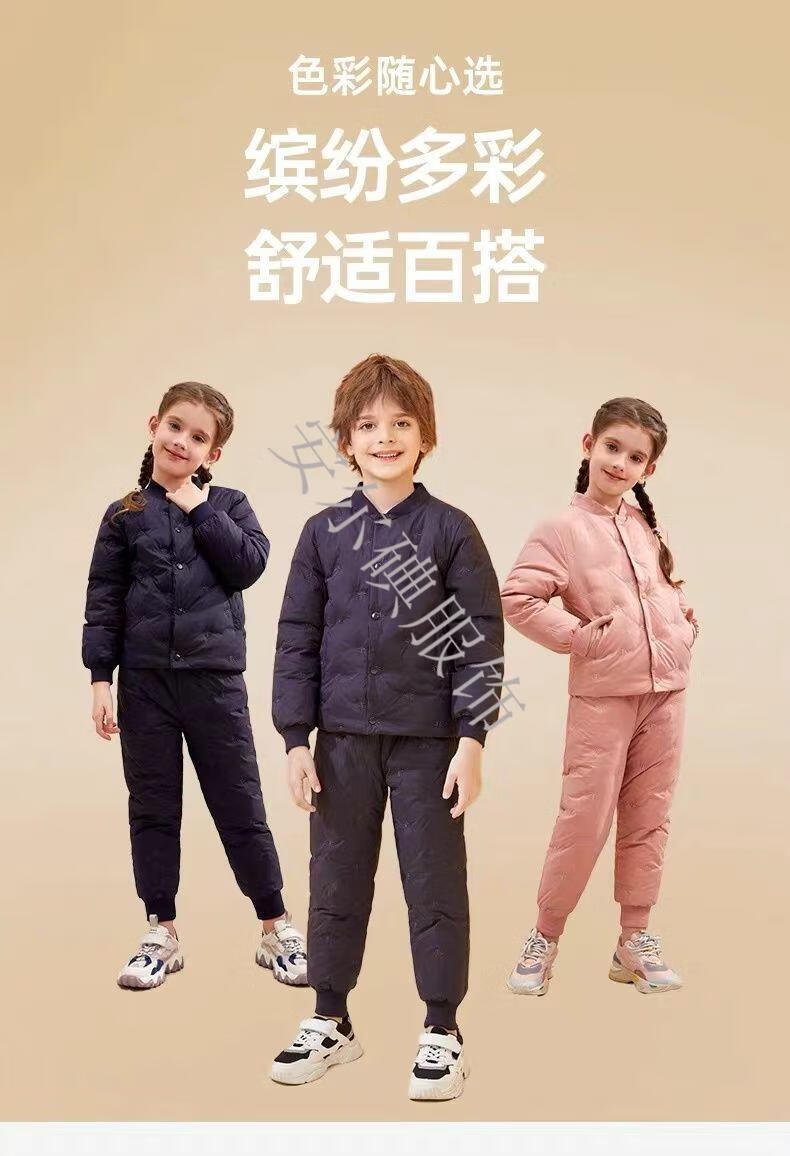 Warm winter duck duck children's down pants for boys and girls 2025 new inner wear casual down warm pants for middle and large children Pink bee belly protection high waist suit 150