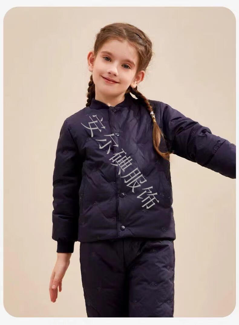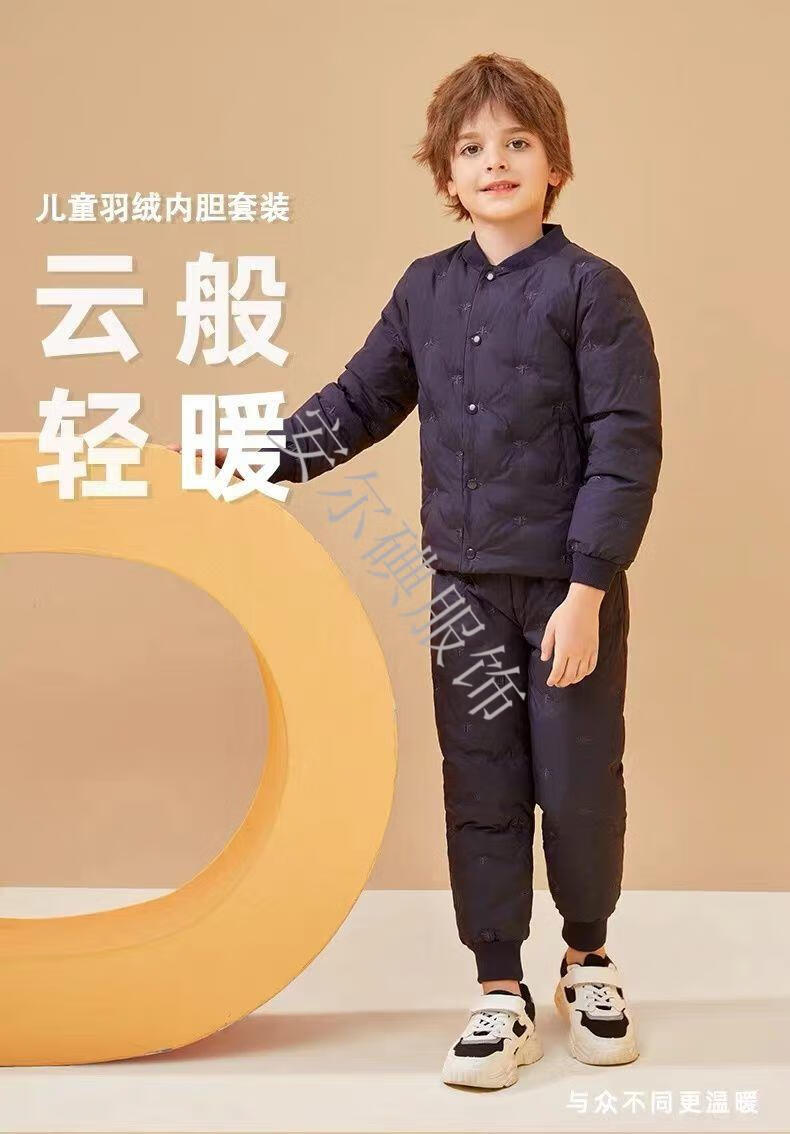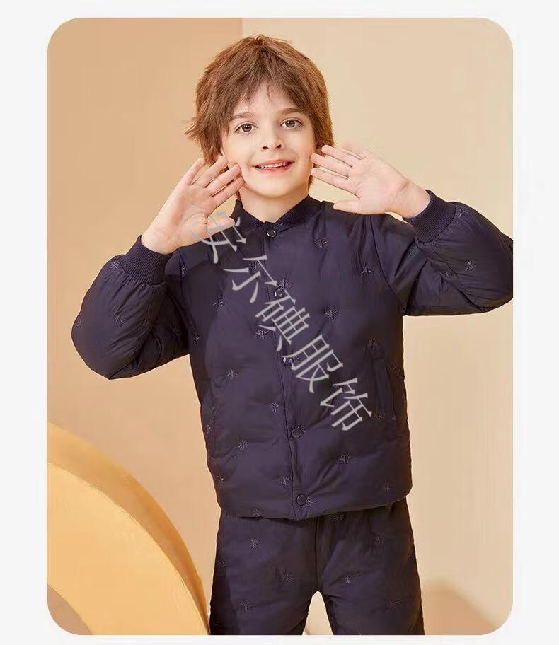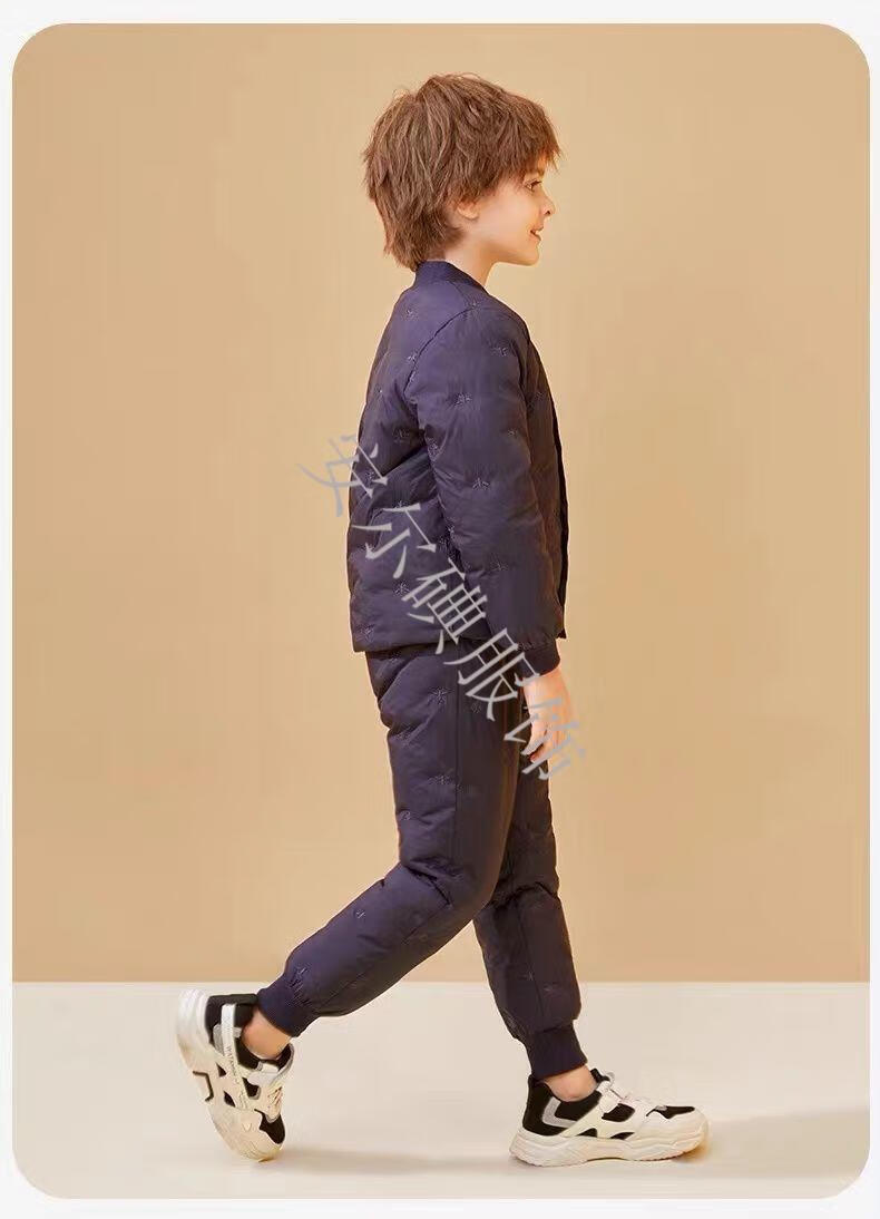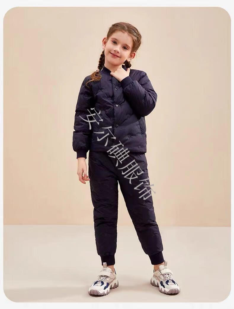 Warm winter duck duck children's down pants for boys and girls 2025 new inner wear casual down warm pants for middle and large children Pink bee belly protection high waist suit 150