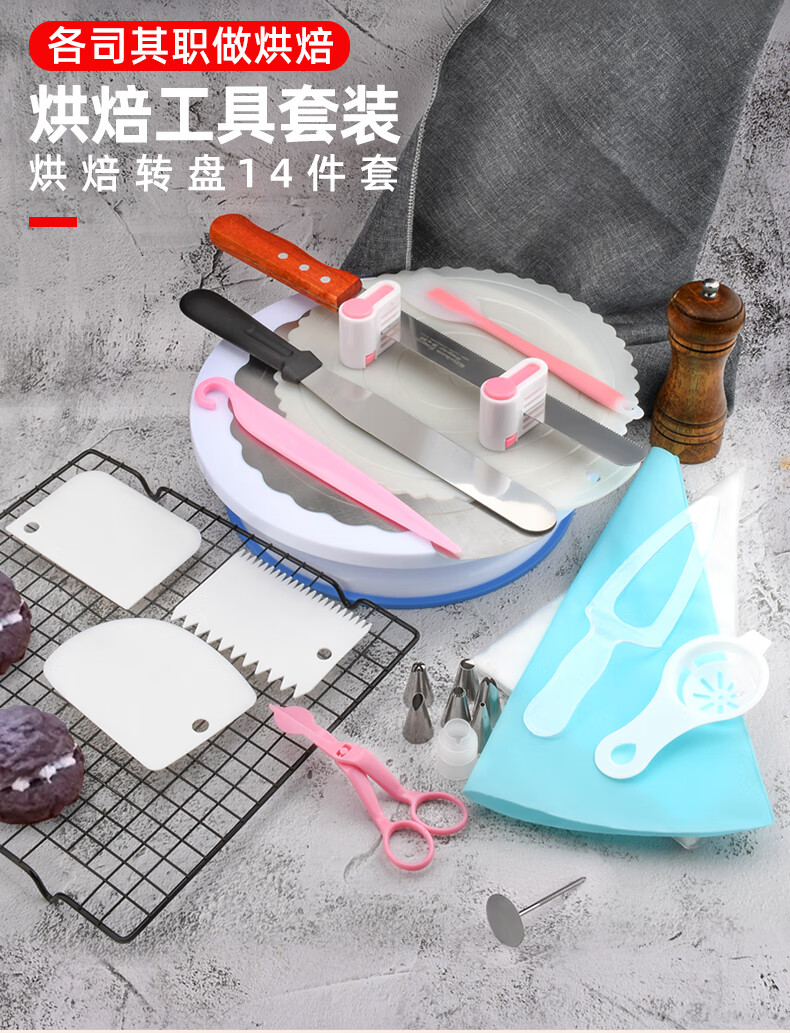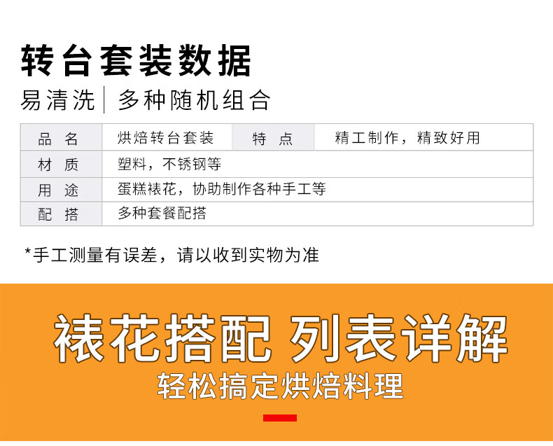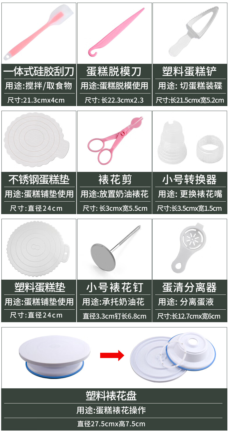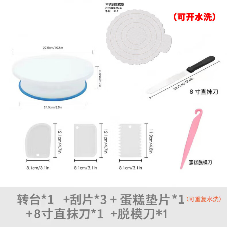 Luluo cake turntable decorating turntable decorating table household tools birthday cake making base tray rotating set baking stainless steel cake mat 7-piece set