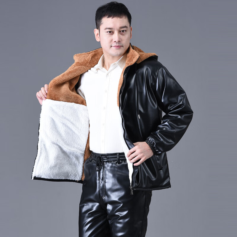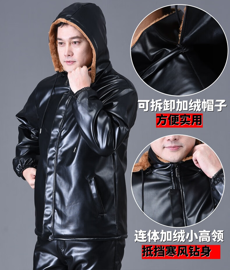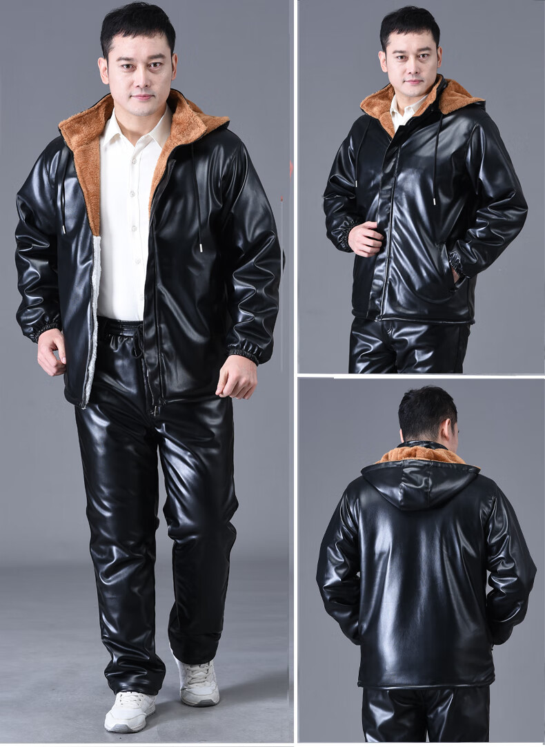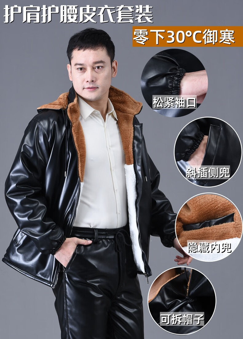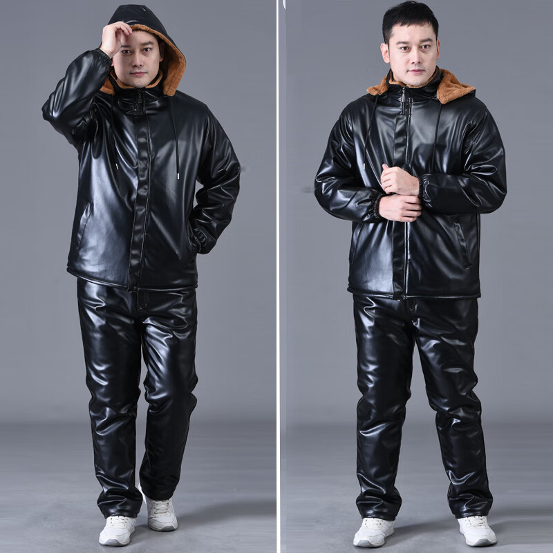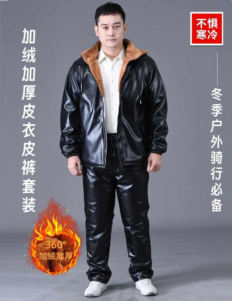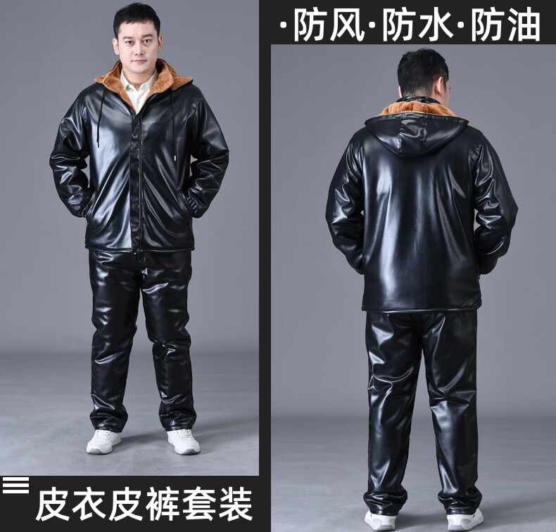 静鹤冬季皮衣皮裤套装男加绒加厚保暖防水防风骑行外卖中老年劳保工装 HY加厚款套装(皮上衣+皮裤) XL 码(适合90-110斤)