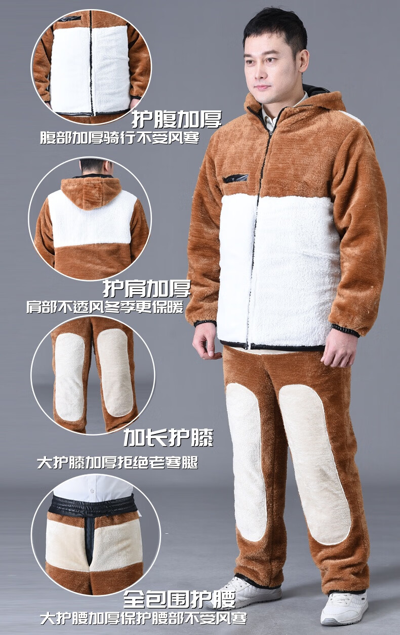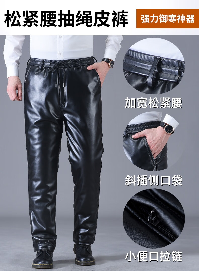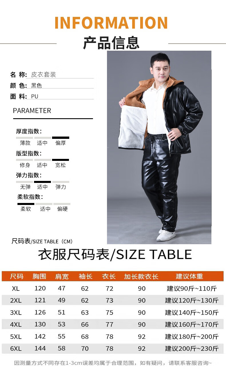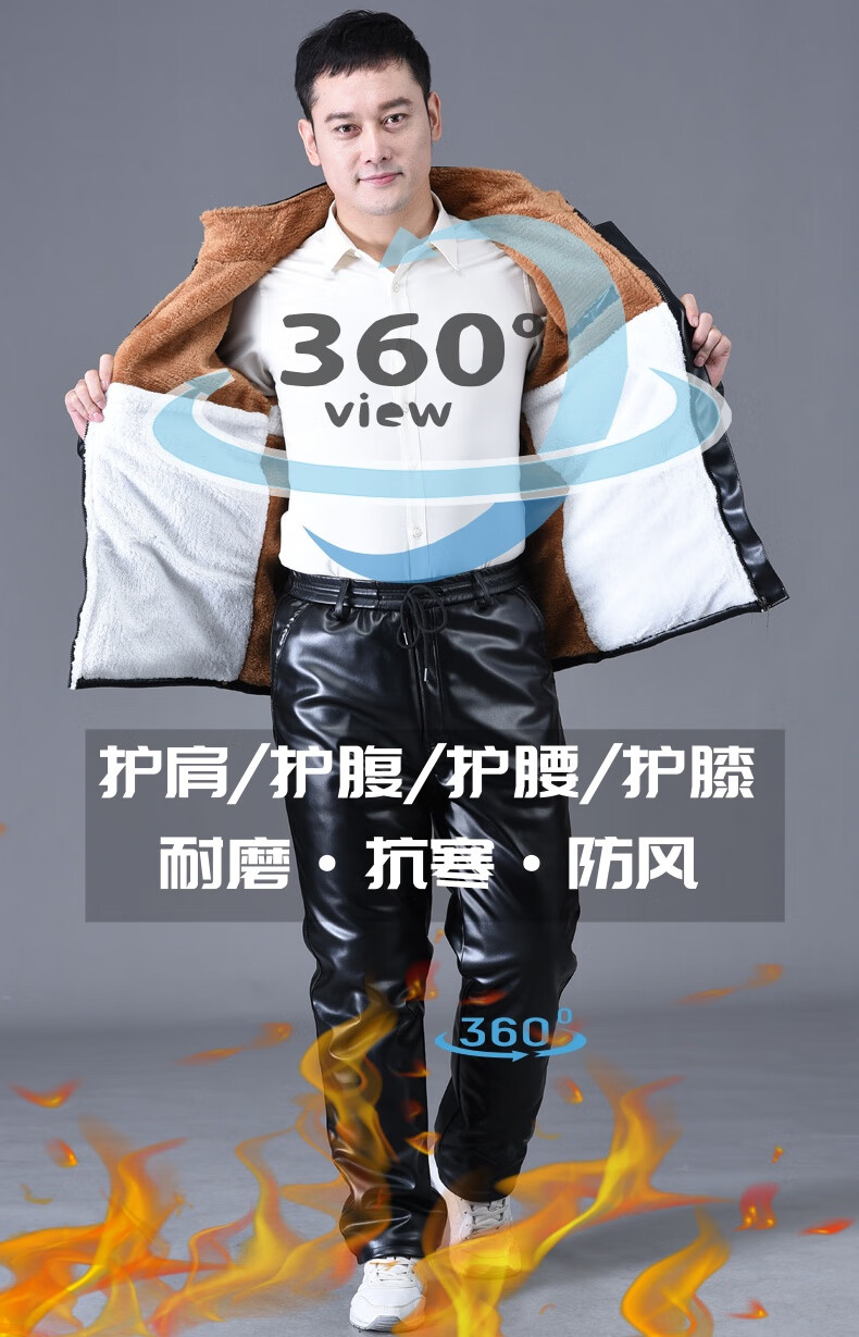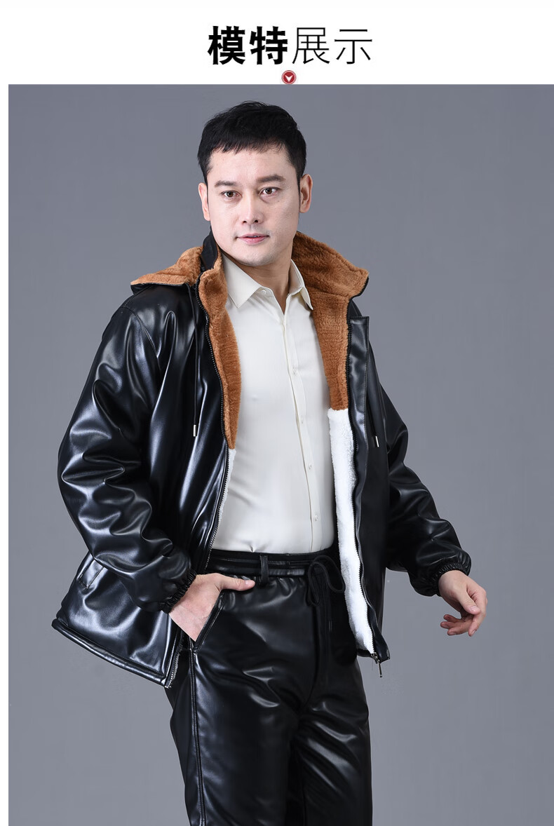 静鹤冬季皮衣皮裤套装男加绒加厚保暖防水防风骑行外卖中老年劳保工装 HY加厚款套装(皮上衣+皮裤) XL 码(适合90-110斤)