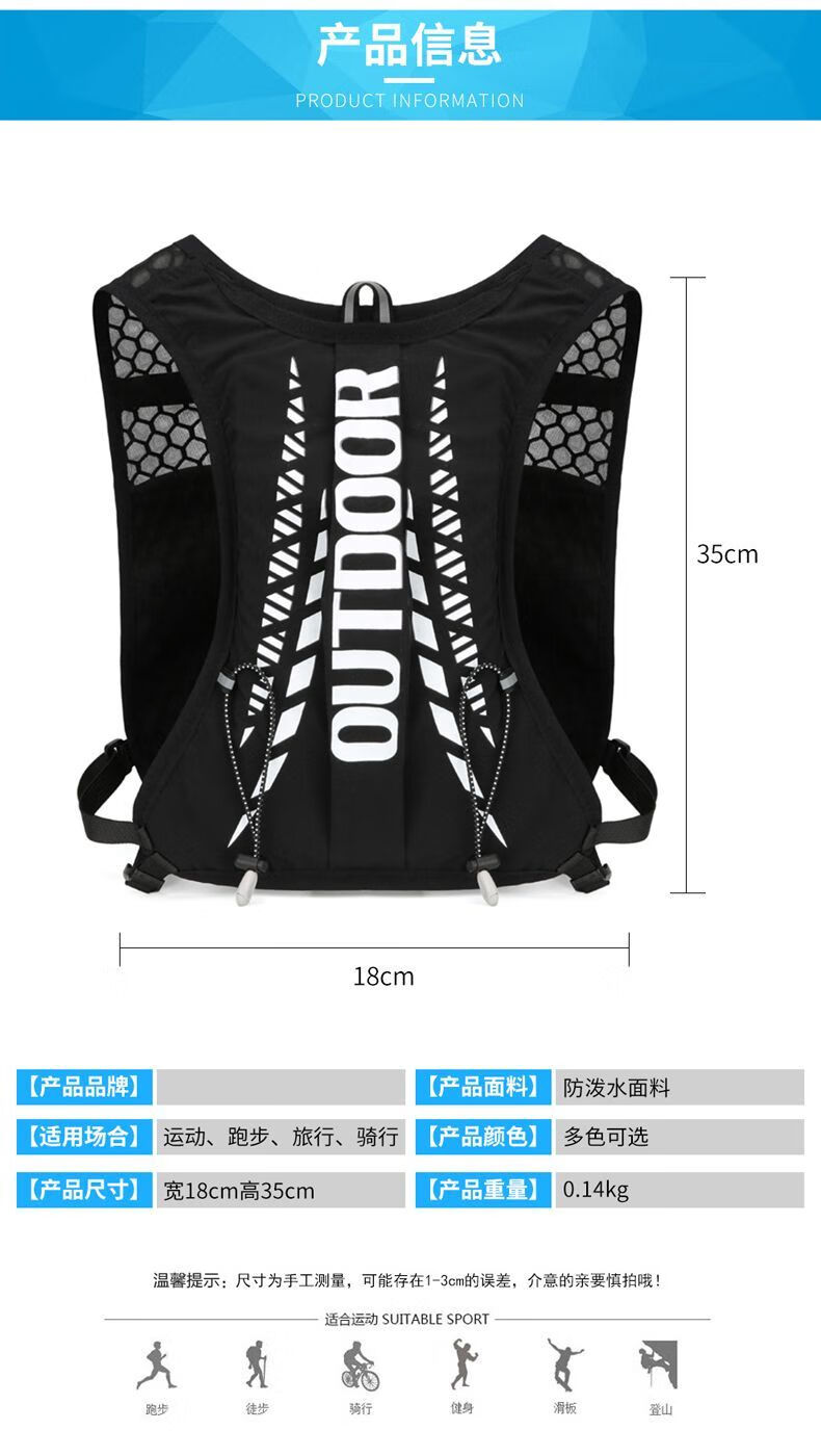 Marathon supply bag, outdoor mountaineering vest bag, hiking and cycling vest bag, cross-country running water bag, vest bag, black and white upgraded model with many pockets