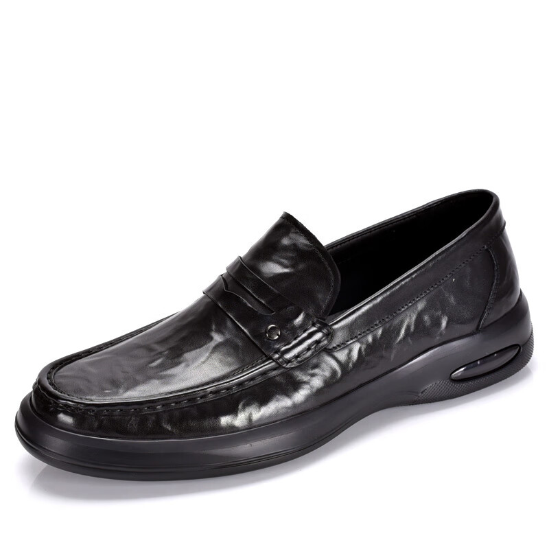 Goldlion Men's Shoes 2025 New Genuine Leather Business Casual Men's Leather Shoes Slip-On Cowhide Simple Comfortable Cushioning Loafers Black 40