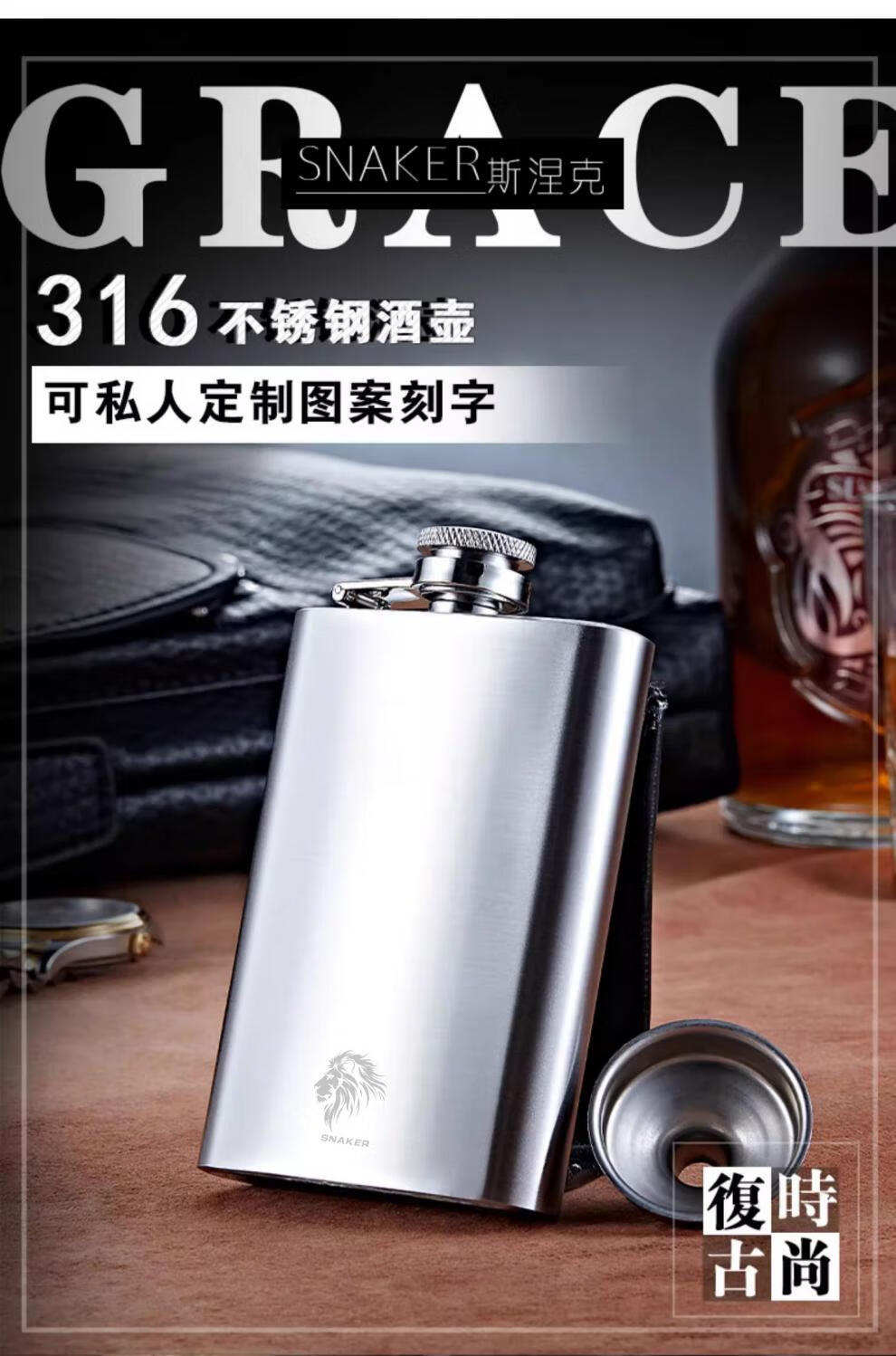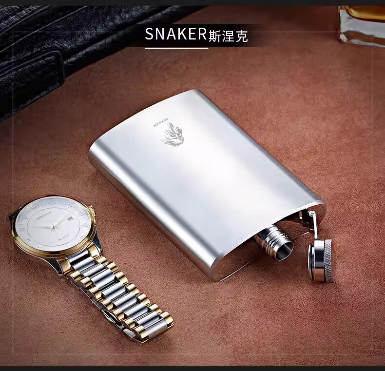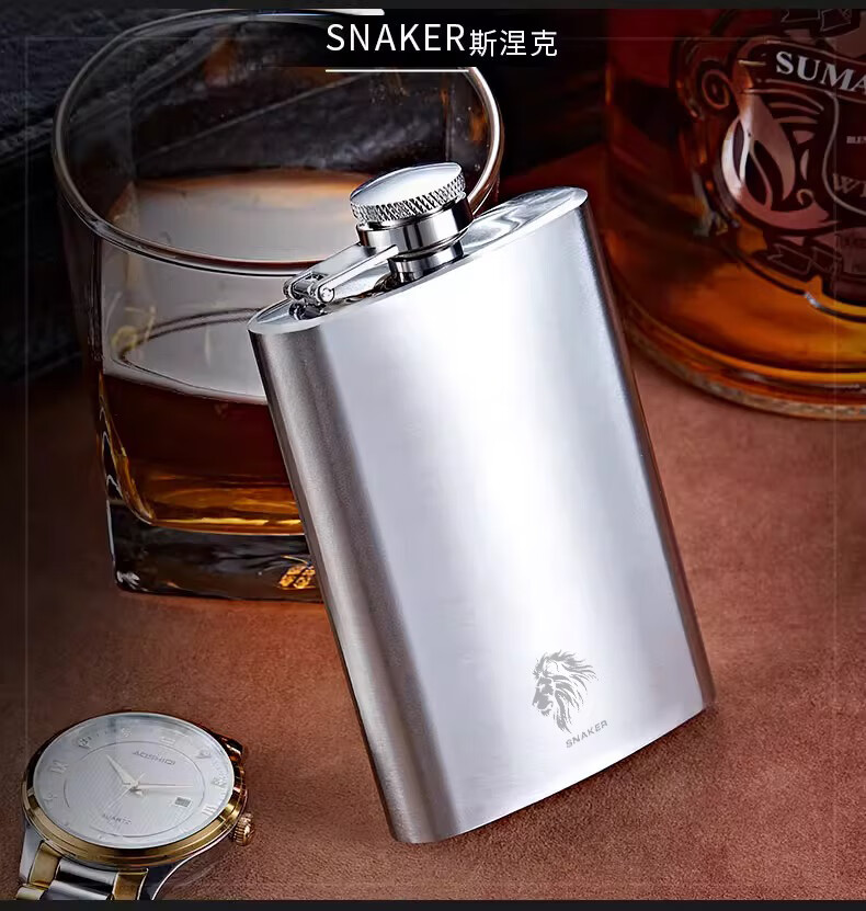 SNAKER privately customized wine bottle 316 stainless steel portable 2 liang white wine small bottle mini car portable (2 liang) 316 steel classic free 1 cup 1 drain_thickened