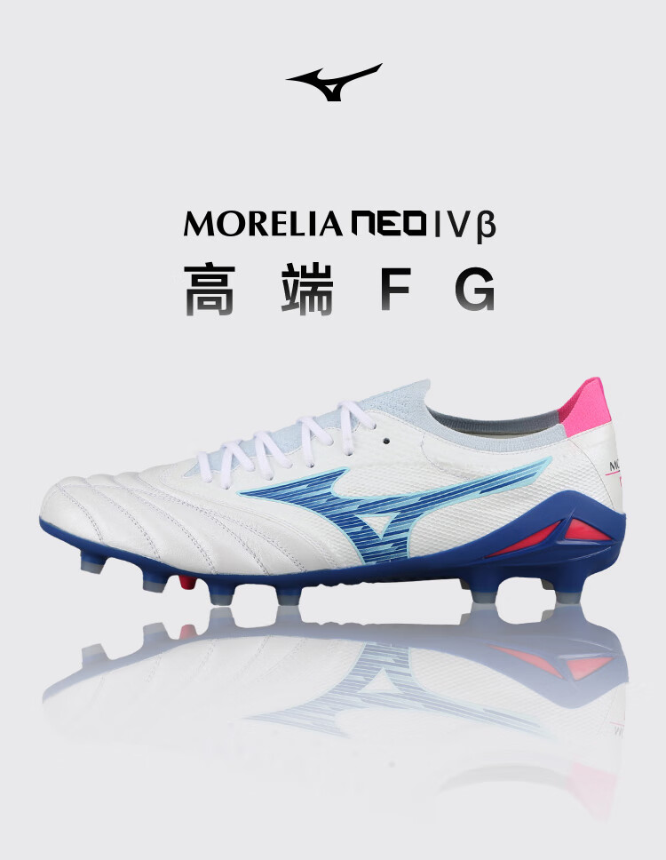 Mizuno Mizuno Morelia NEO 4 высококачественные футбольные бутсы FG из кожи кенгуру с шипами для взрослых, белые, синие и розовые P1GA254225 42 (270JP)